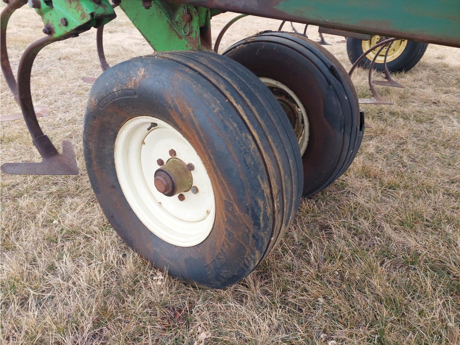 8 inch spacing, 10 inch sweeps, 11L-15 tires
