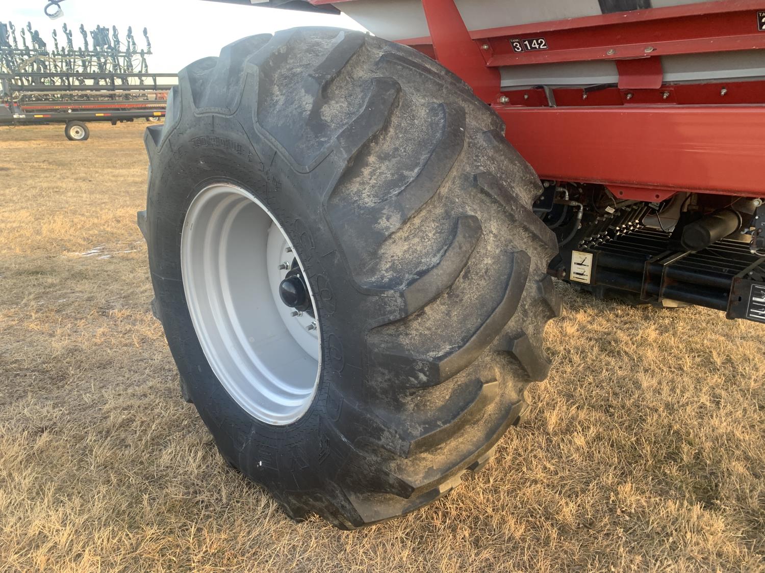 dual fan, variable rate, 9 inch loading auger, 3 compartment, compartment 1 186 bushel, compartment 2 102 bushel, compartment 3 142 bushel, 30.5L-32 tires