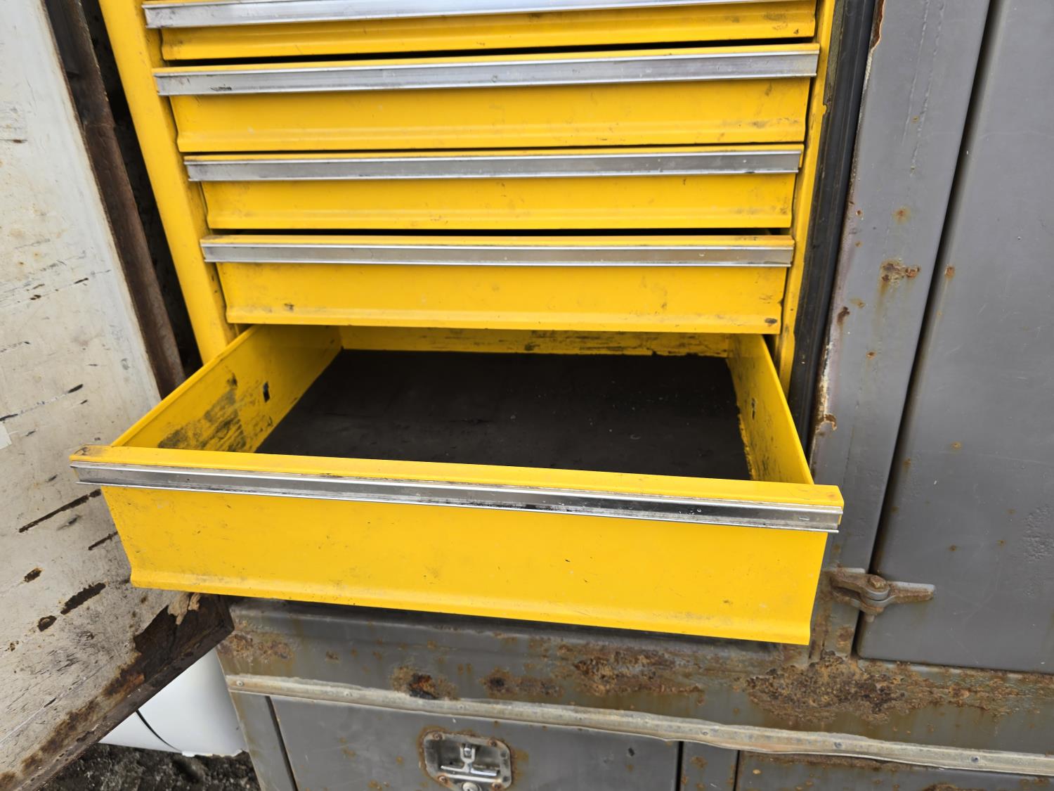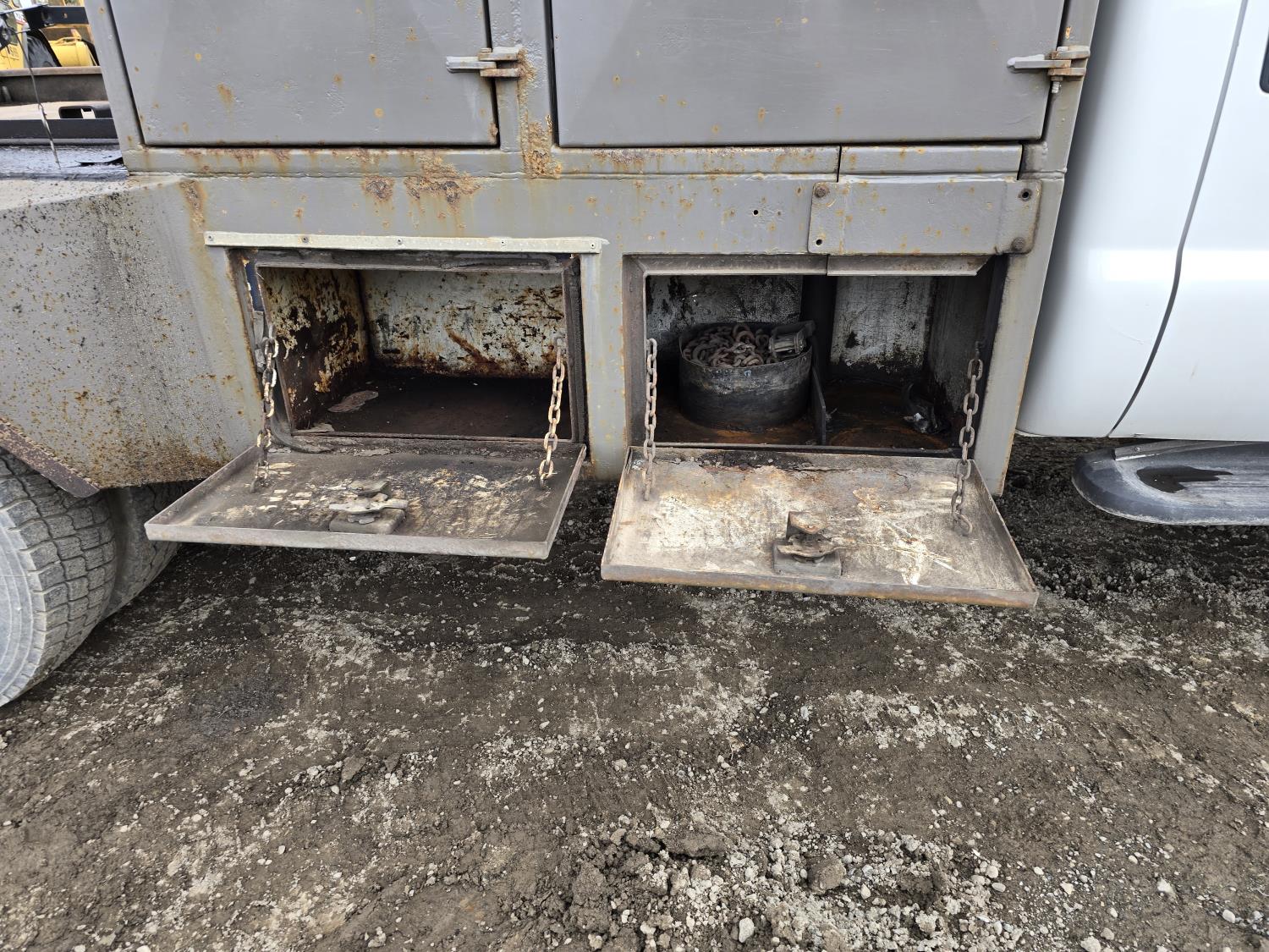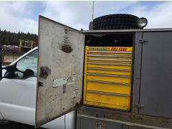 7.3L V8 diesel, 5 speed manual transmission, A/C, stereo, 8 ft long X 80 inch wide deck, 6 tool boxes, 245/70R19.5 Tires