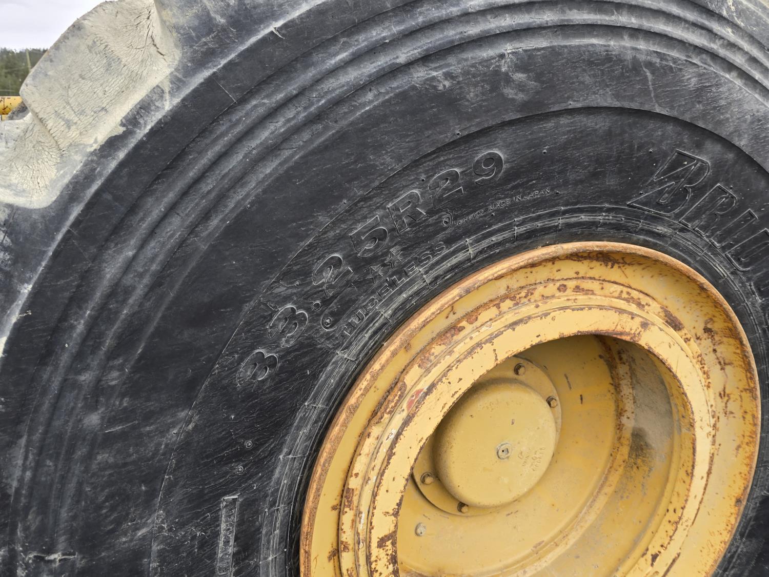 3406 330 HP 14.6 liter diesel engine, 8 speed power shift transmission, enclosed cab, A/C, air ride seat, 33.25R29 tires