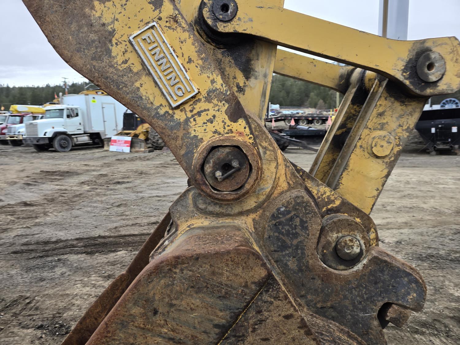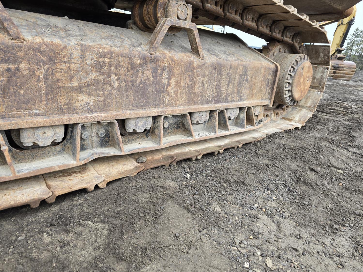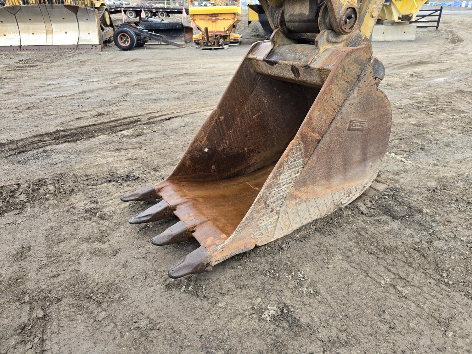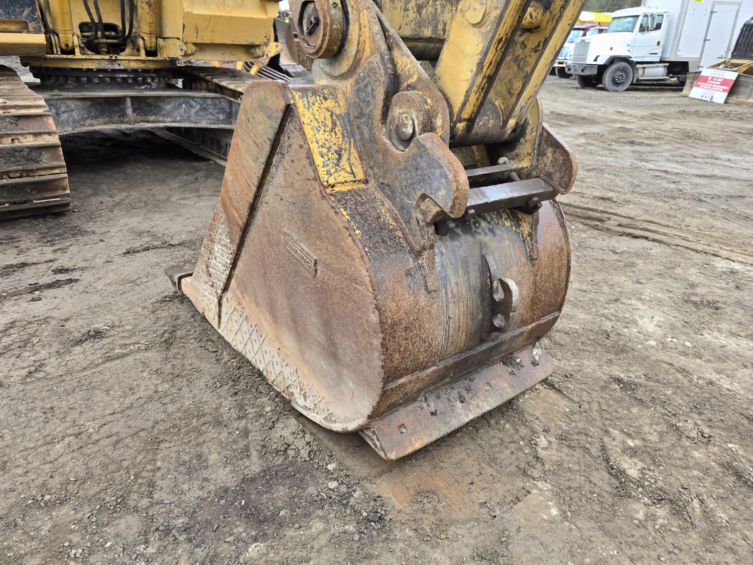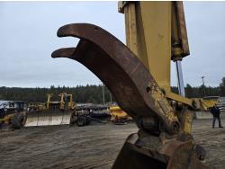 3306TA 10.5 liter 6 cylinder diesel engine, PROHEAT diesel engine heater, enclosed cab, A/C, air ride seat, pilot controls, cab screens, ROPS, forestry guarding, 48 inch dig bucket, manual coupler, hydraulic thumb, 14 Ft stick, catwalks, 27-1/2 inch track pads, double grousers