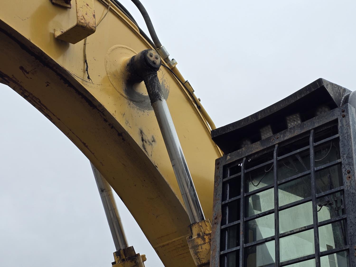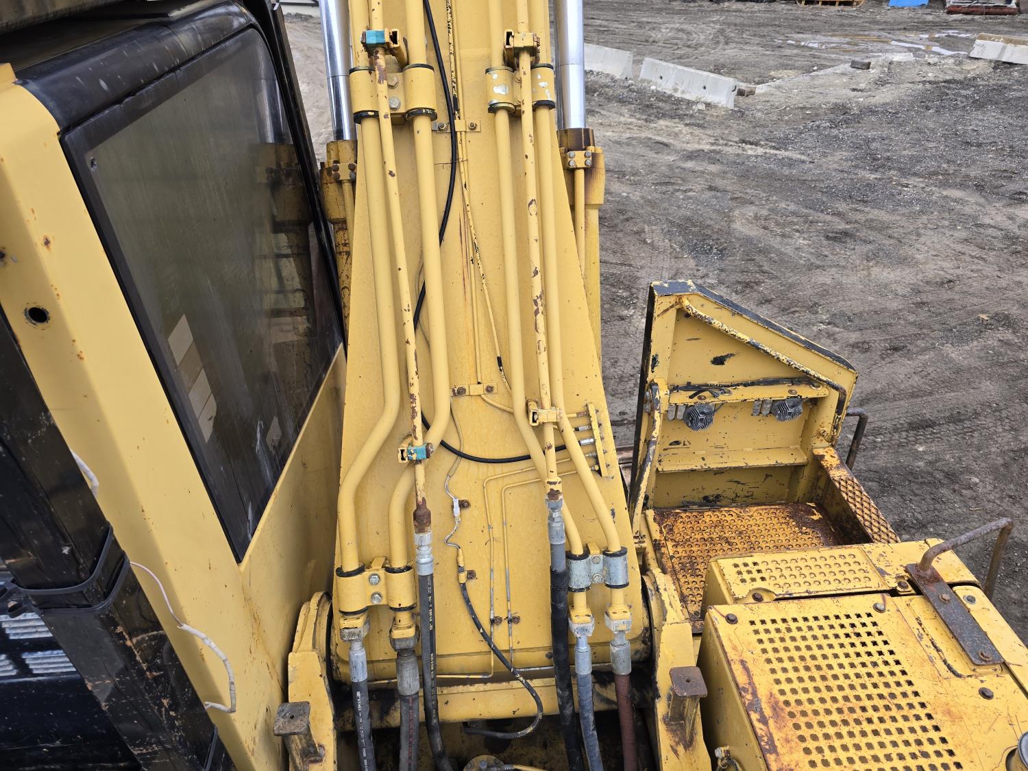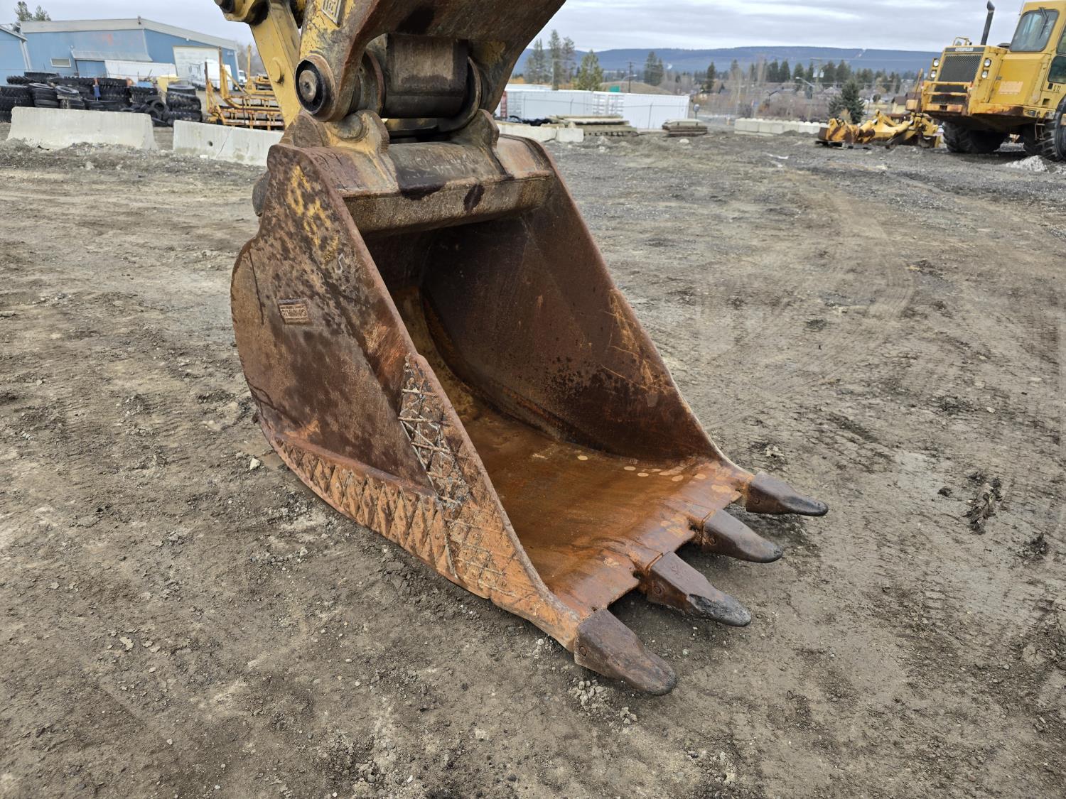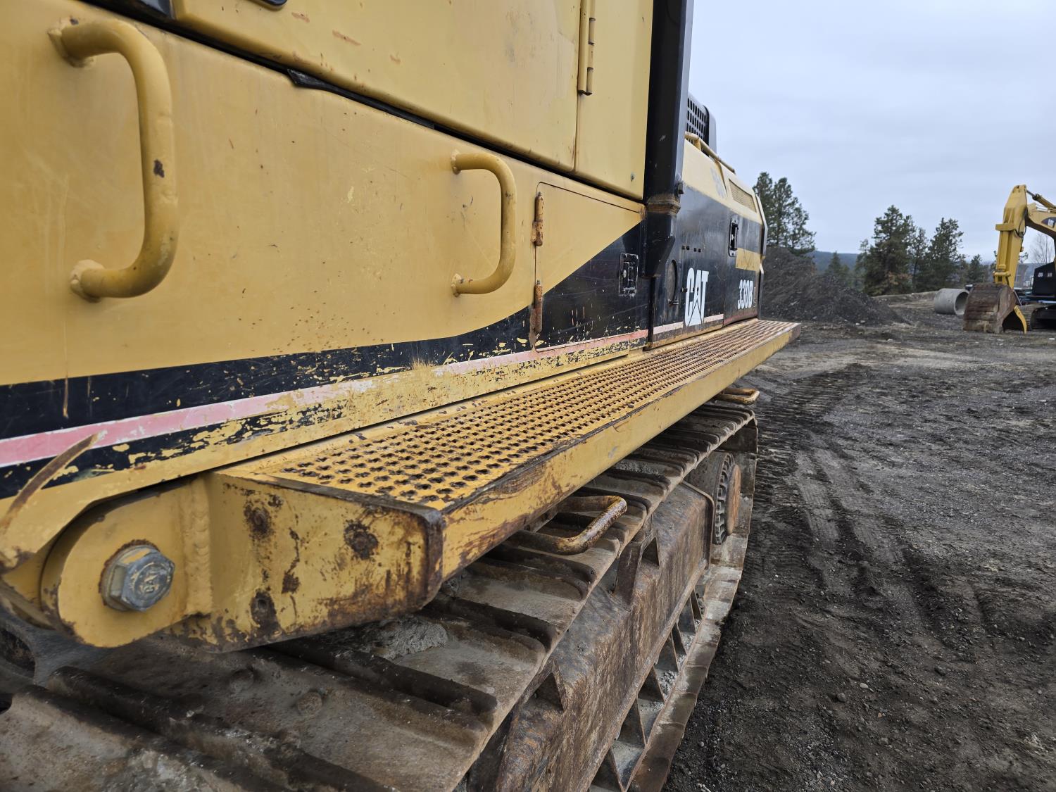 3306TA 10.5 liter 6 cylinder diesel engine, PROHEAT diesel engine heater, enclosed cab, A/C, air ride seat, pilot controls, cab screens, ROPS, forestry guarding, 48 inch dig bucket, manual coupler, hydraulic thumb, 14 Ft stick, catwalks, 27-1/2 inch track pads, double grousers