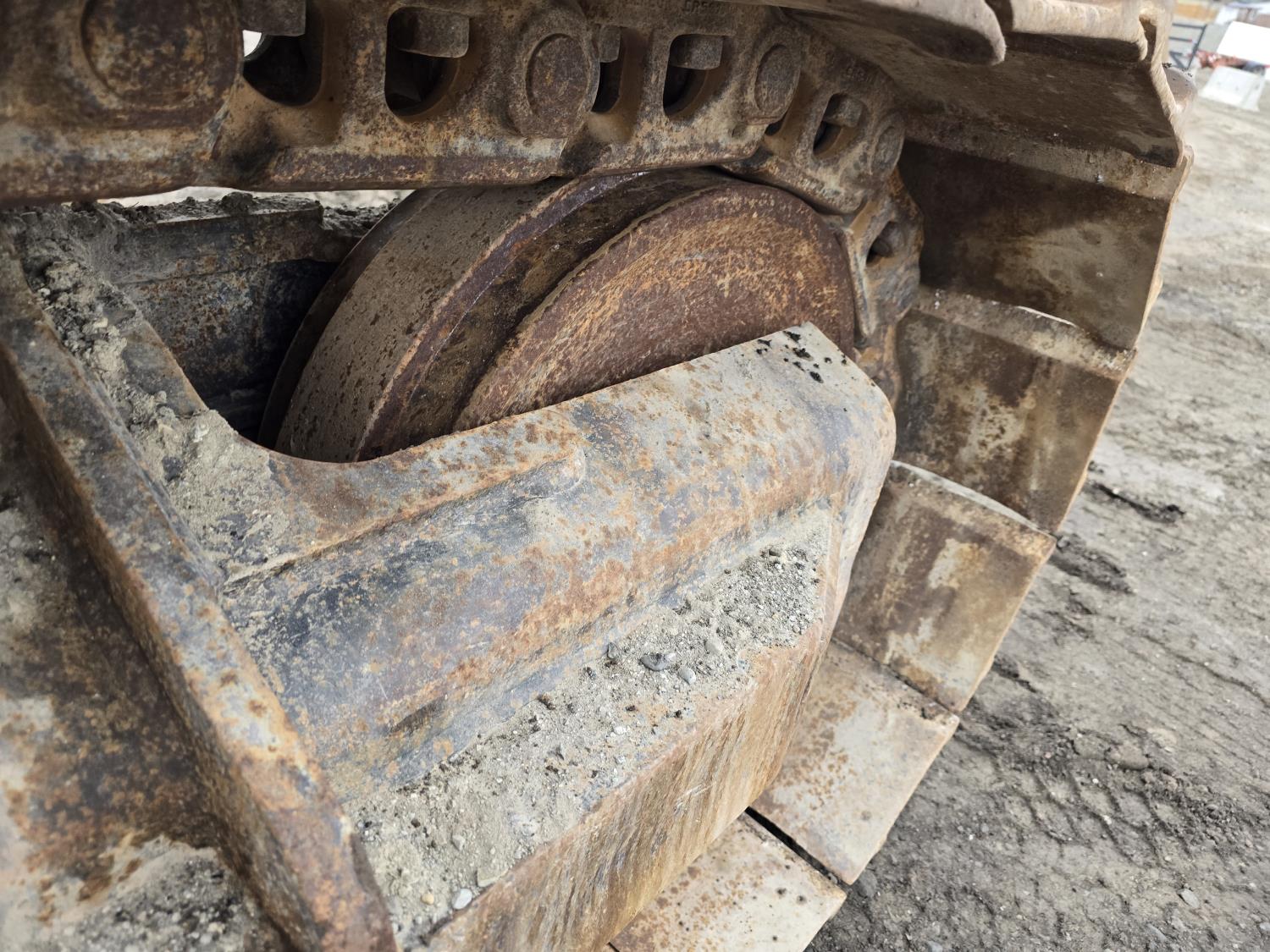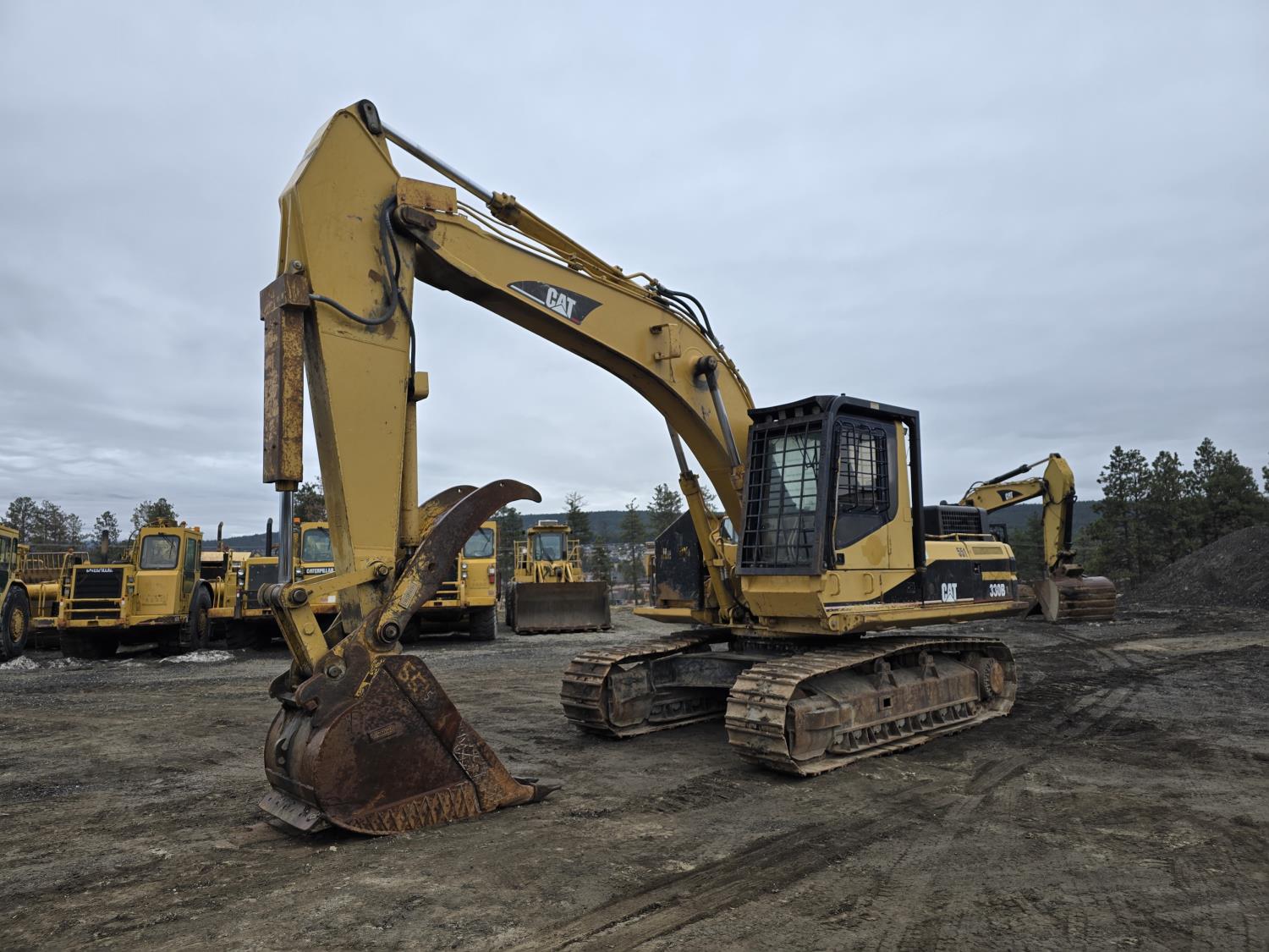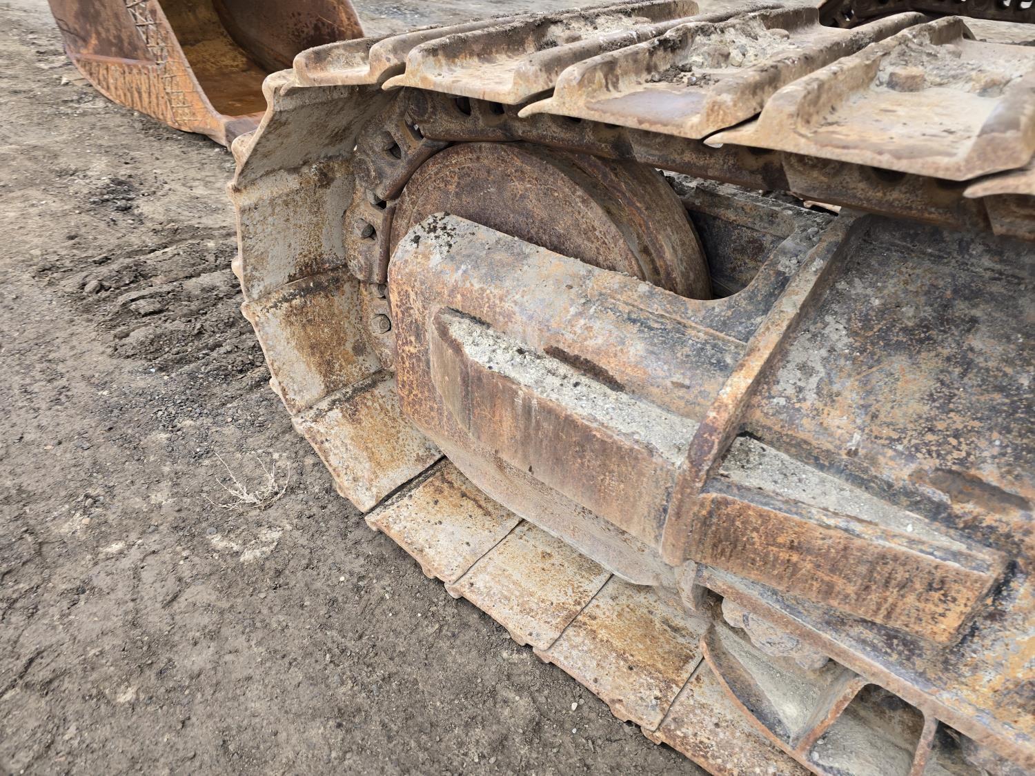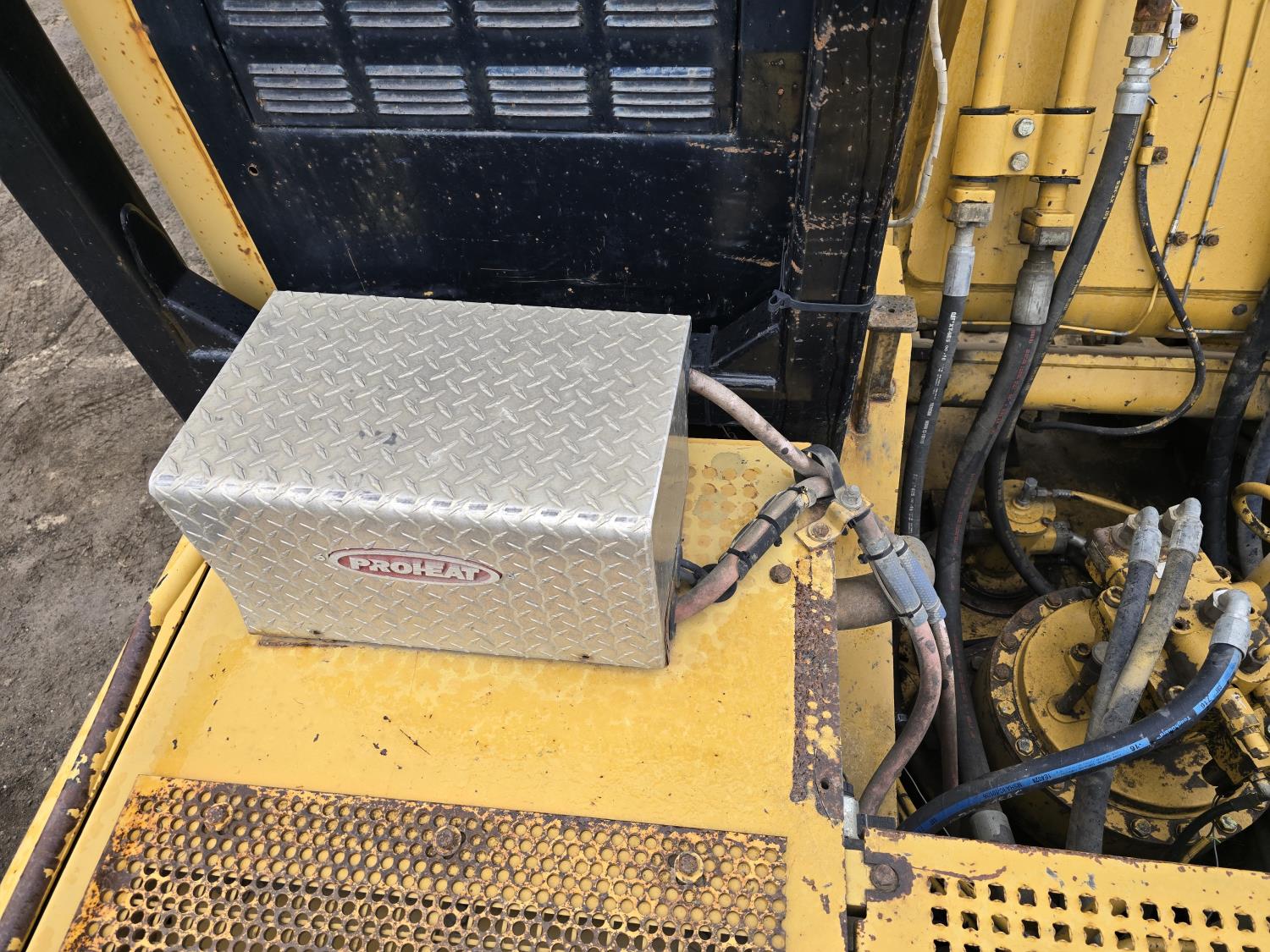 3306TA 10.5 liter 6 cylinder diesel engine, PROHEAT diesel engine heater, enclosed cab, A/C, air ride seat, pilot controls, cab screens, ROPS, forestry guarding, 48 inch dig bucket, manual coupler, hydraulic thumb, 14 Ft stick, catwalks, 27-1/2 inch track pads, double grousers