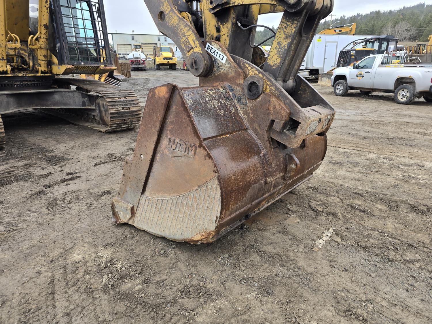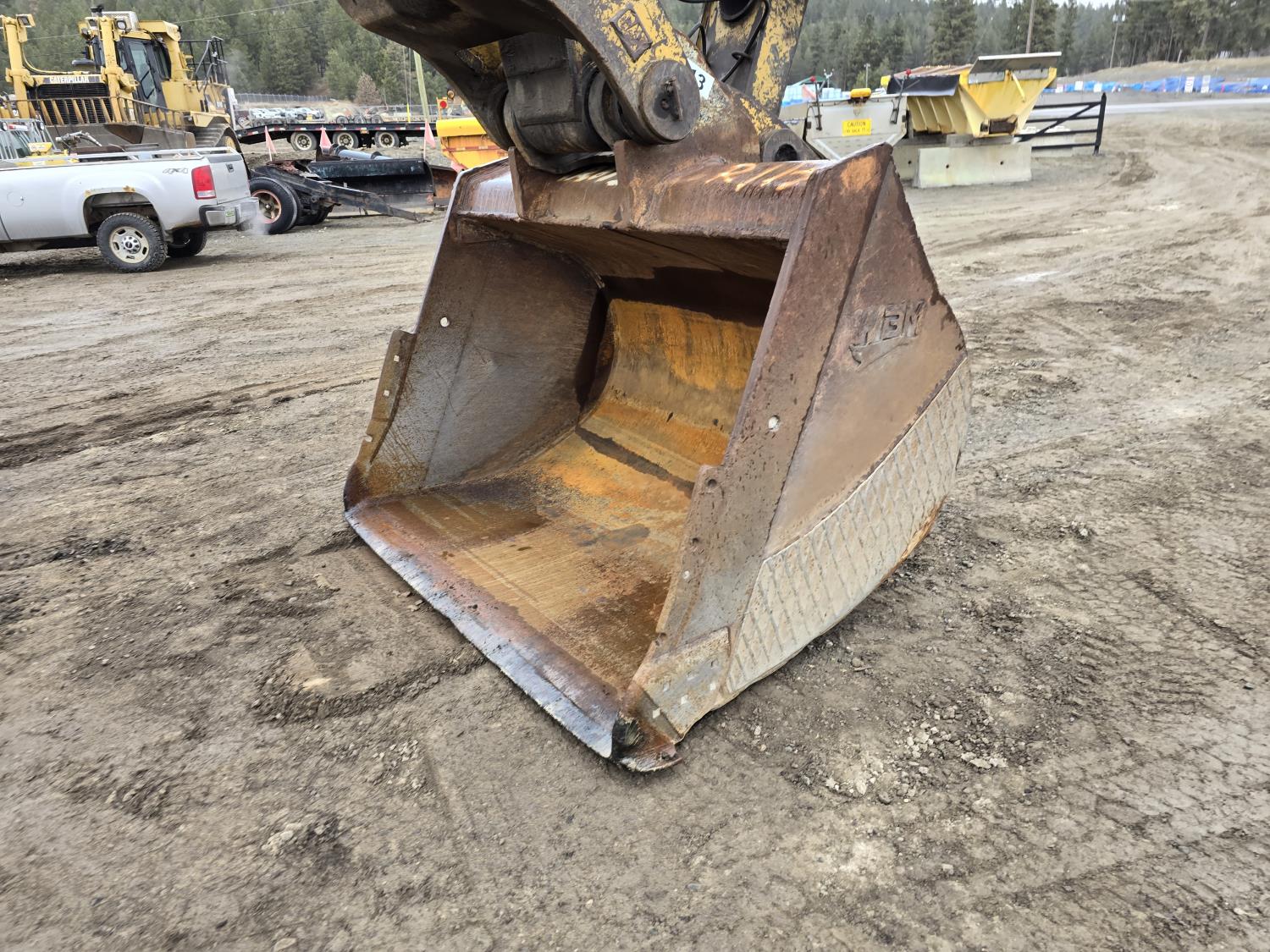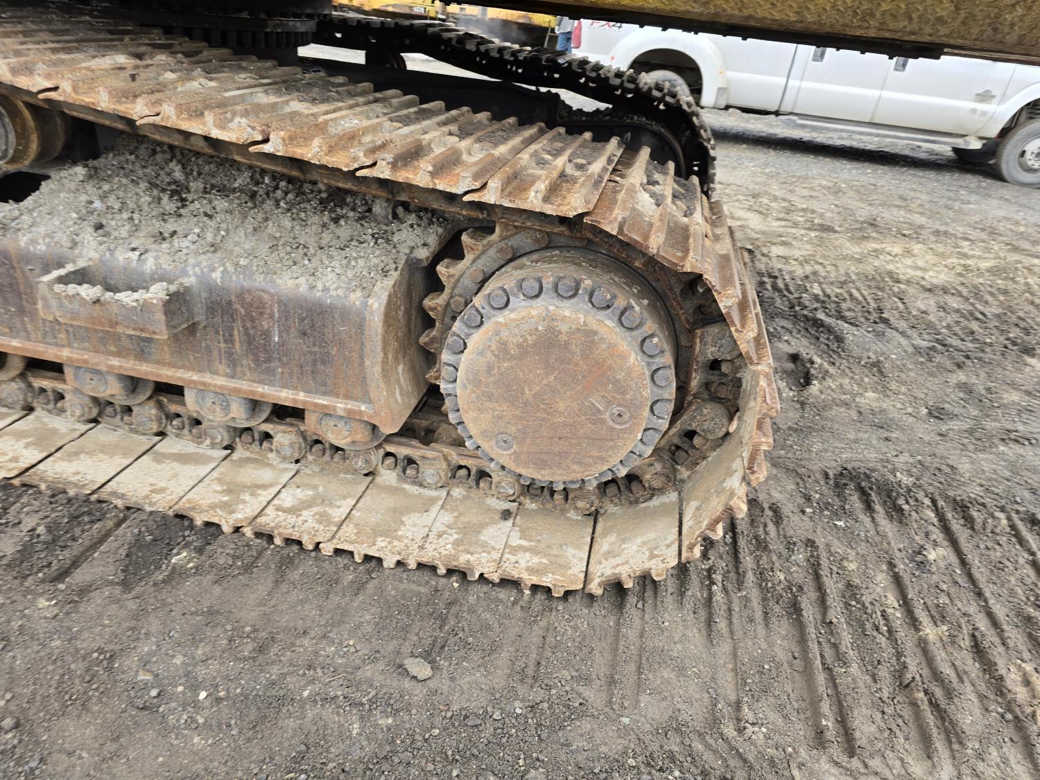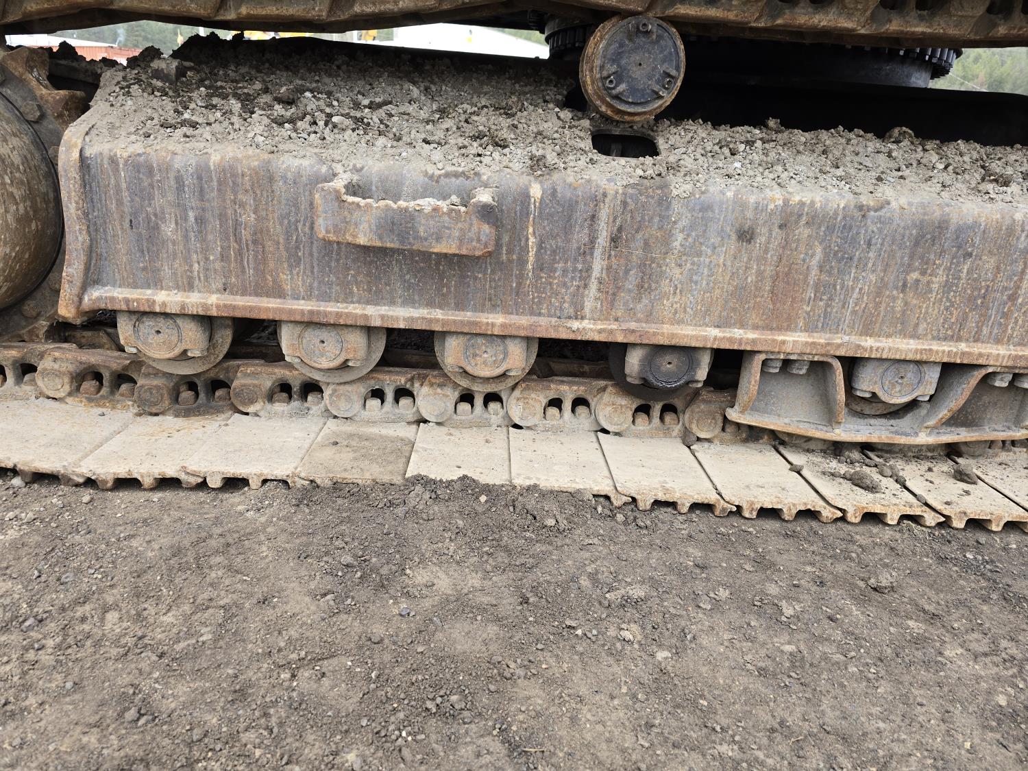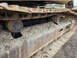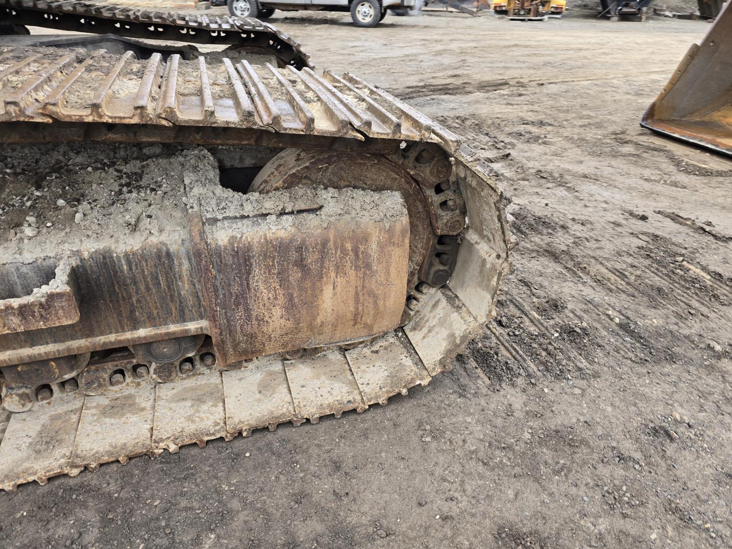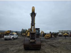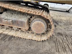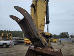 C13 12.6 liter 6 cylinder diesel engine, enclosed cab, A/C, pilot controls, cab screens, 82 inch cleanup bucket, hydraulic Q/C coupler, hydraulic thumb, 14 Ft stick, catwalks, ROPS, 31-1/2 inch track pads, triple grousers