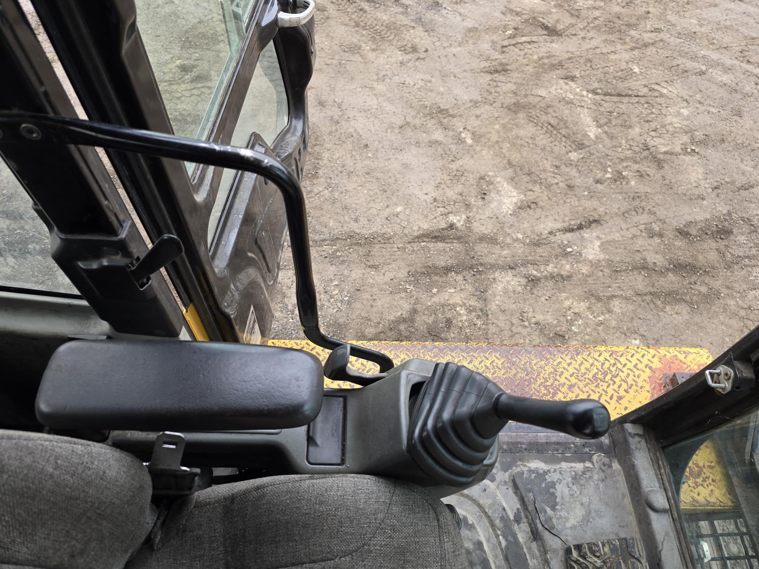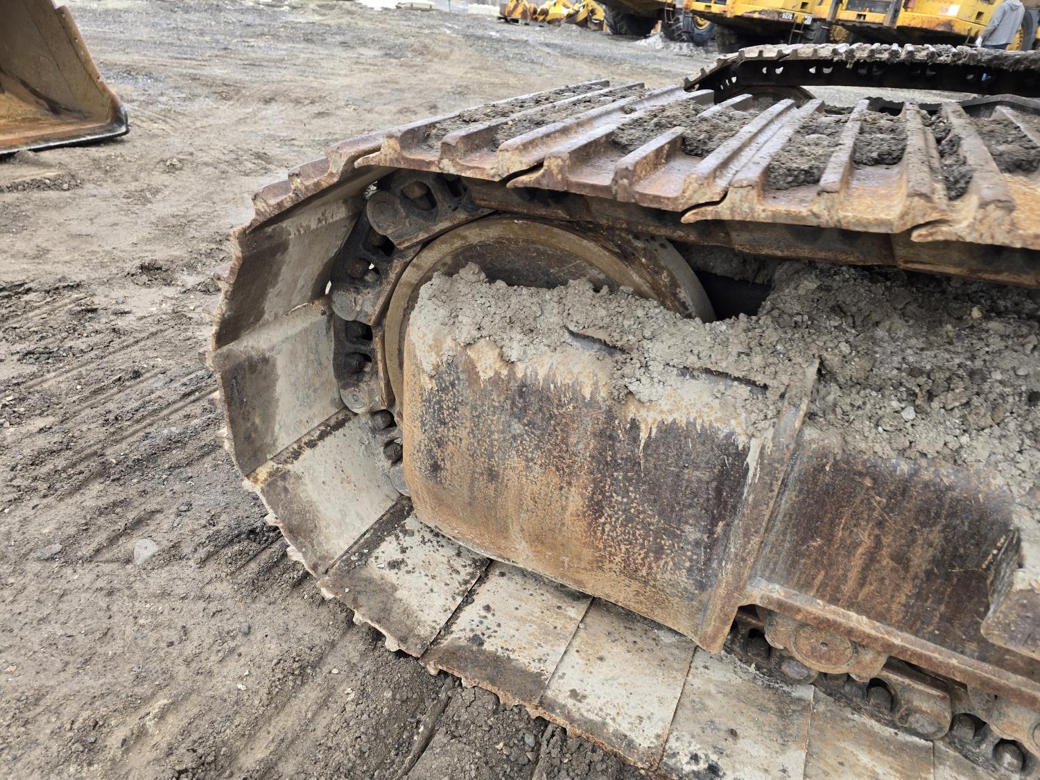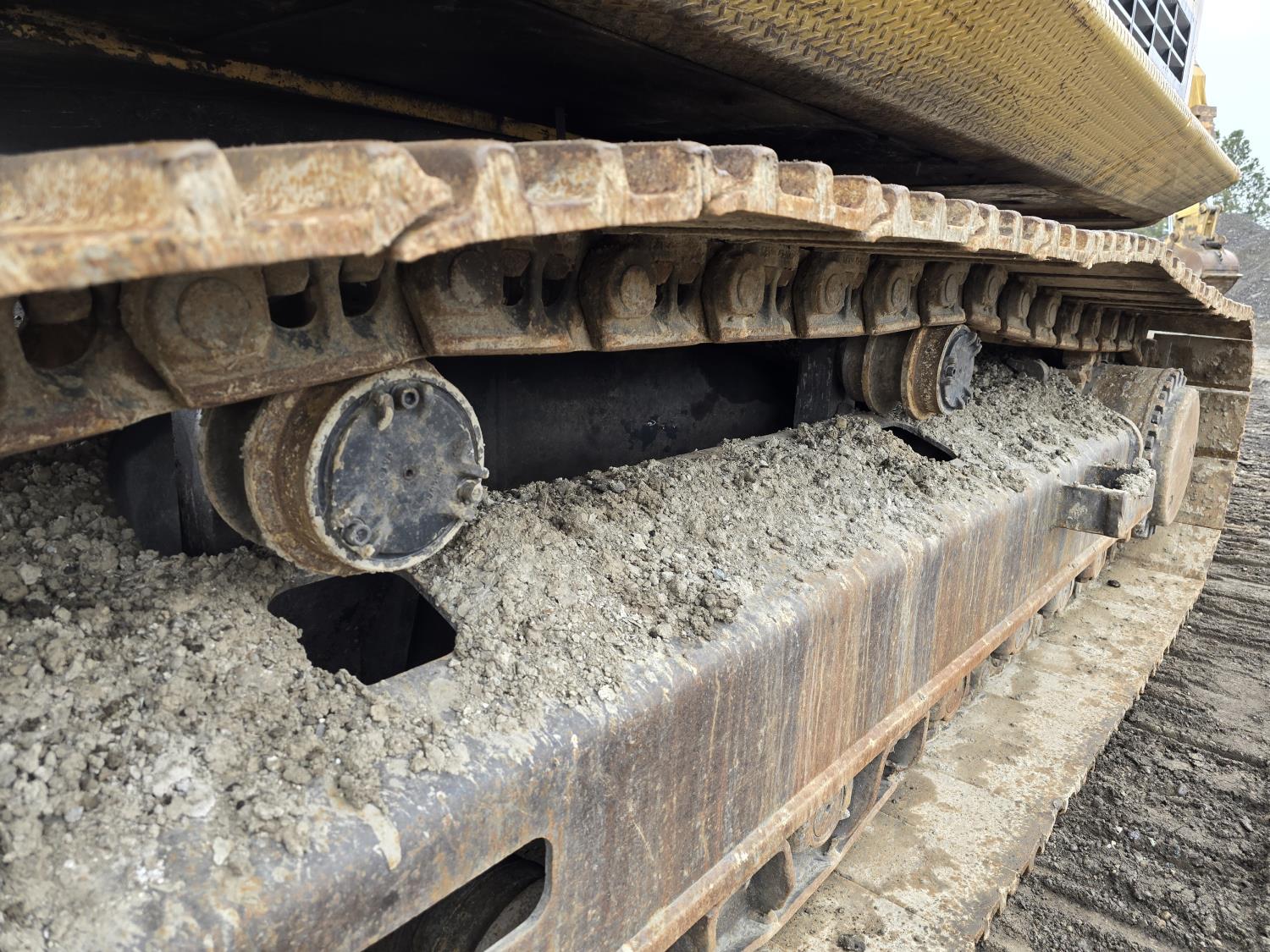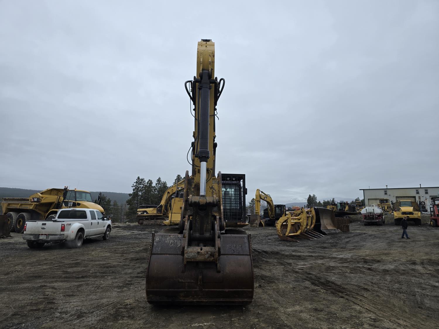 C13 12.6 liter 6 cylinder diesel engine, enclosed cab, A/C, pilot controls, cab screens, 82 inch cleanup bucket, hydraulic Q/C coupler, hydraulic thumb, 14 Ft stick, catwalks, ROPS, 31-1/2 inch track pads, triple grousers