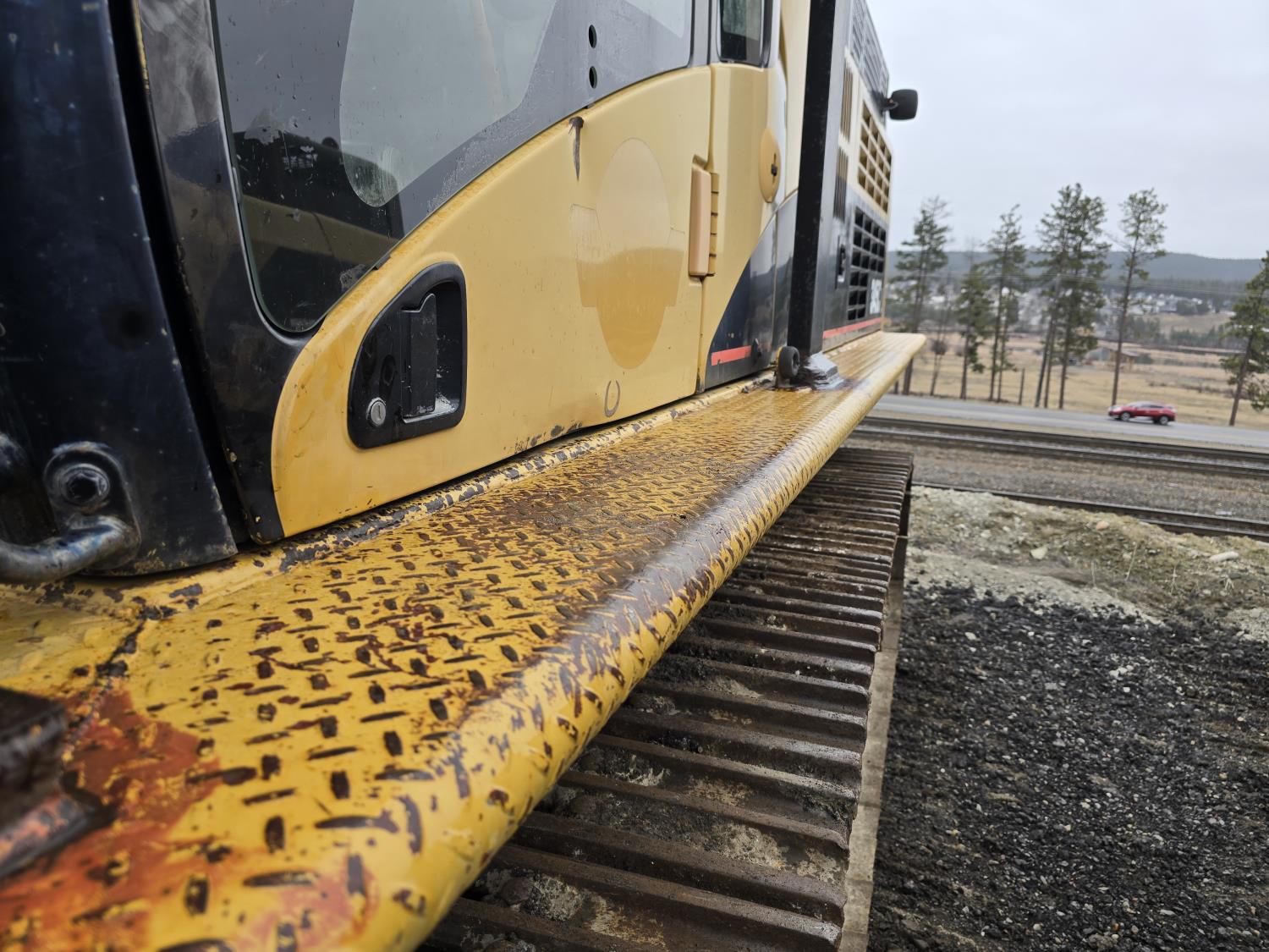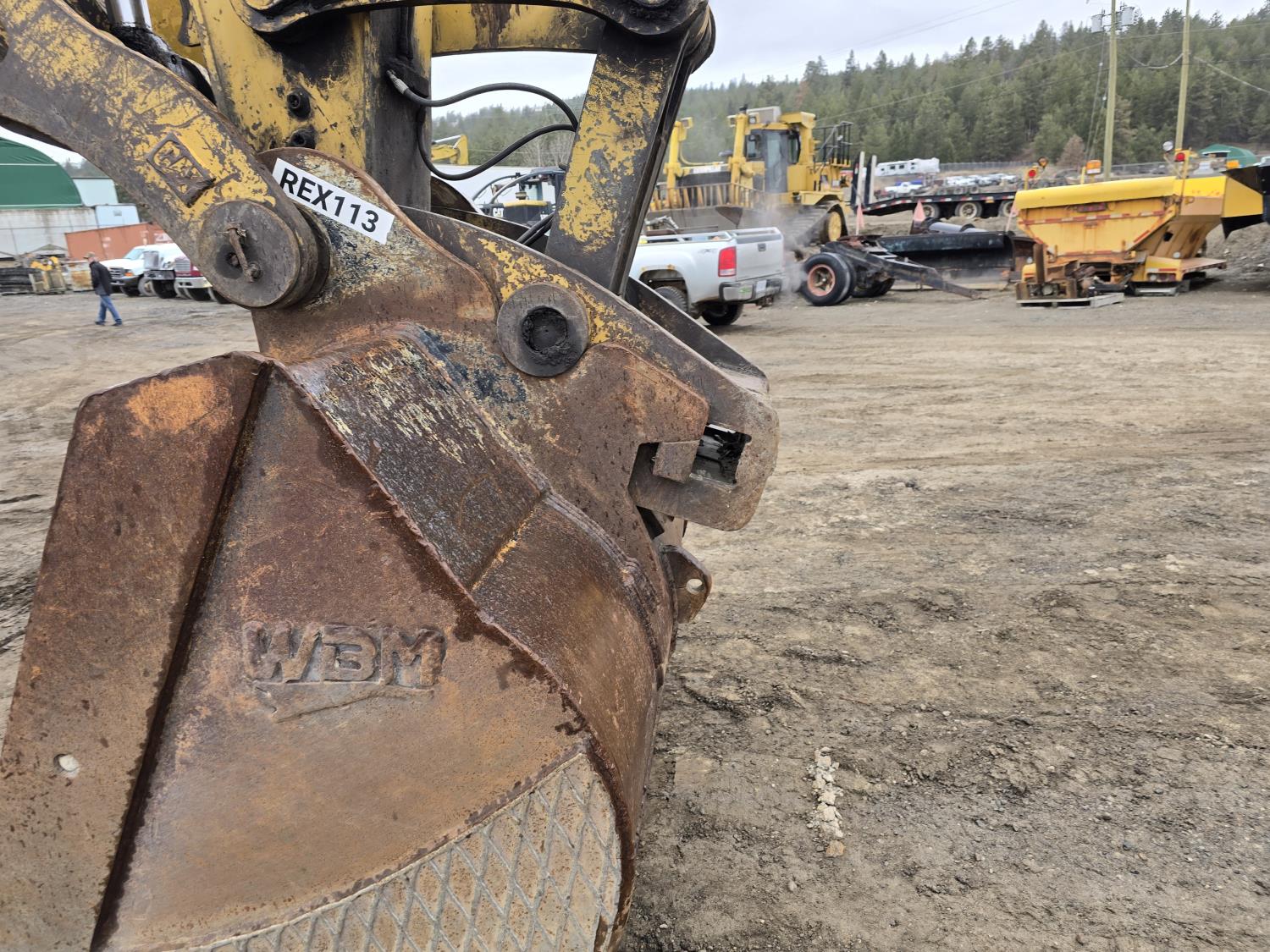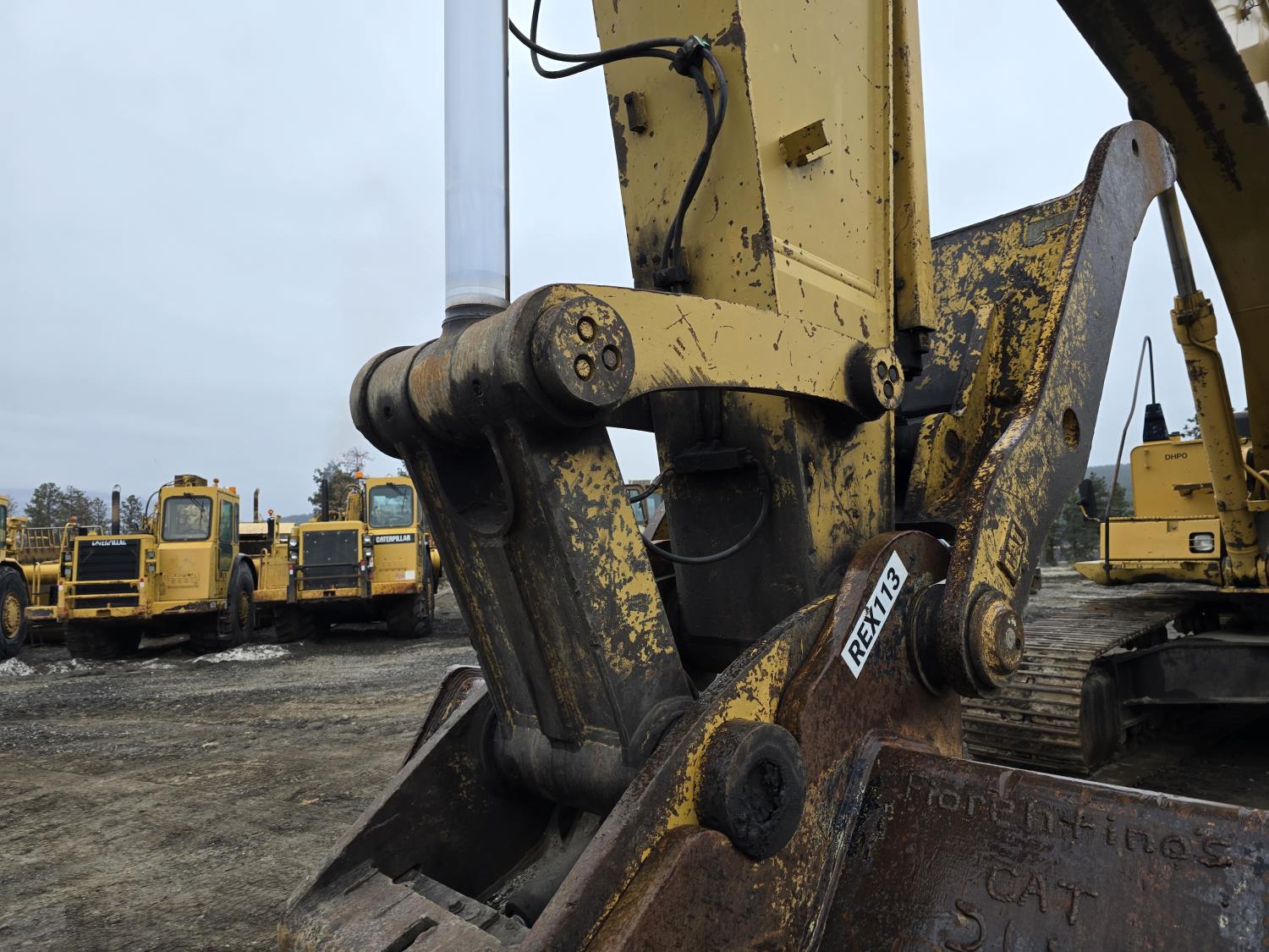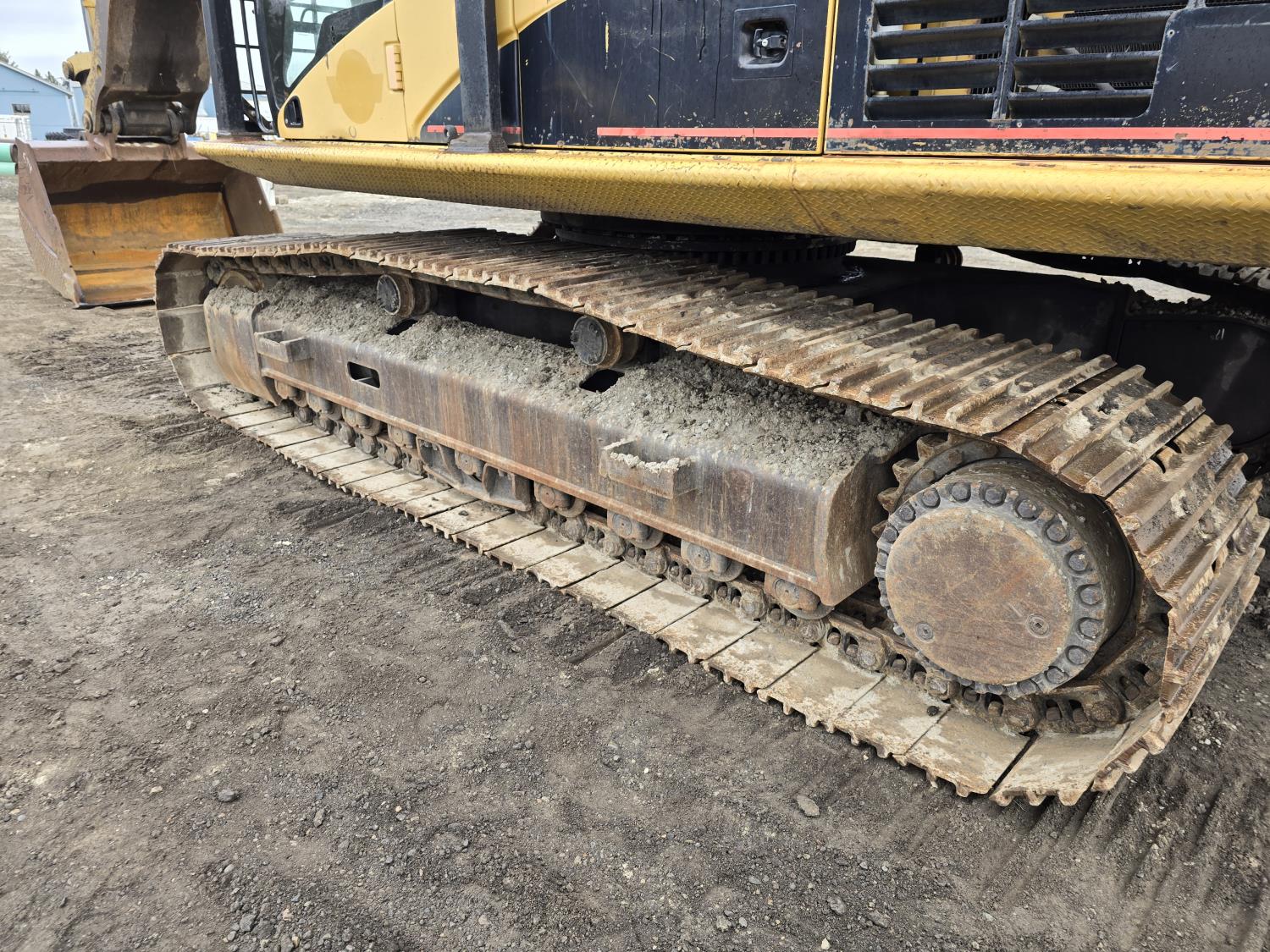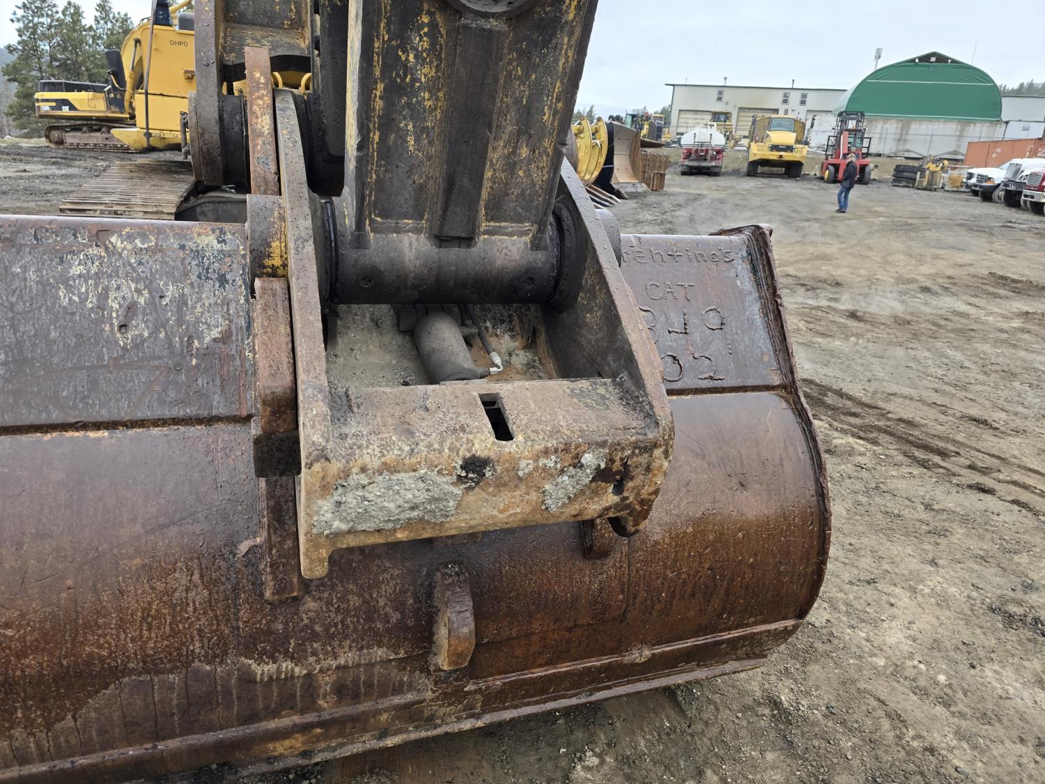 C13 12.6 liter 6 cylinder diesel engine, enclosed cab, A/C, pilot controls, cab screens, 82 inch cleanup bucket, hydraulic Q/C coupler, hydraulic thumb, 14 Ft stick, catwalks, ROPS, 31-1/2 inch track pads, triple grousers