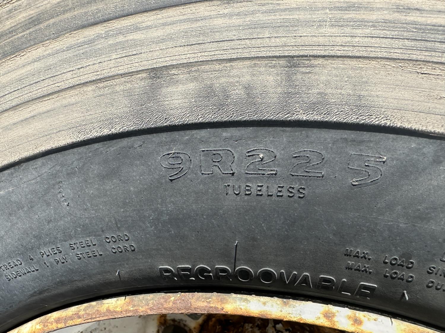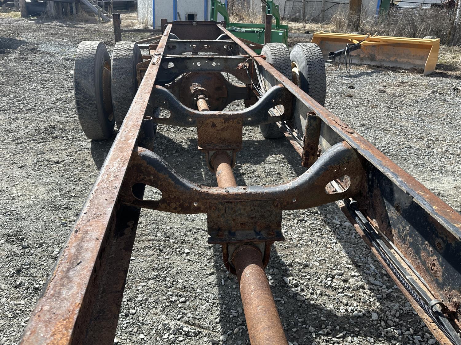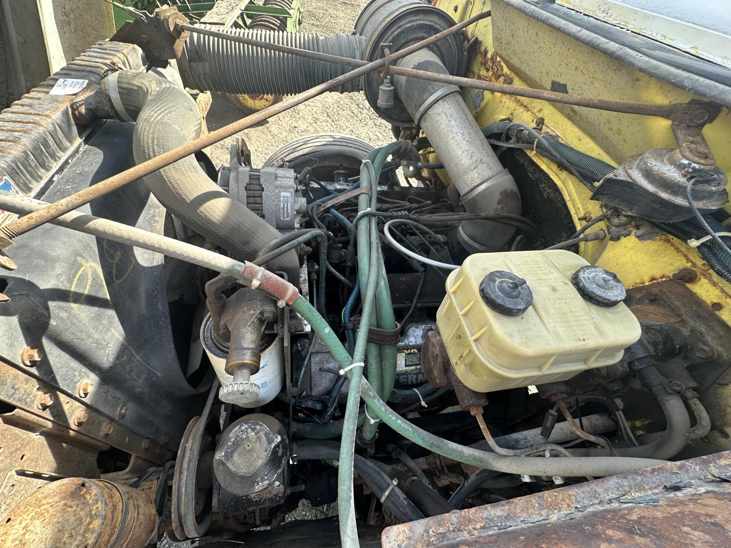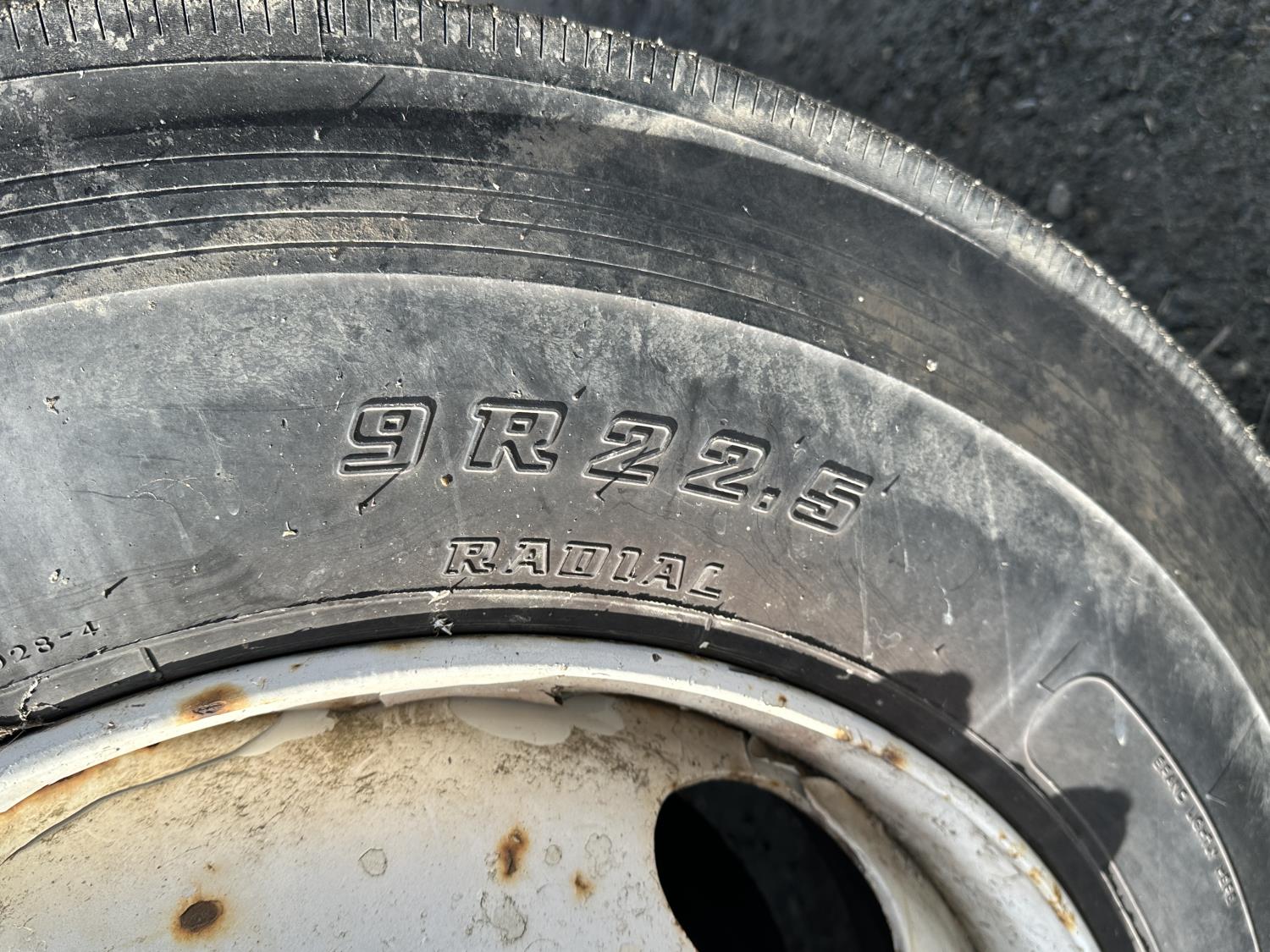 International 9.0 L V8 165 HP diesel engine, 5 speed manual transmission, spring suspension, 250 inch WB, 28ft Frame rail length from back of cab, 9R22.5 tires