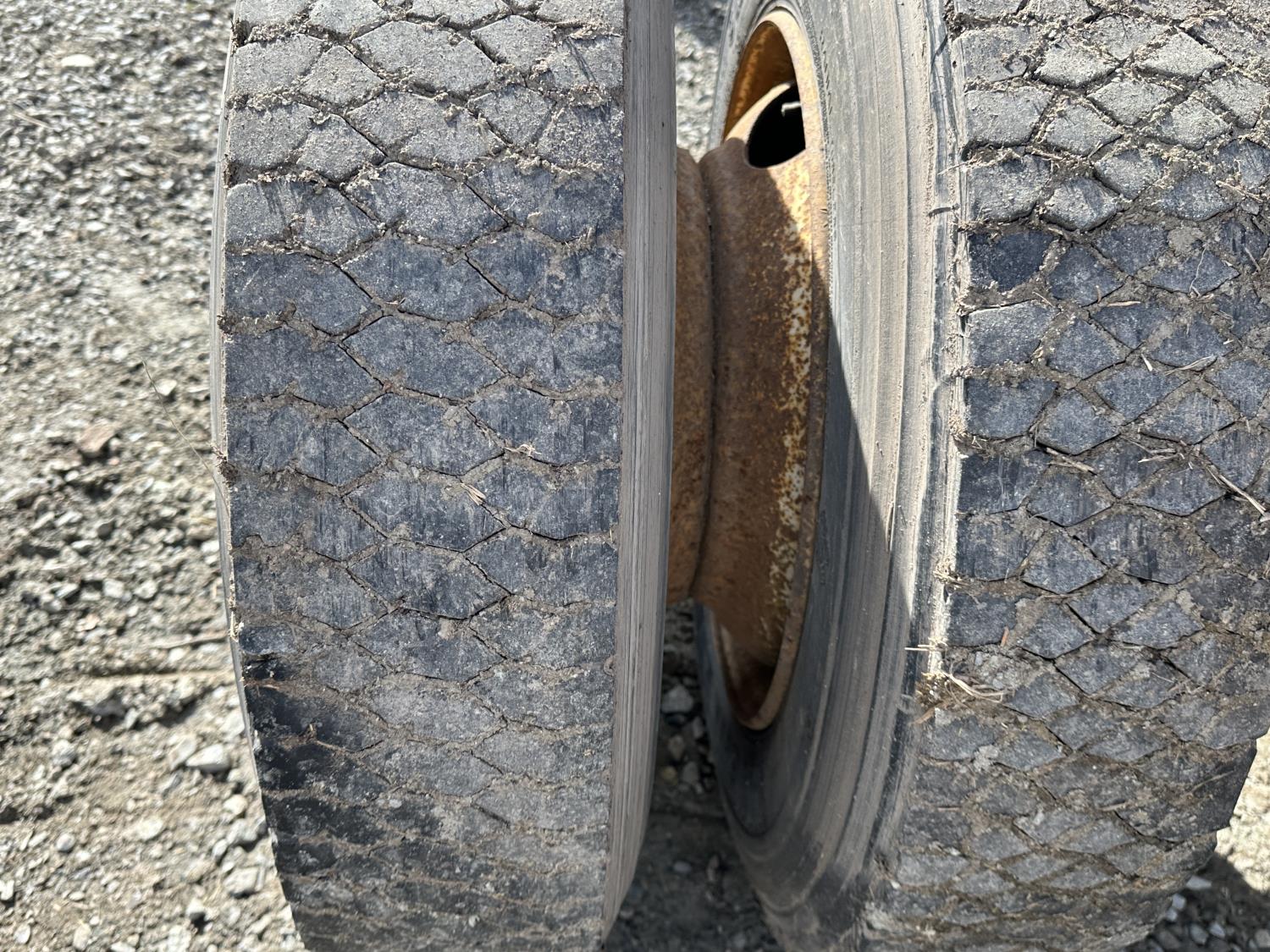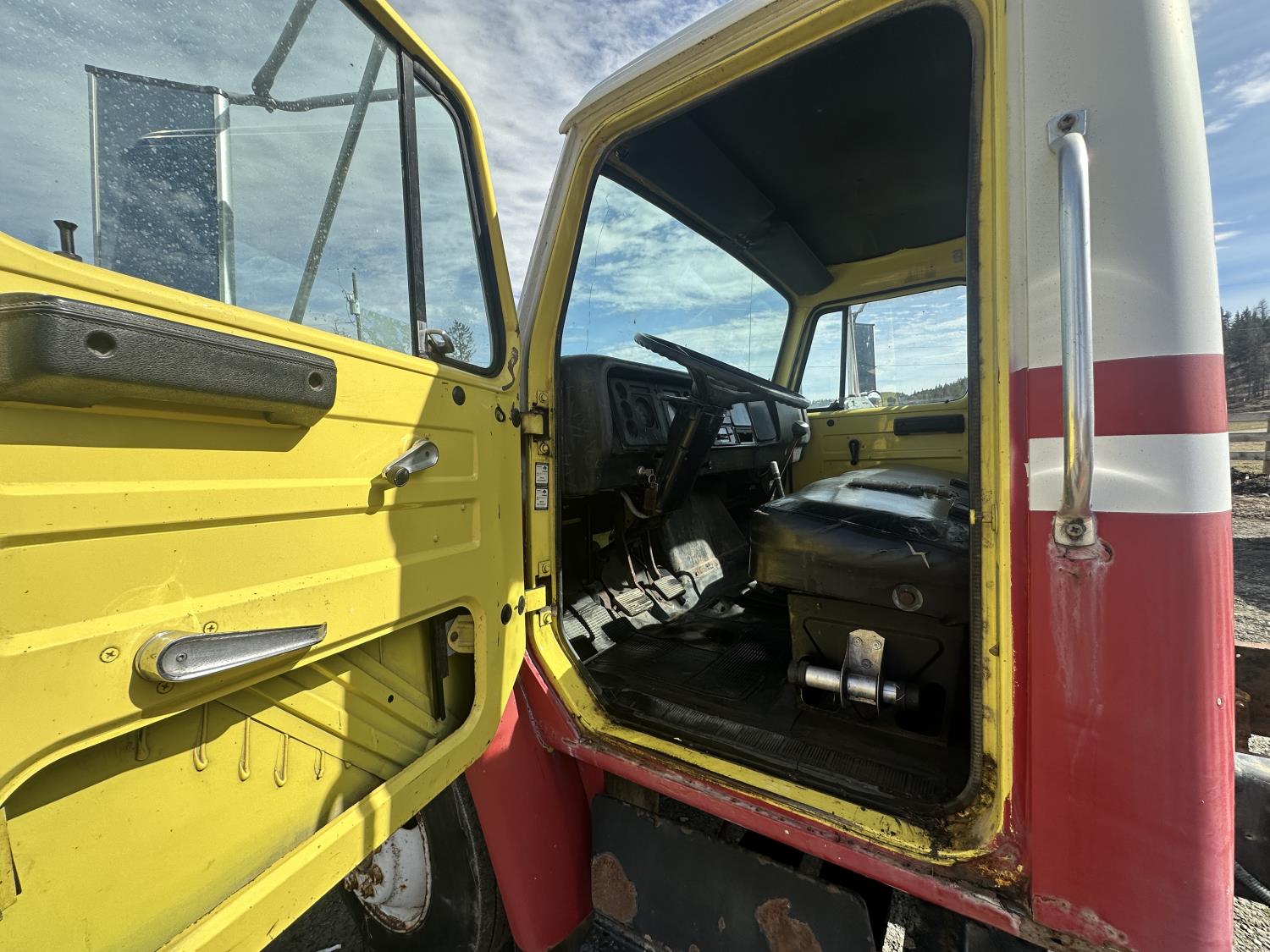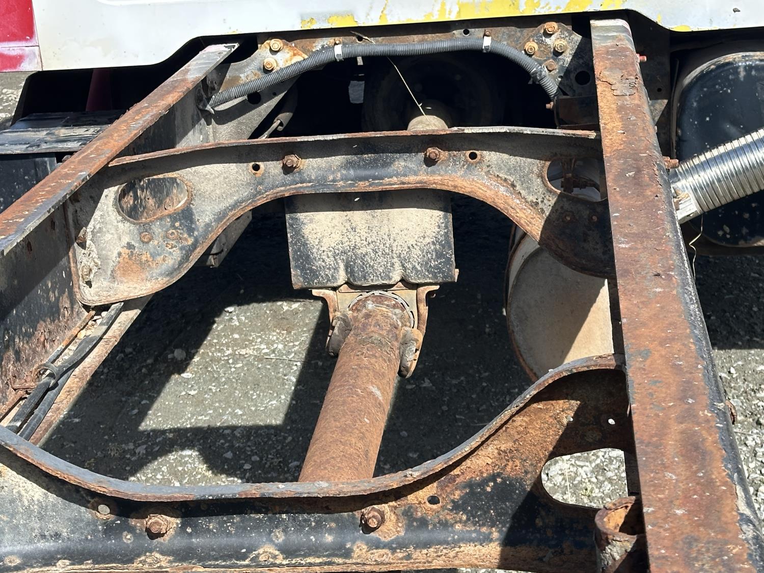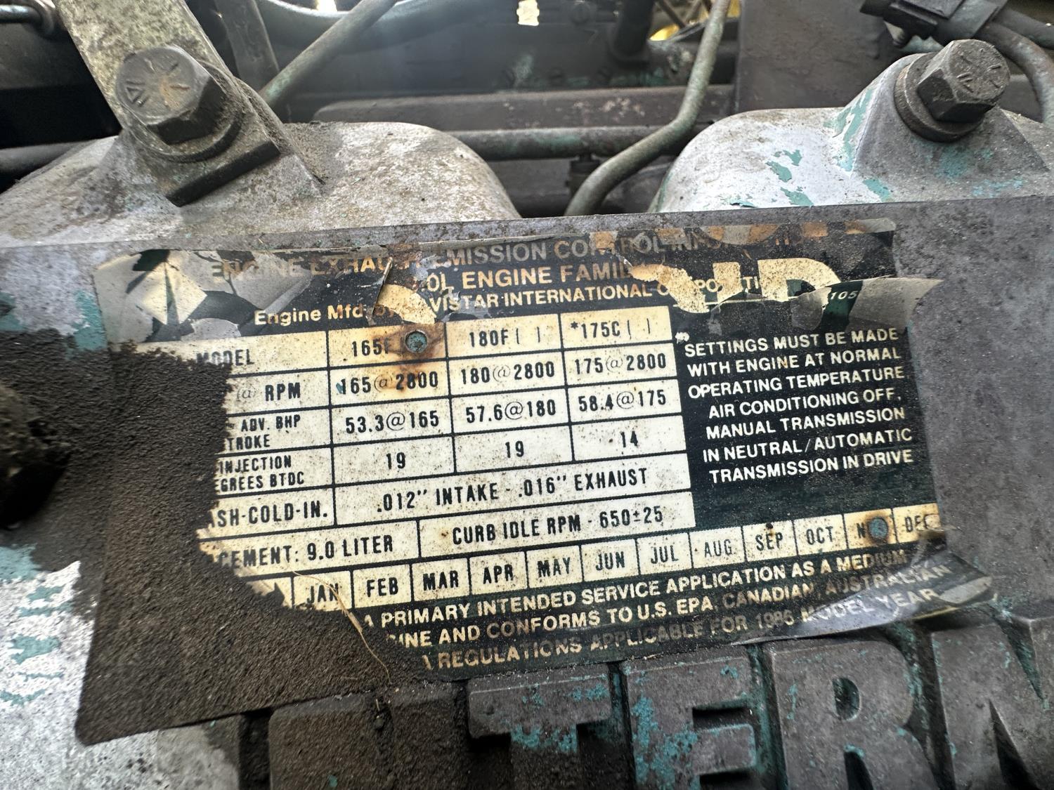 International 9.0 L V8 165 HP diesel engine, 5 speed manual transmission, spring suspension, 250 inch WB, 28ft Frame rail length from back of cab, 9R22.5 tires