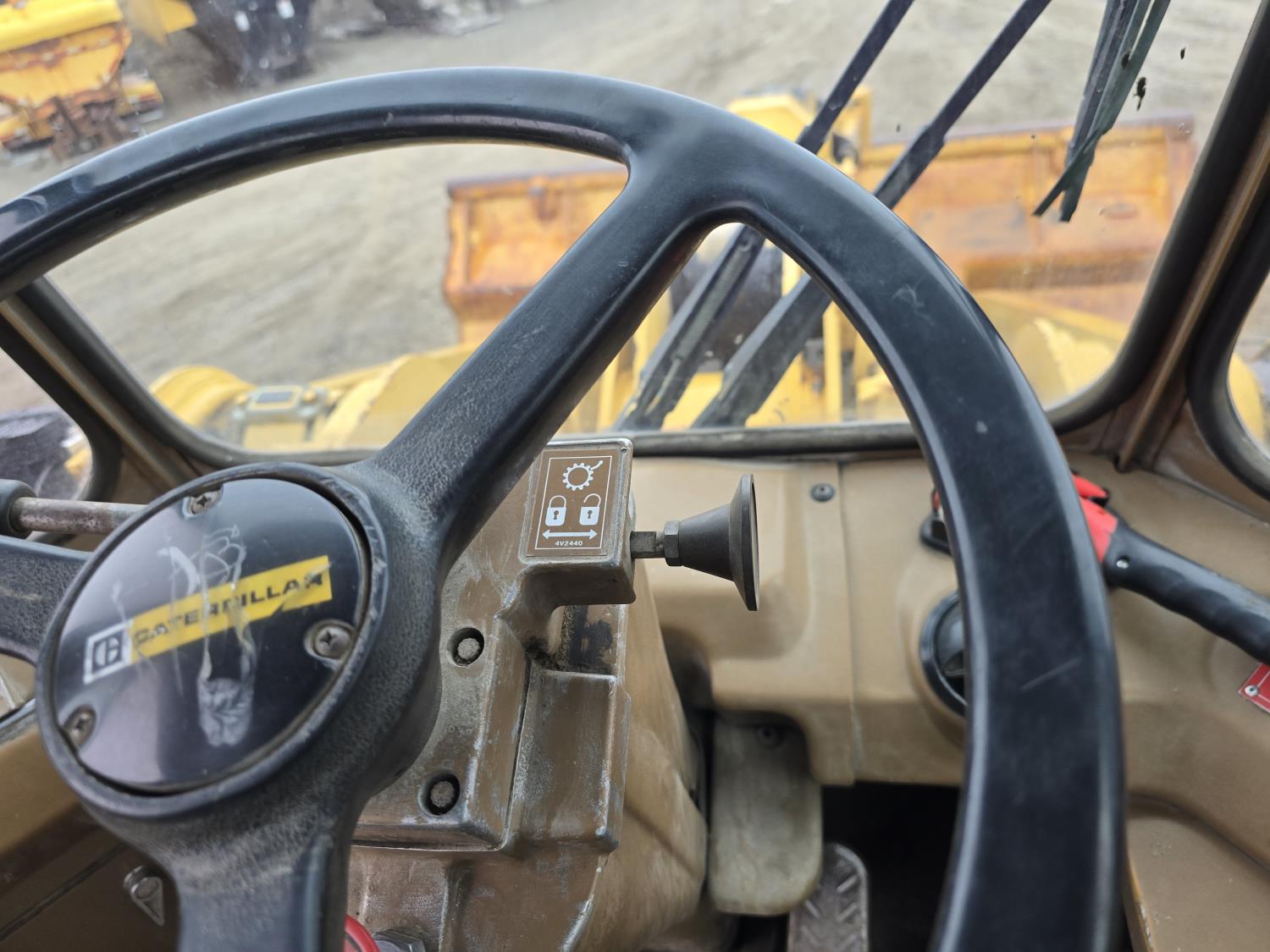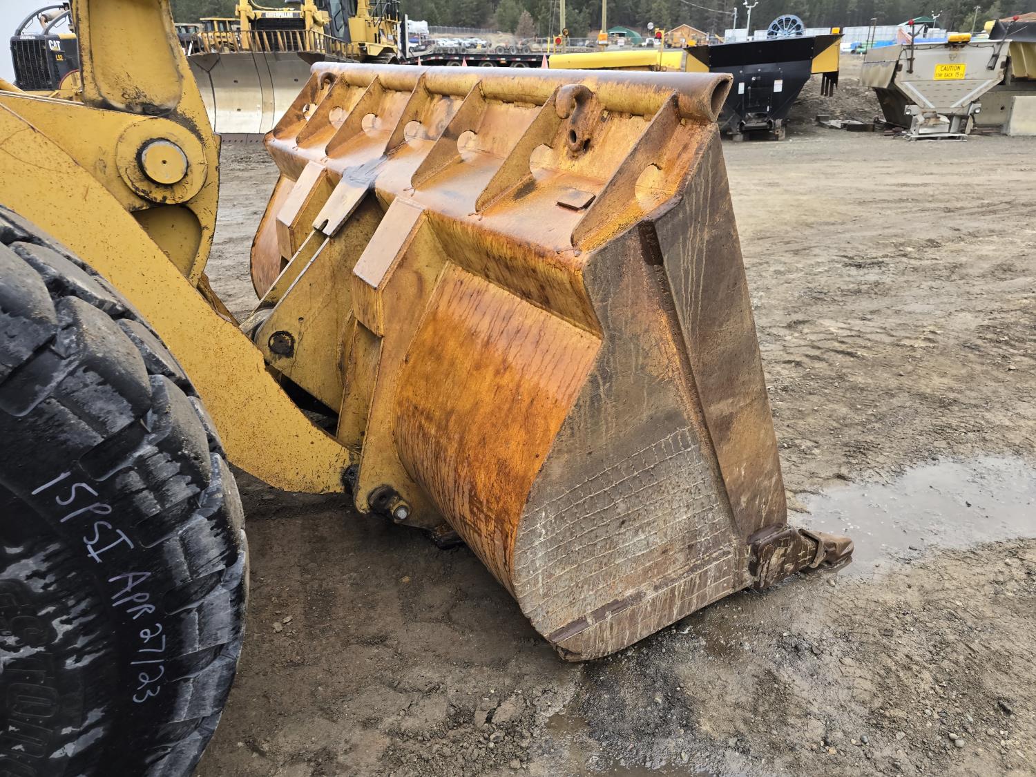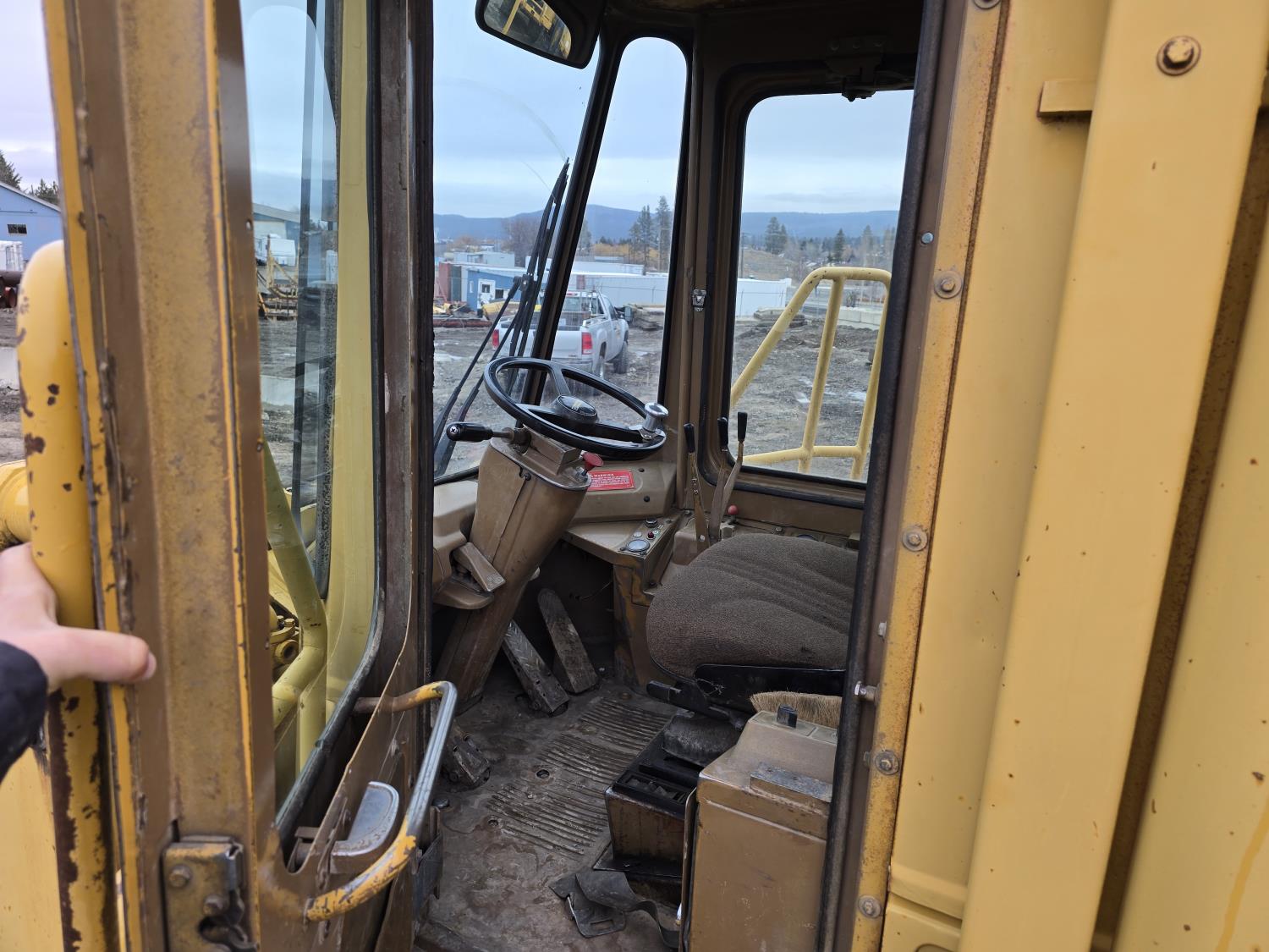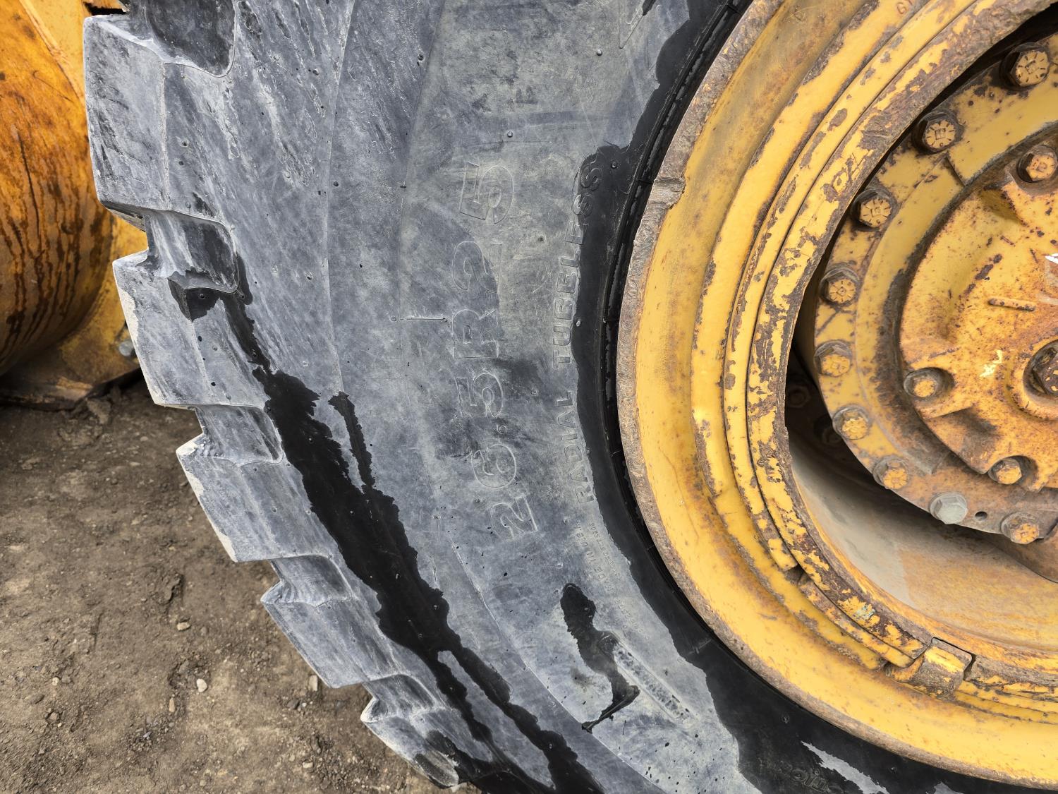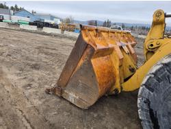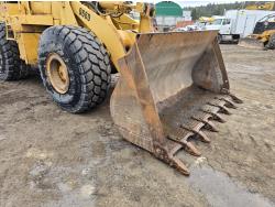 3306 200HP 10.5 liter diesel engine, enclosed cab, A/C, air ride seat, 4 speed powershift transmission, electric circulating block heater, 122 inch toothed bucket, manual coupler, counter weight, 26.5-25 tires