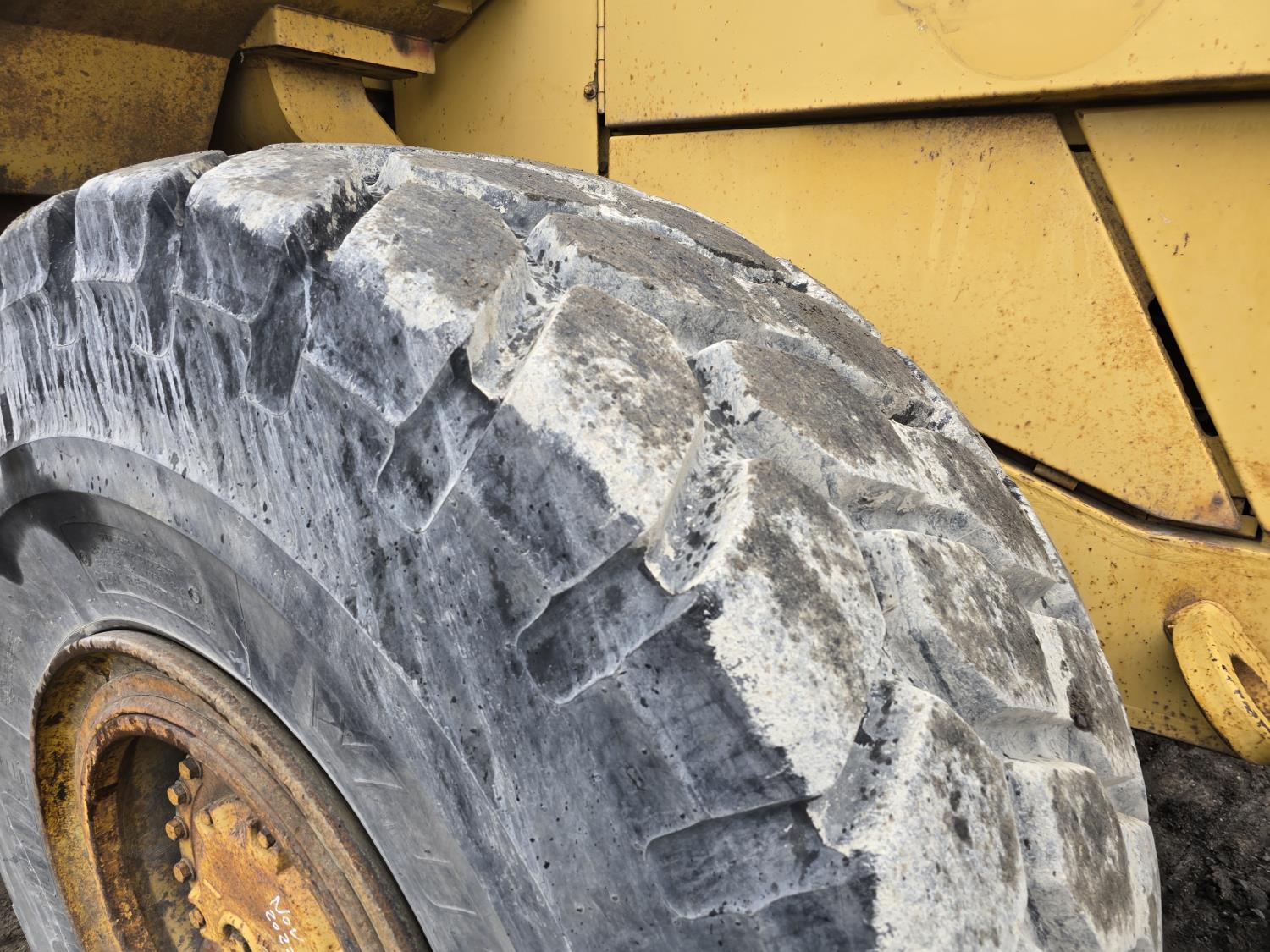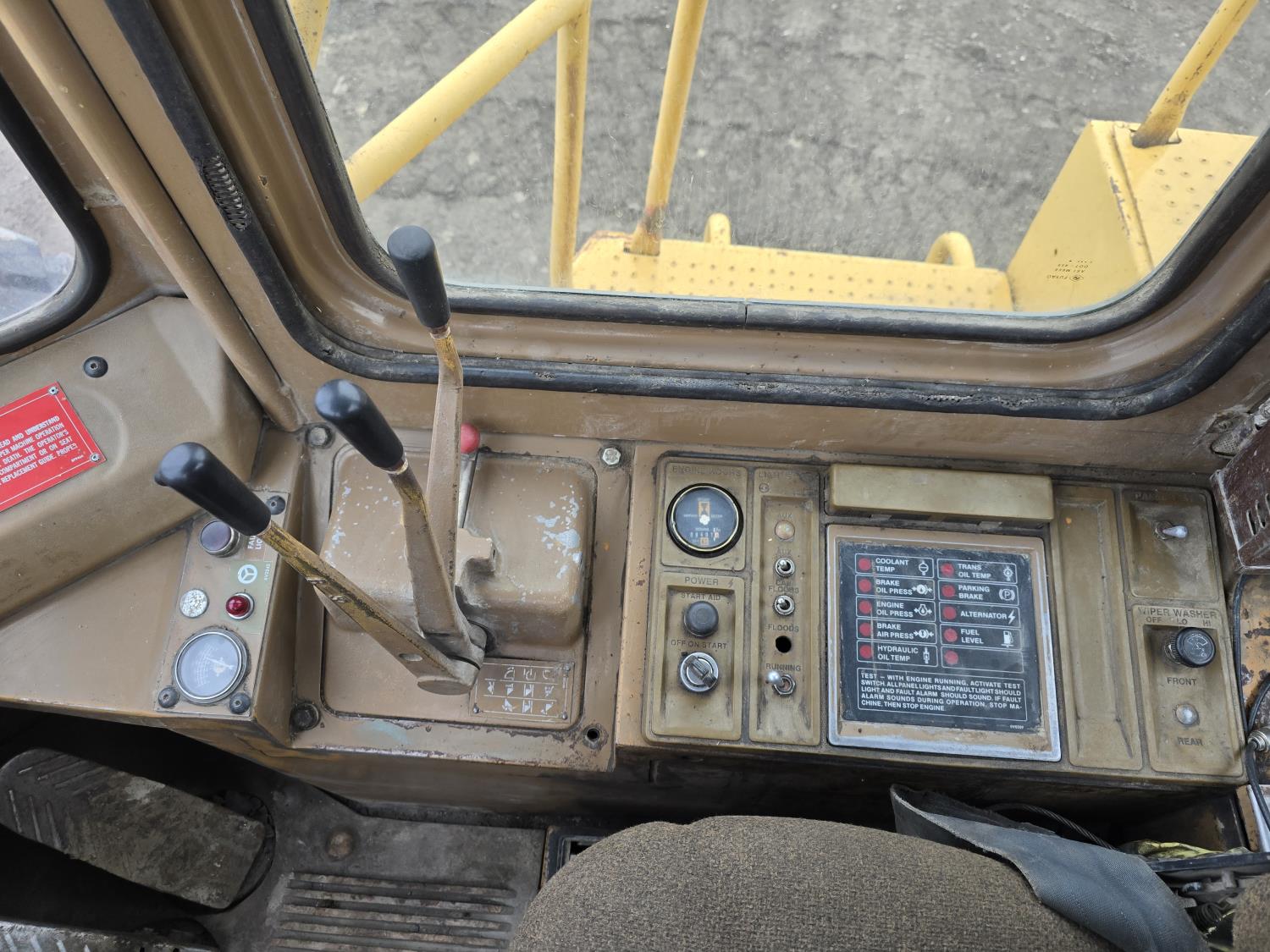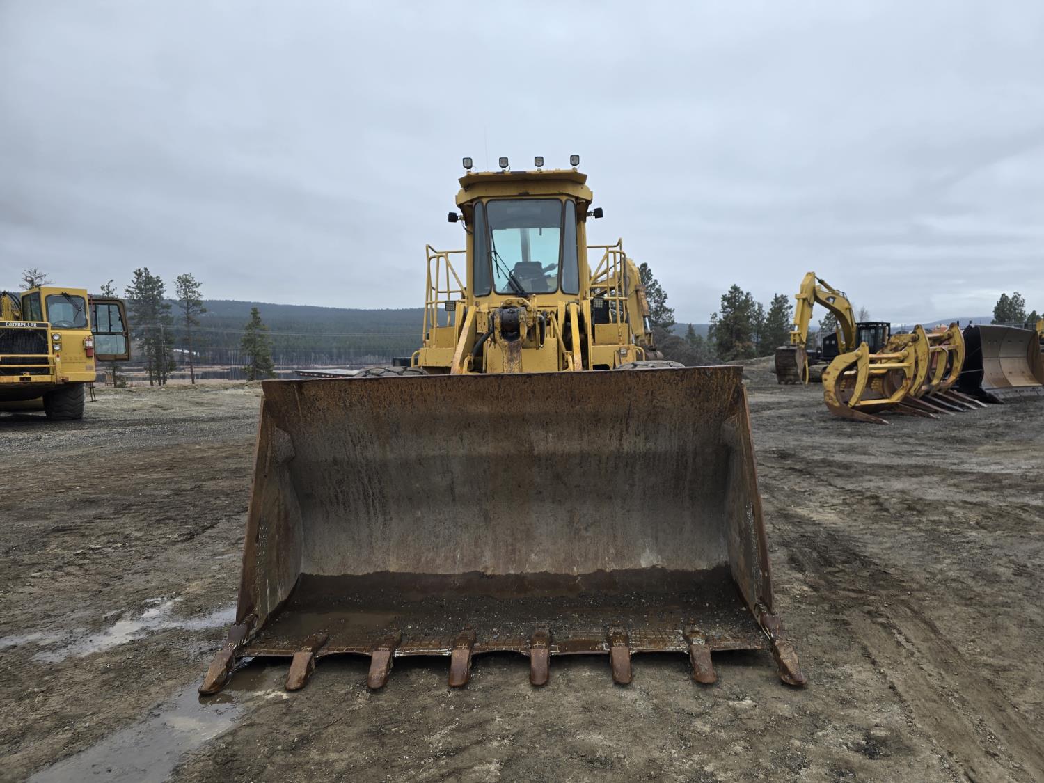 3306 200HP 10.5 liter diesel engine, enclosed cab, A/C, air ride seat, 4 speed powershift transmission, electric circulating block heater, 122 inch toothed bucket, manual coupler, counter weight, 26.5-25 tires