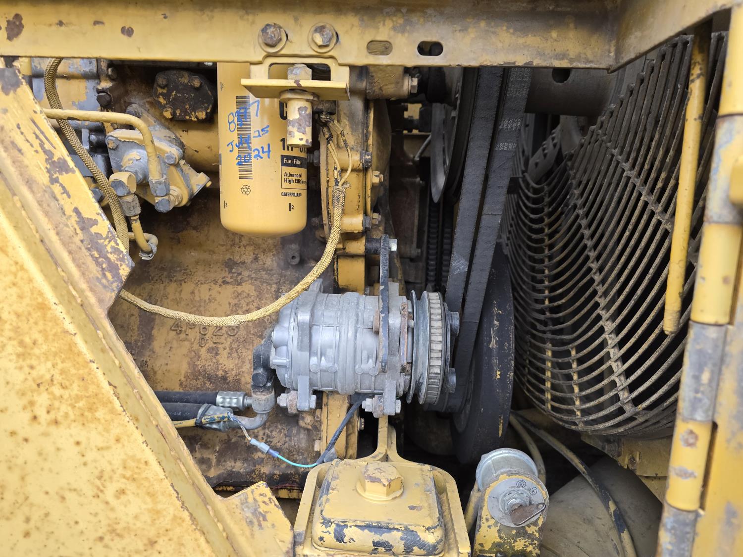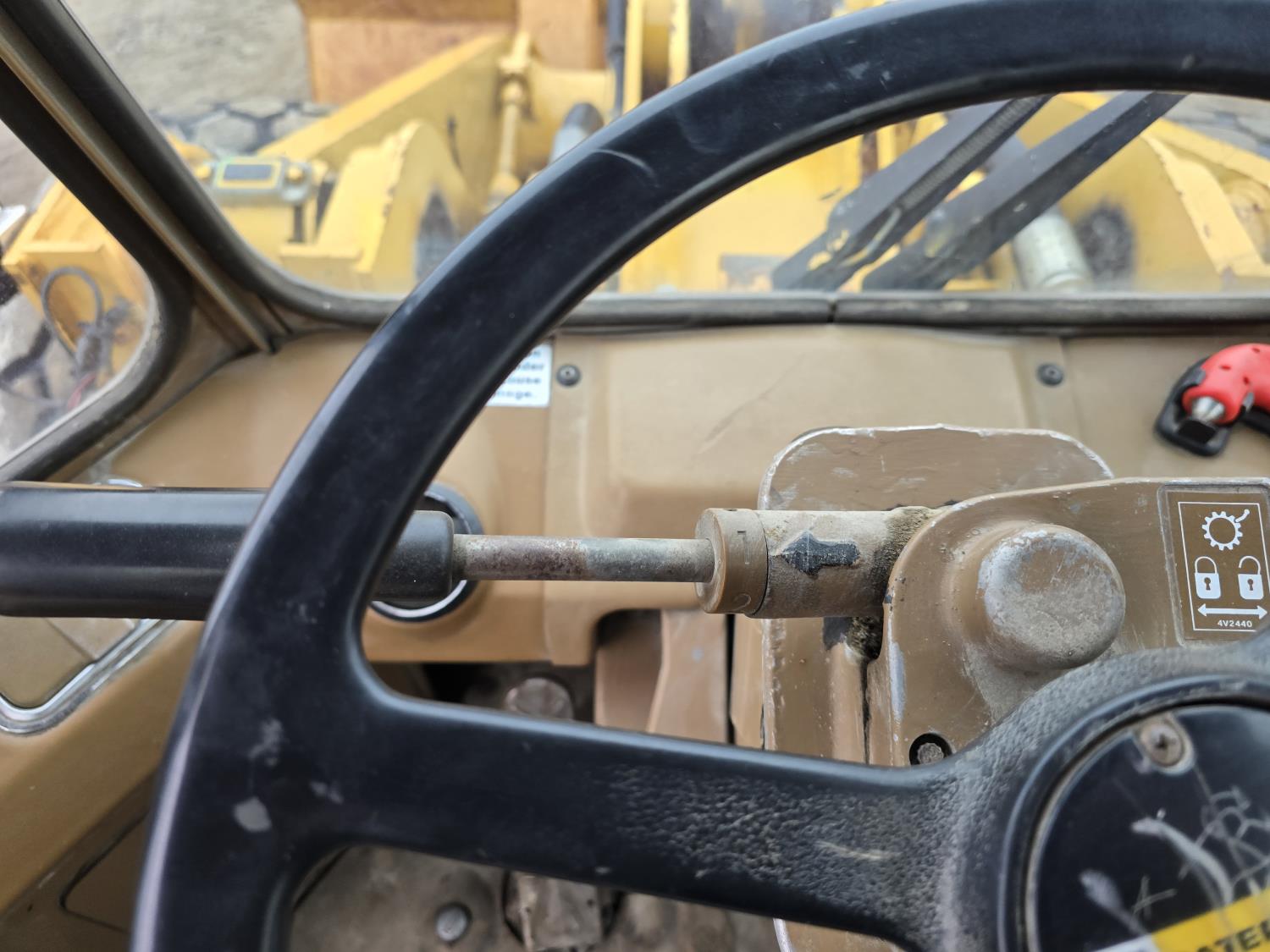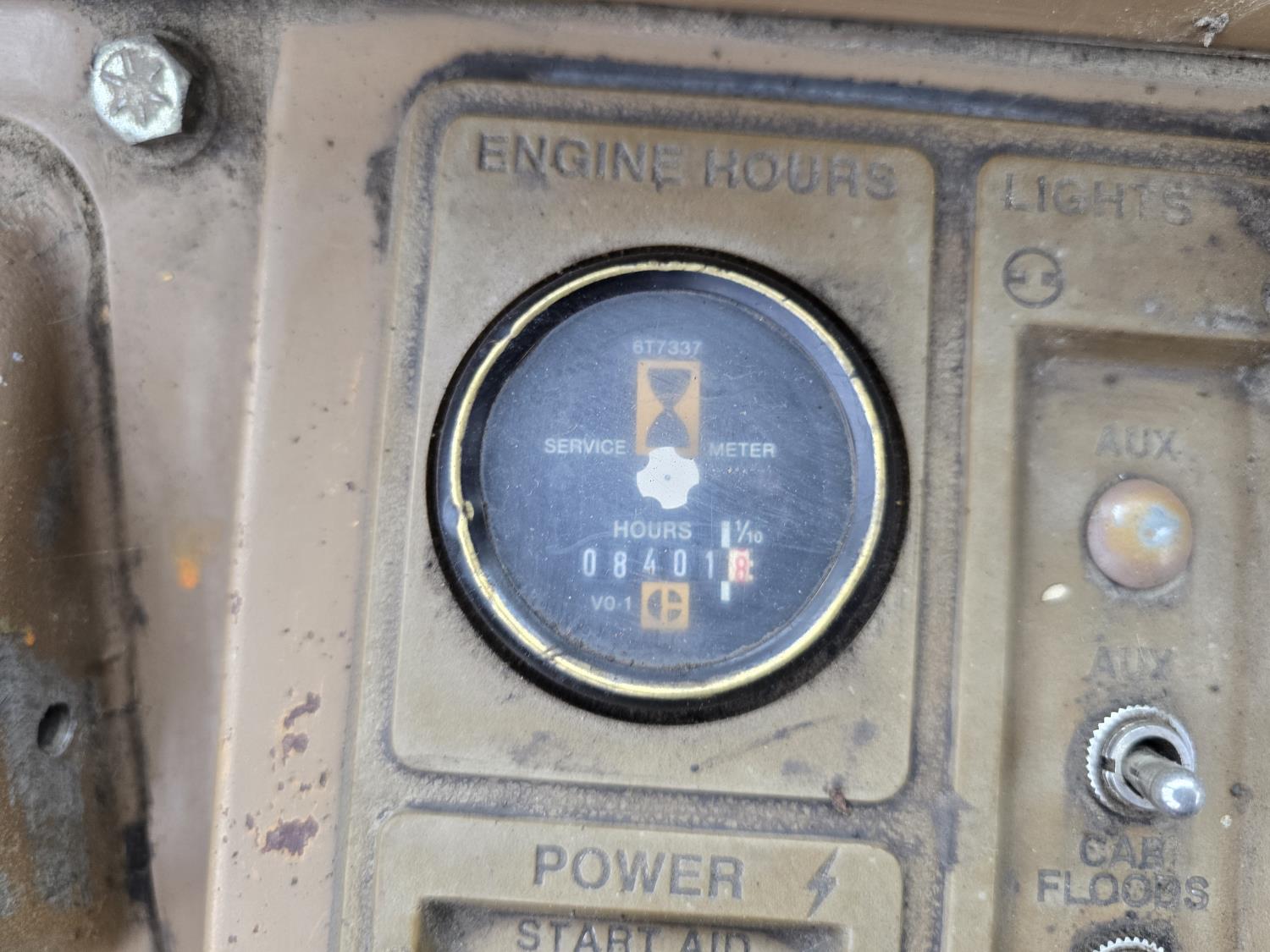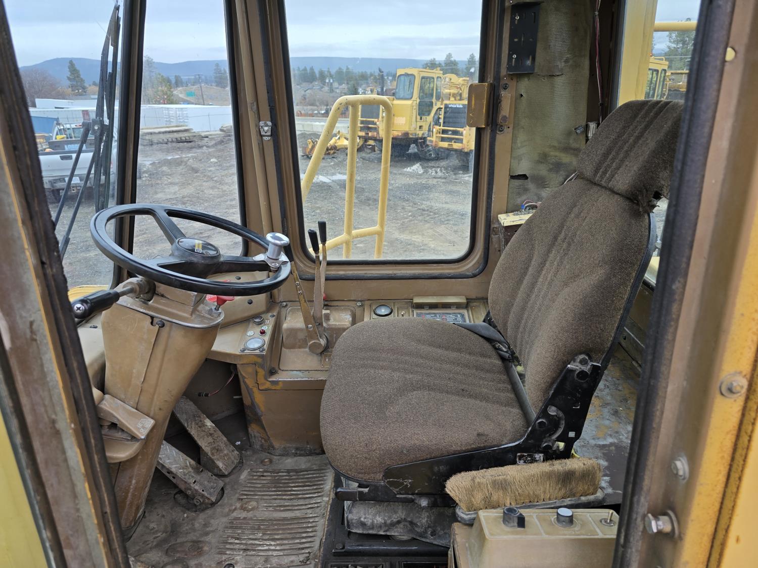 3306 200HP 10.5 liter diesel engine, enclosed cab, A/C, air ride seat, 4 speed powershift transmission, electric circulating block heater, 122 inch toothed bucket, manual coupler, counter weight, 26.5-25 tires