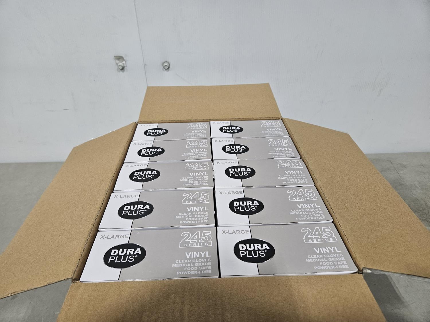 1411 (10) Boxes of Dura Plus Vinyl Gloves - Size XL (Unused)
