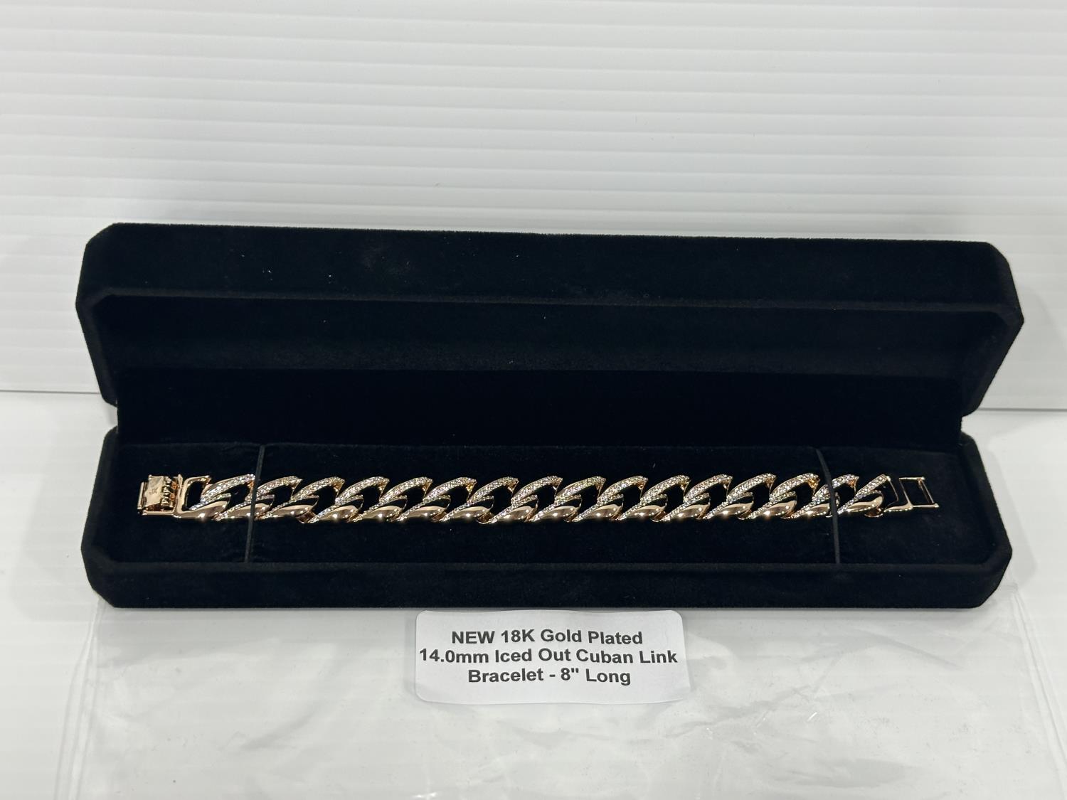 1969 Smartlife 18K Gold Plated 14.0 mm Iced Out Cuban Link Bracelet (Unused)