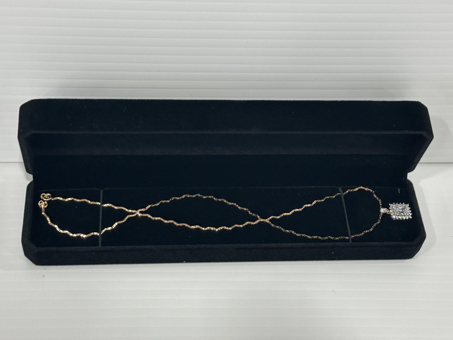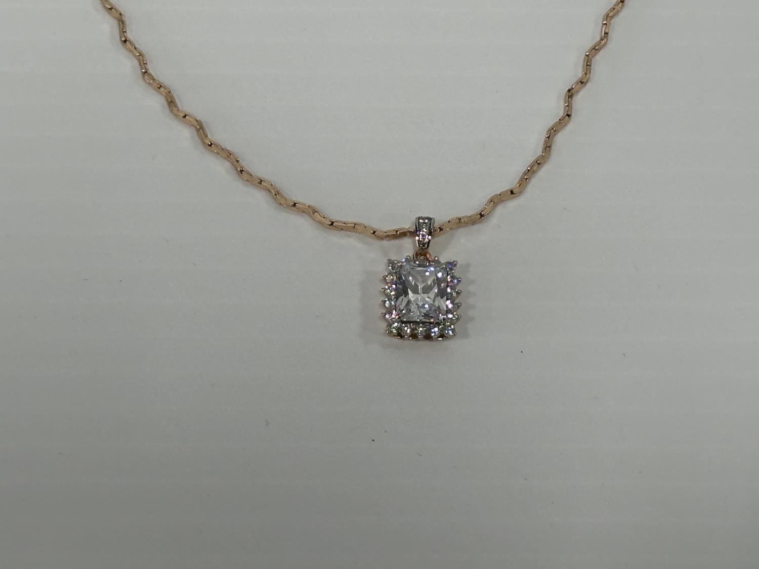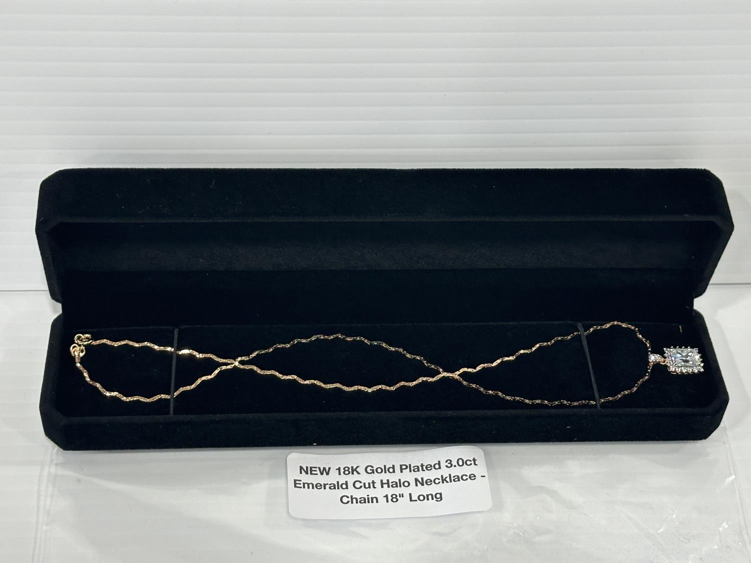 1971 Smartlife 18K Gold Plated 3.0 Ct Emerald Cut Halo Necklace (Unused)