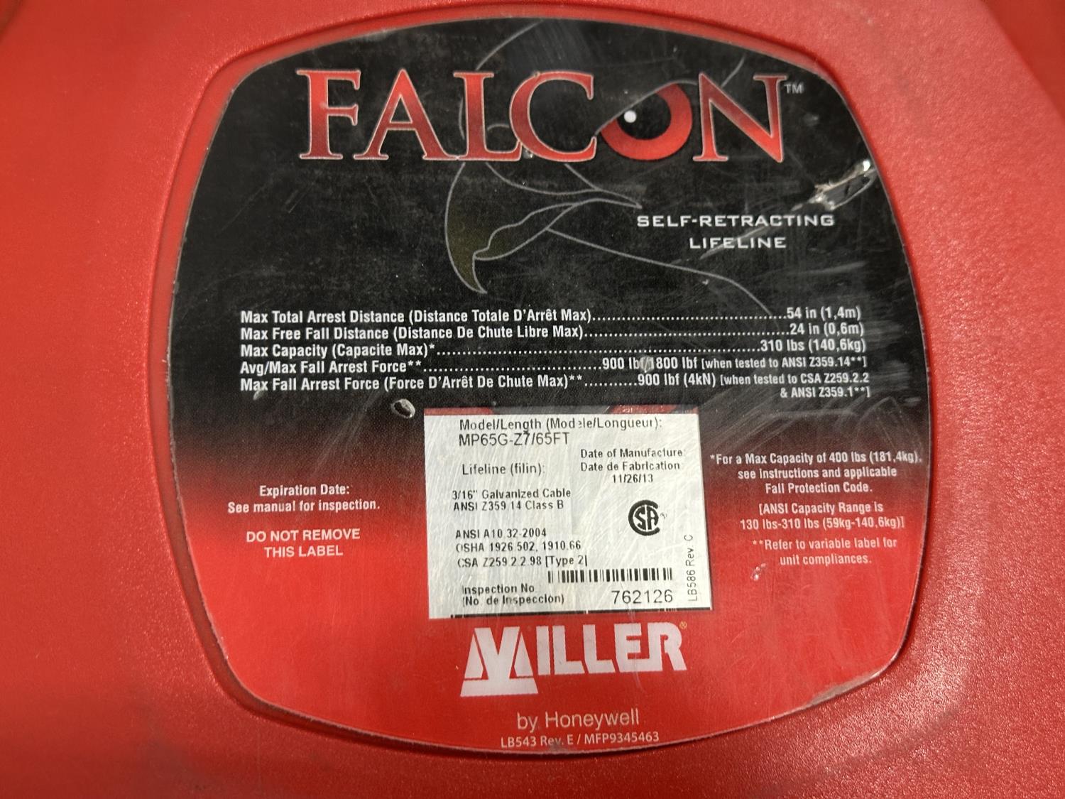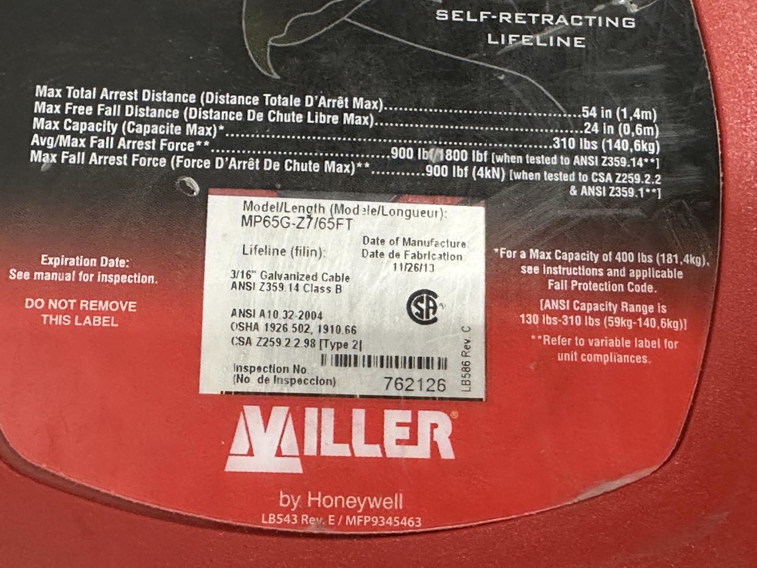 1519 (2) 3M Harnesses and Miller Falcon 65 Ft Self-Retracting Lifeline