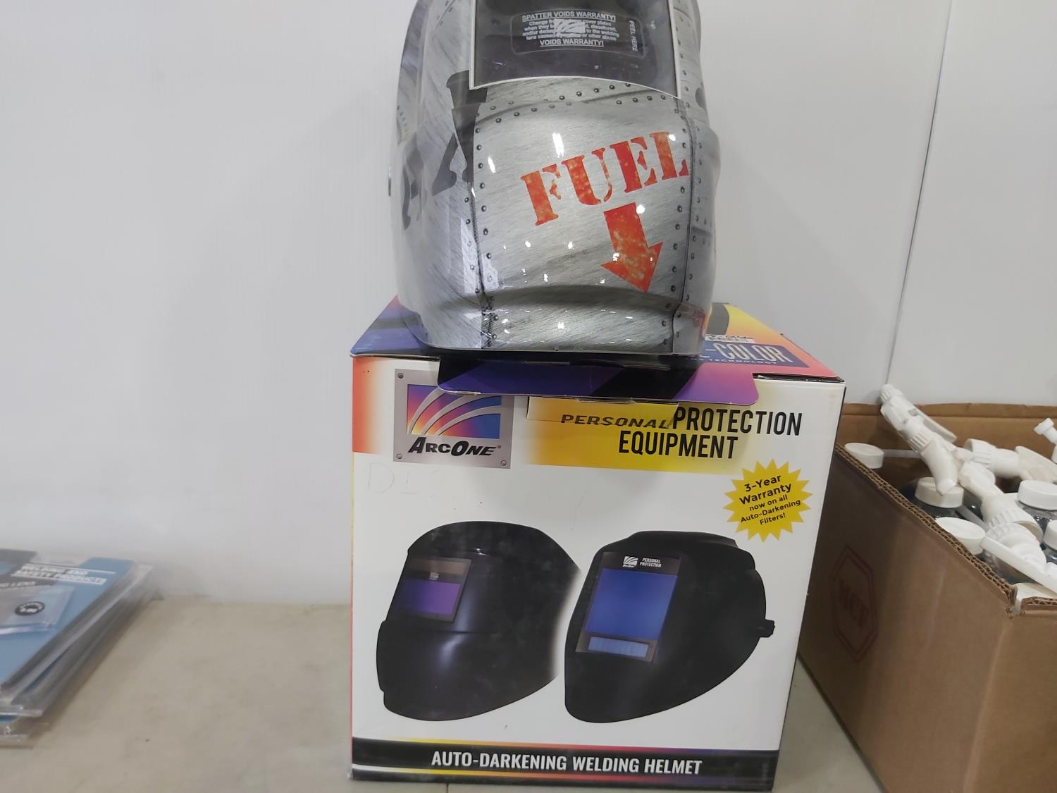 1054 (2) Arc One Welding Helmets and Qty of Welding Supplies