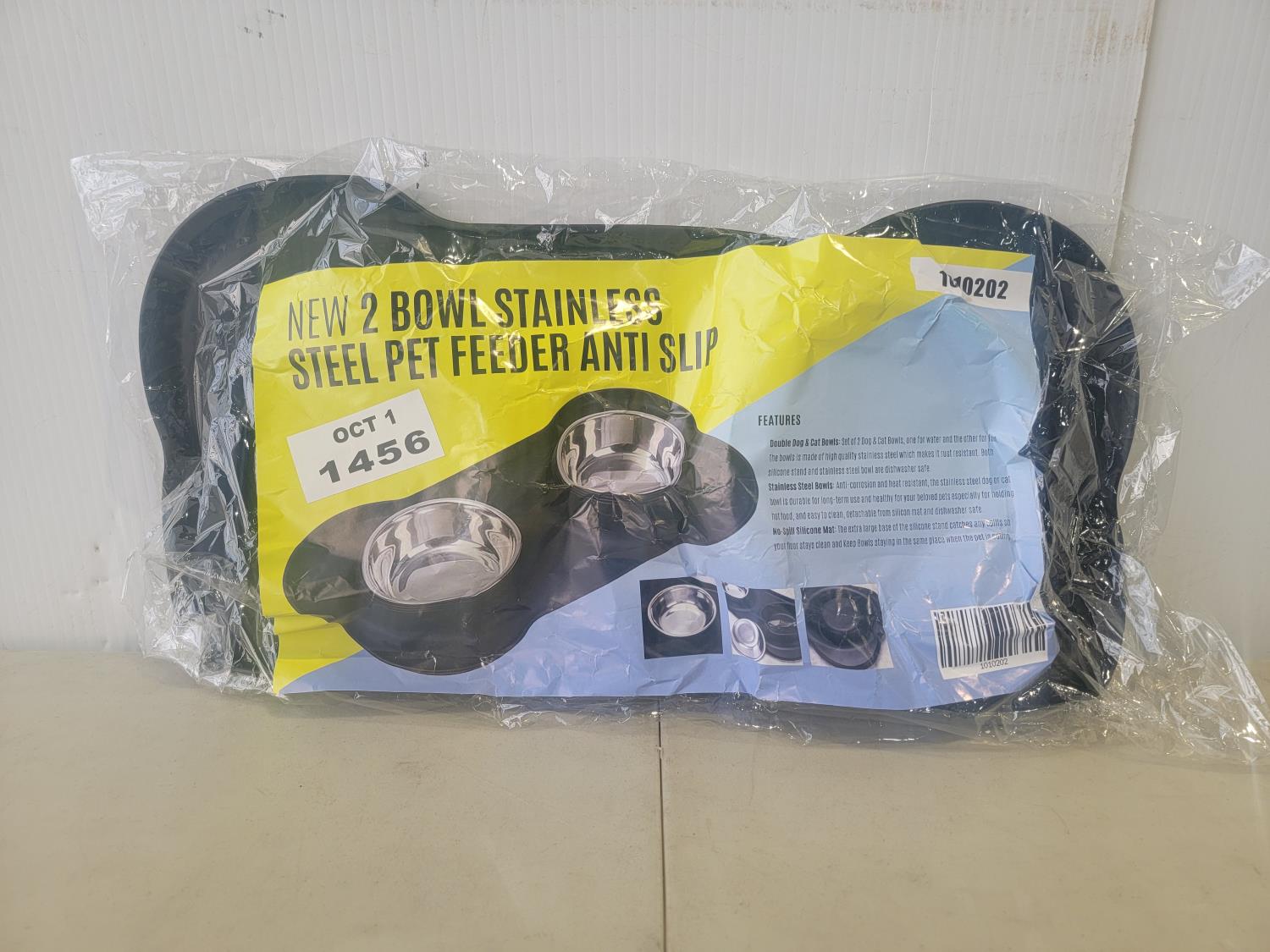 1923 2 Bowl Stainless Steel Pet Feeder and Pet Grooming Hair Removal Glove (Unused)