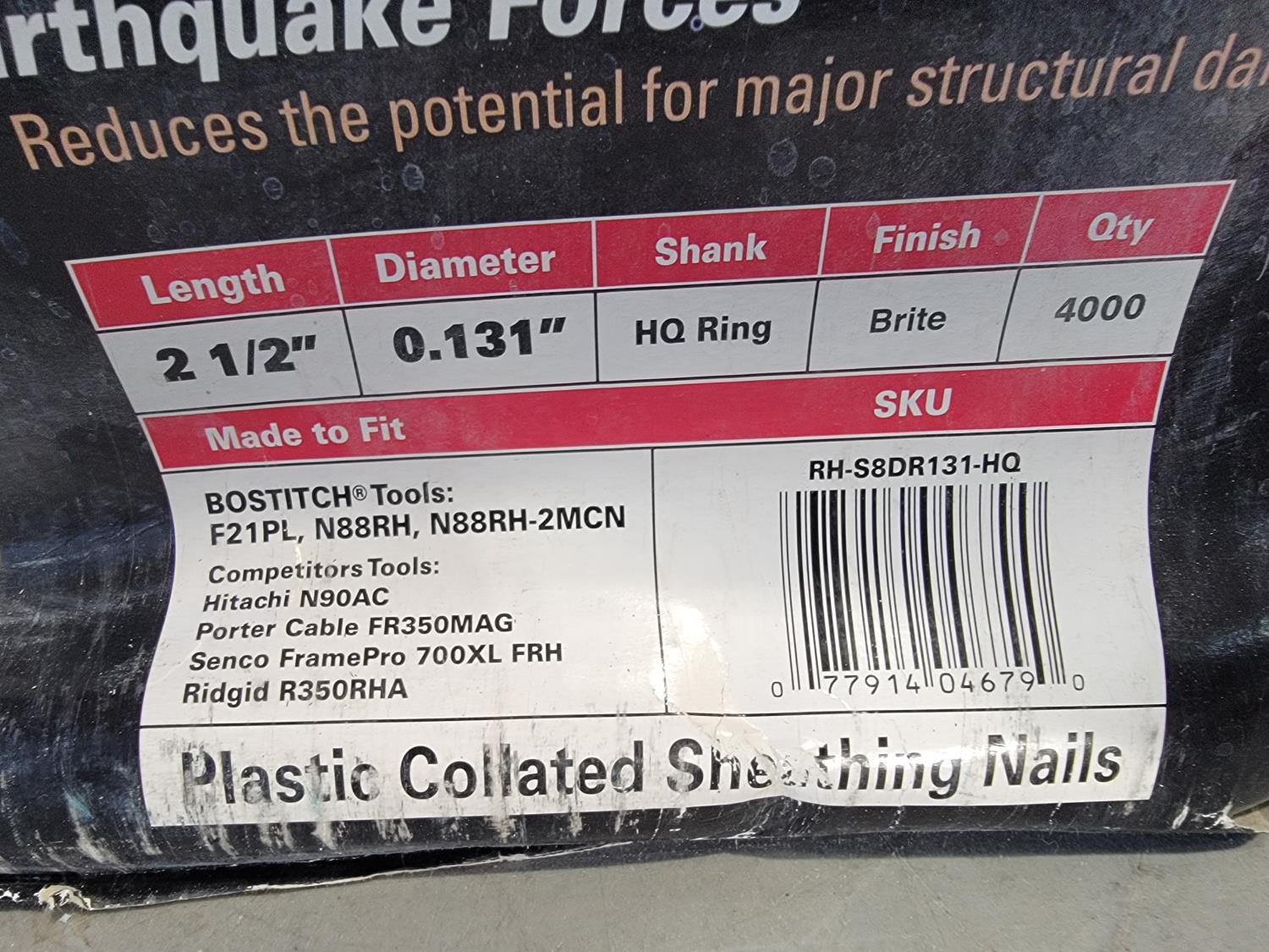 1307 (2) Boxes of Bostitch 2-1/2 Inch X 0.131 Inch Plastic Collated Sheathing Nails