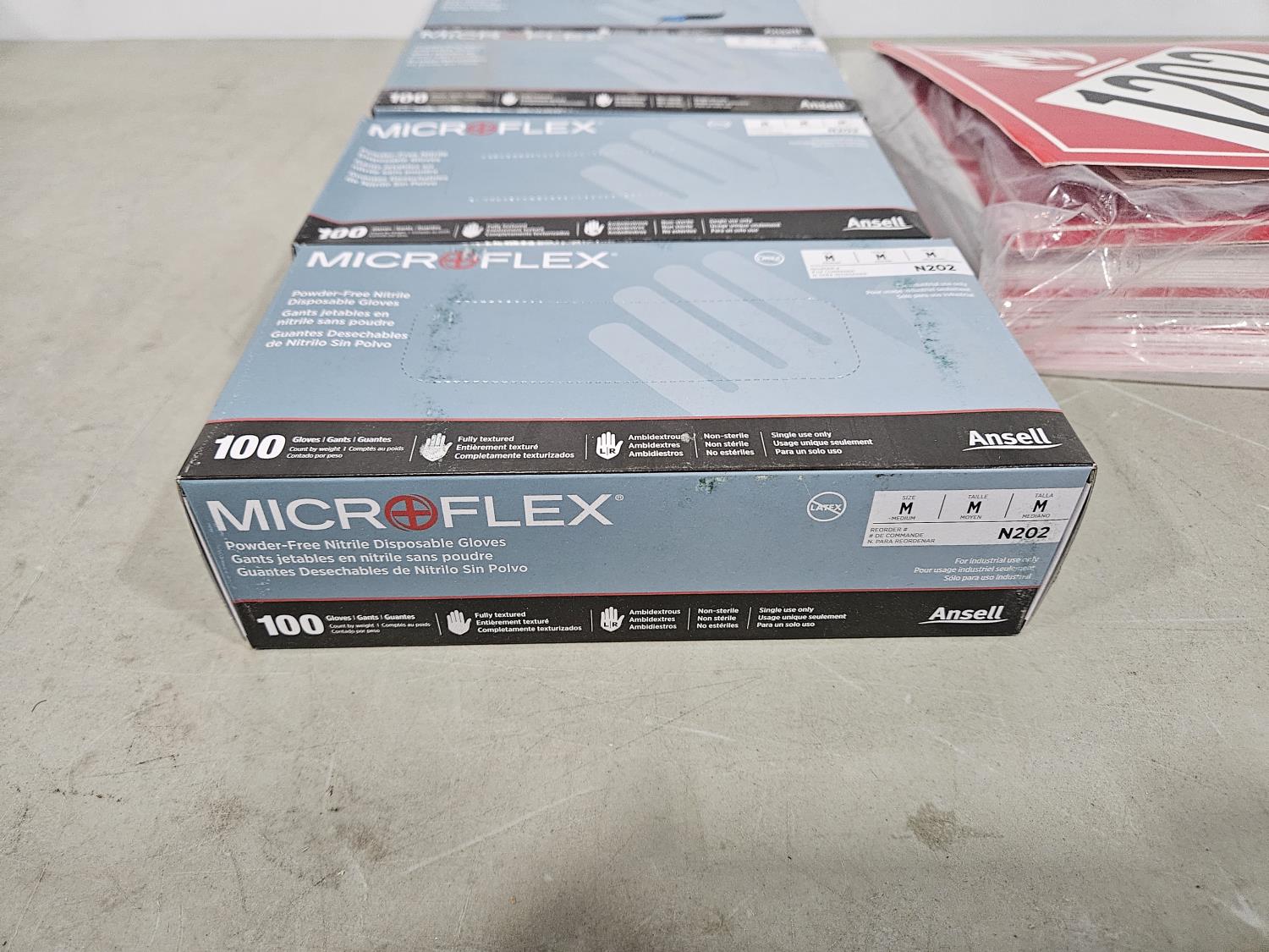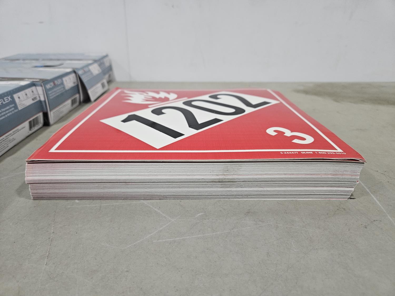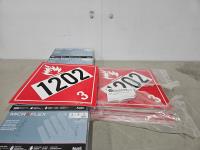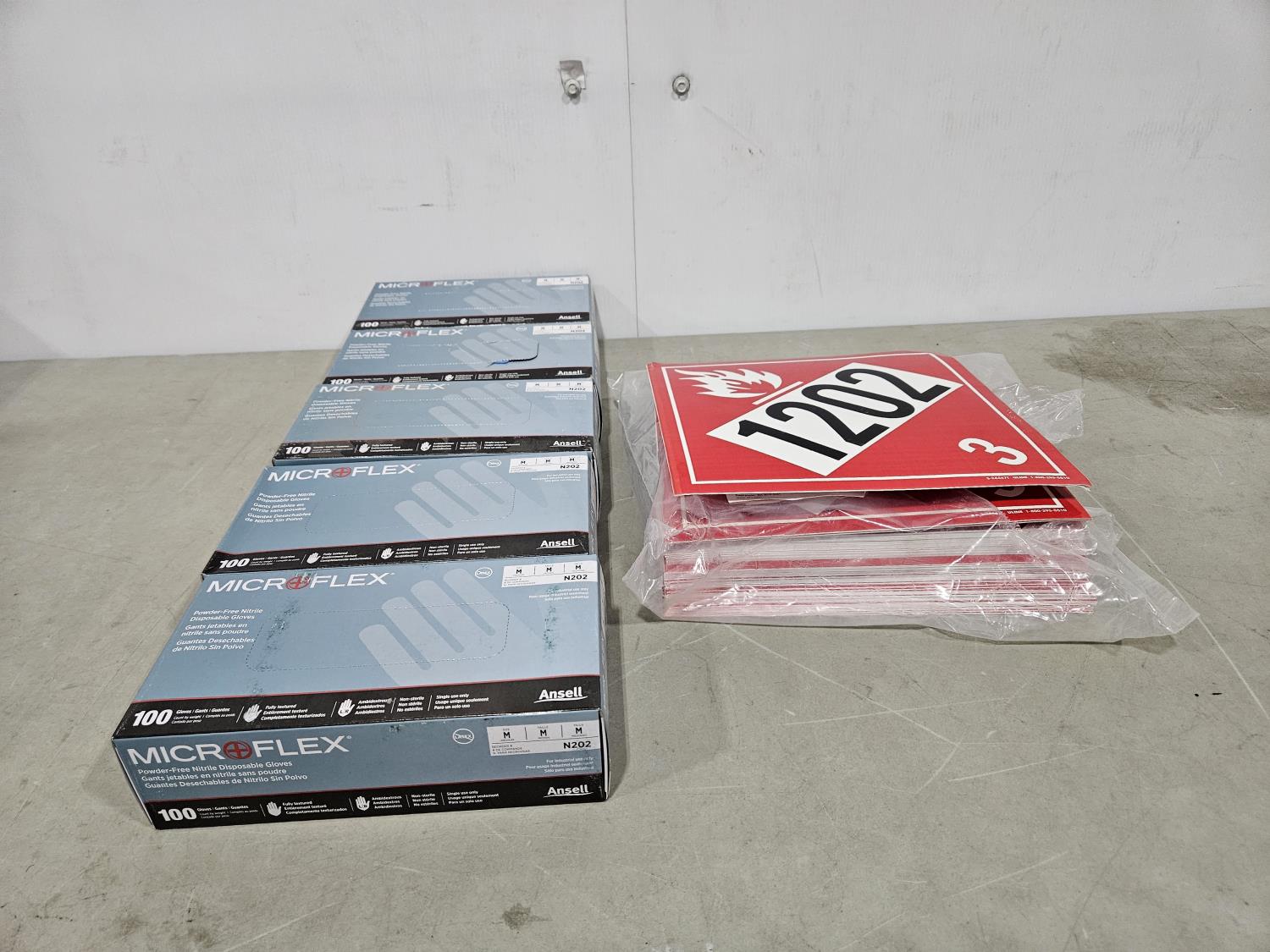 1449 (5) Boxes of Nitrile Disposable Gloves and Qty of 1202 Adhesive Vinyl Placards (Unused)