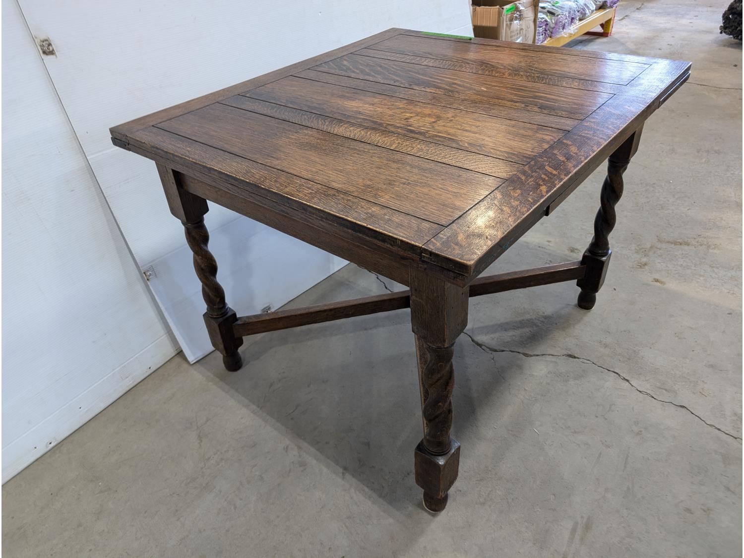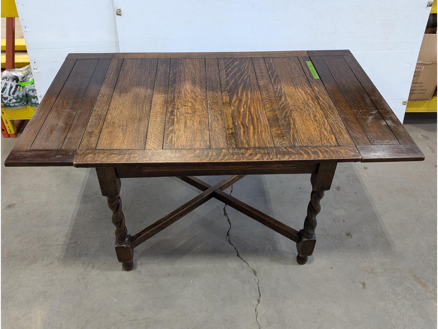 1627 Antique Quarter Sawn Oak Dining Table with Extensions