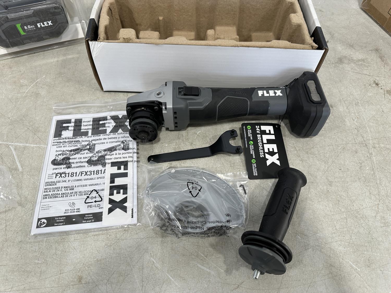 1530 Flex 24V Brushless 5 Inch Variable Speed Angle Grinder with Side Switch and 8.0Ah Lithium Battery