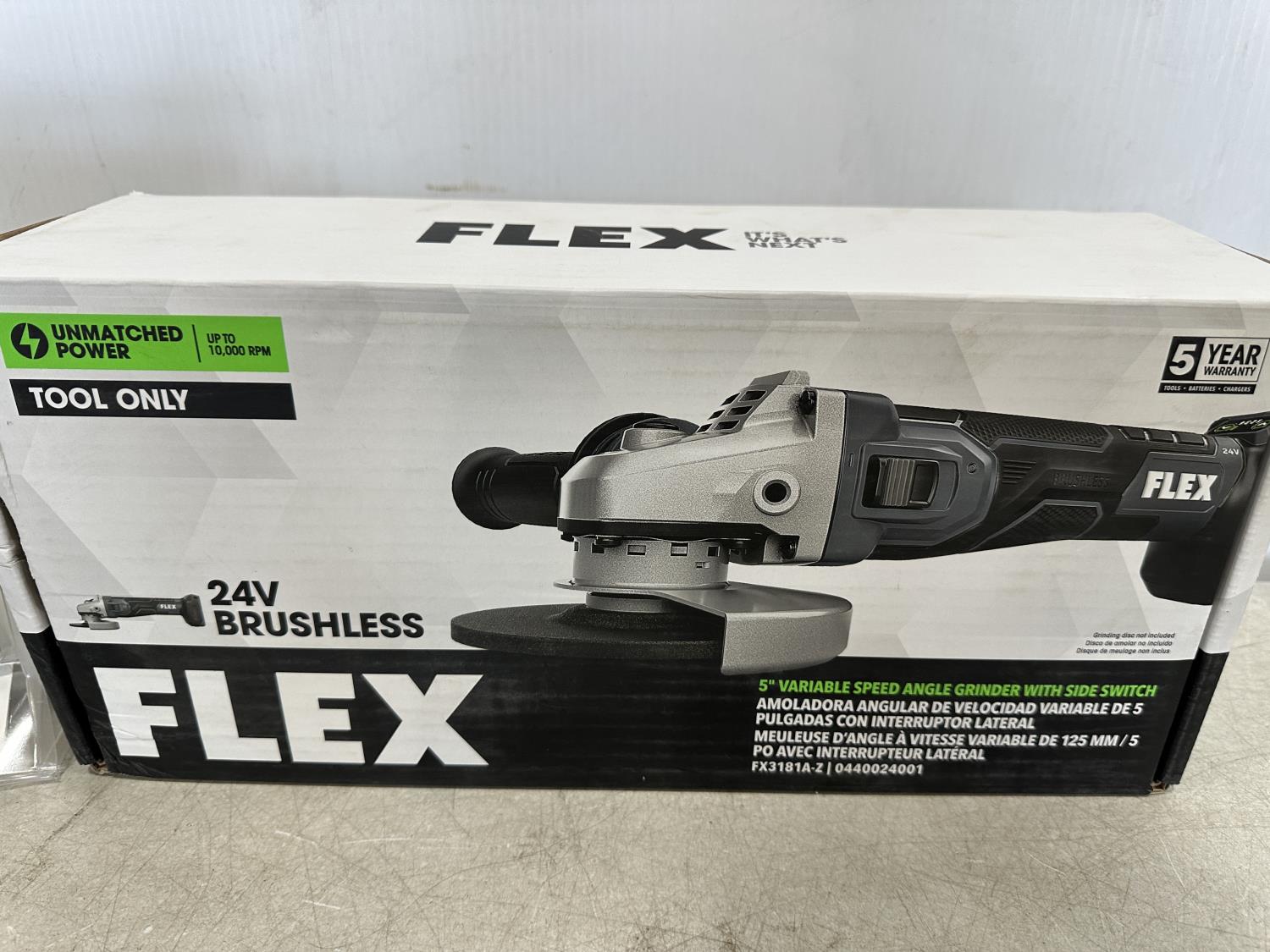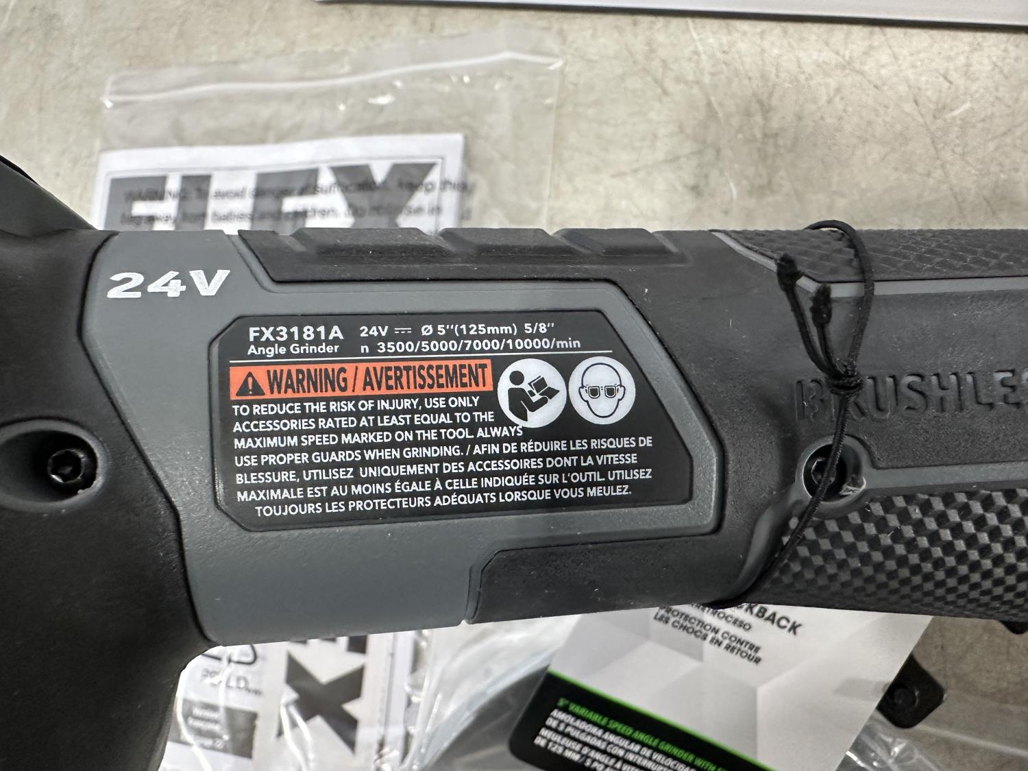 1533 Flex 24V Brushless 5 Inch Variable Speed Angle Grinder with Side Switch and 8.0Ah Lithium Battery
