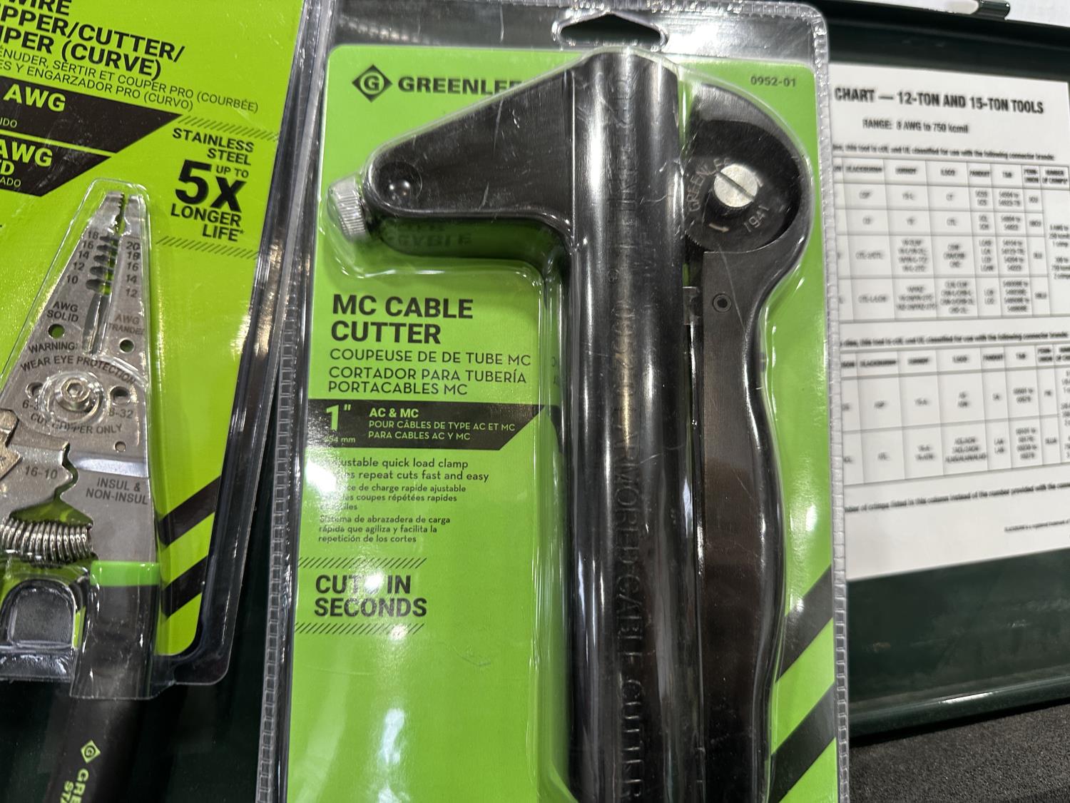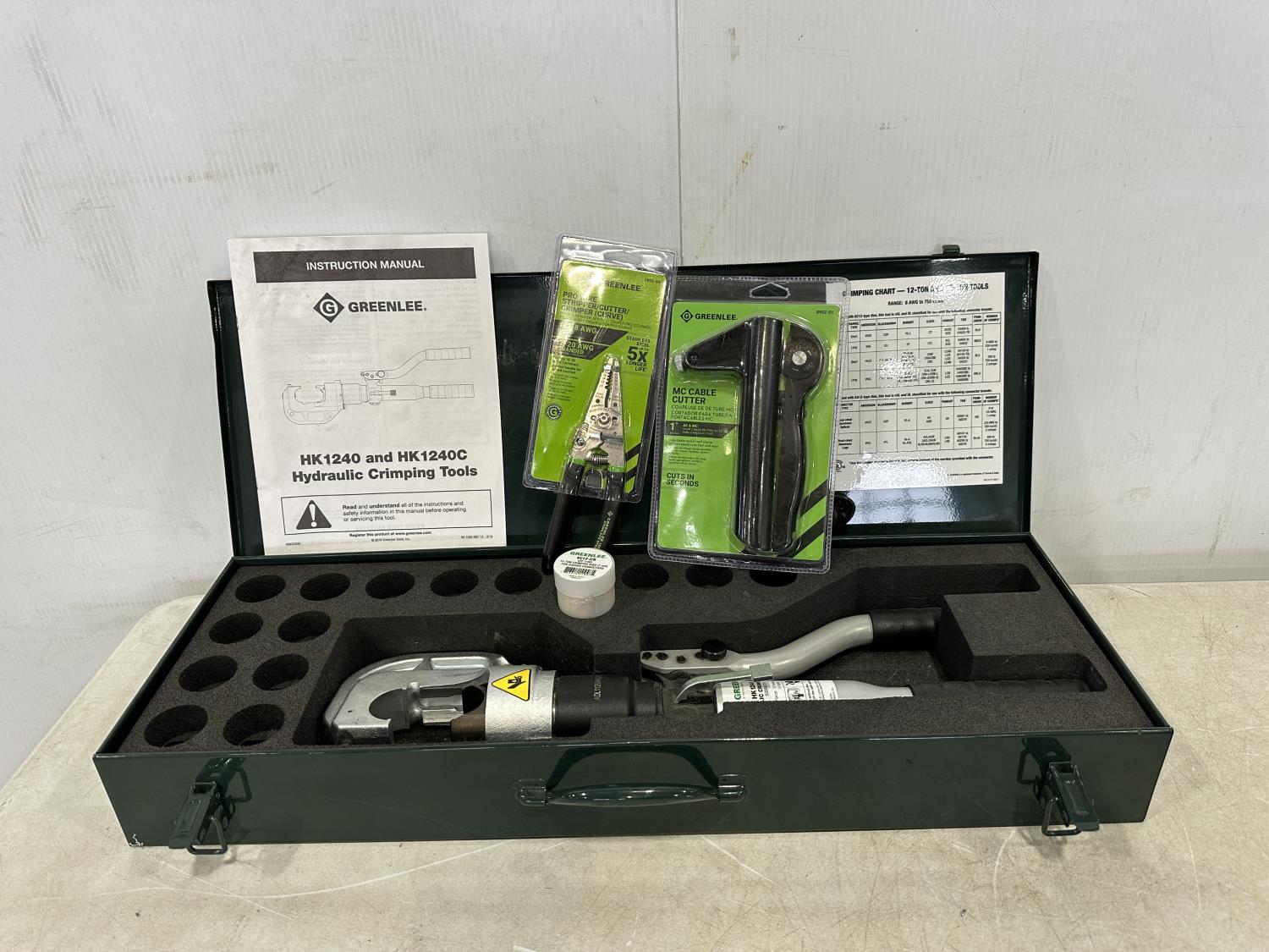 1477 Greenlee Hydraulic Crimping Tool, Die, Wire Stripper and Cable Cutter