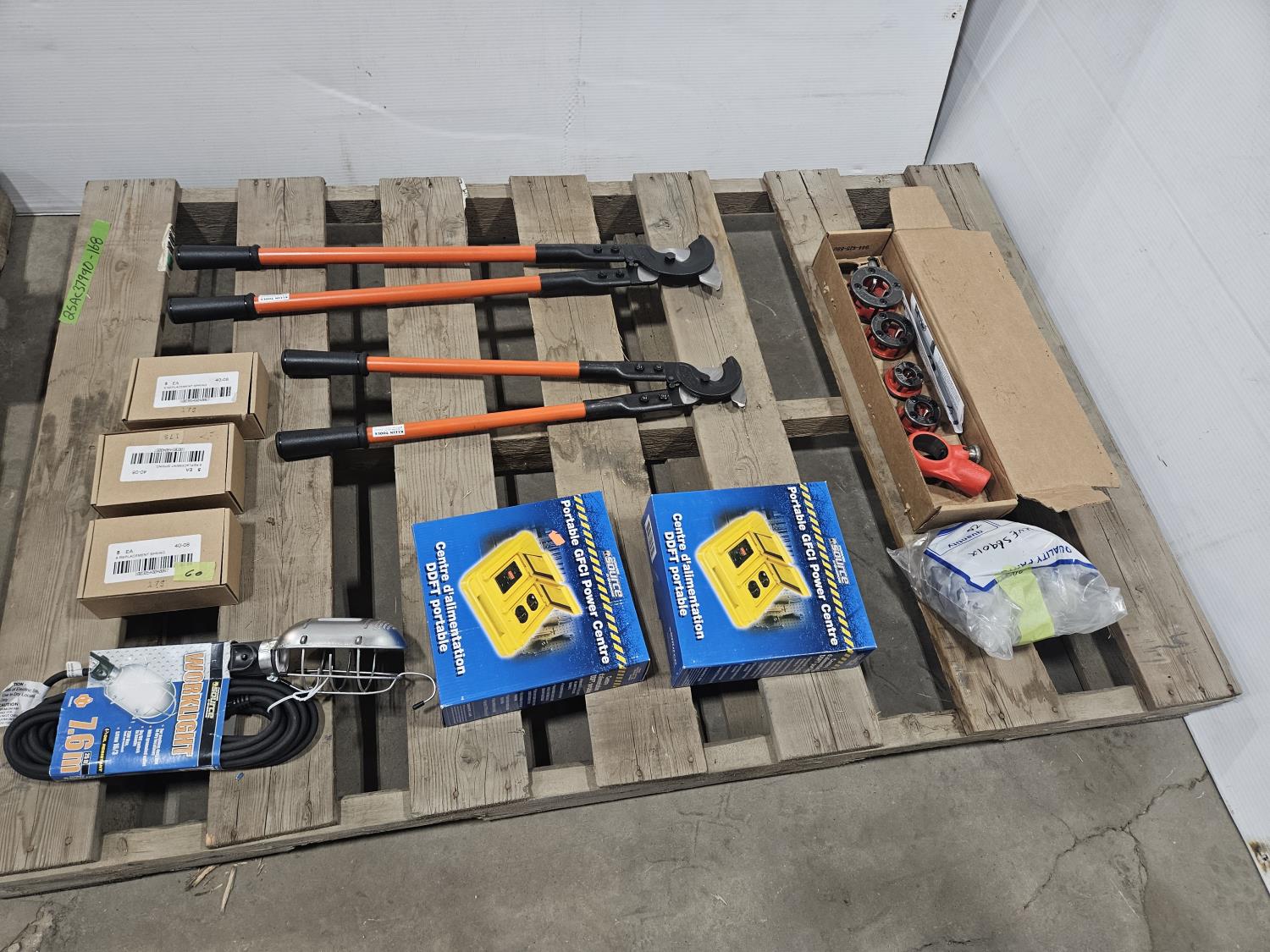 1653 Klein Cable Cutters, Rigid Pipe Threading Set, Trouble Light