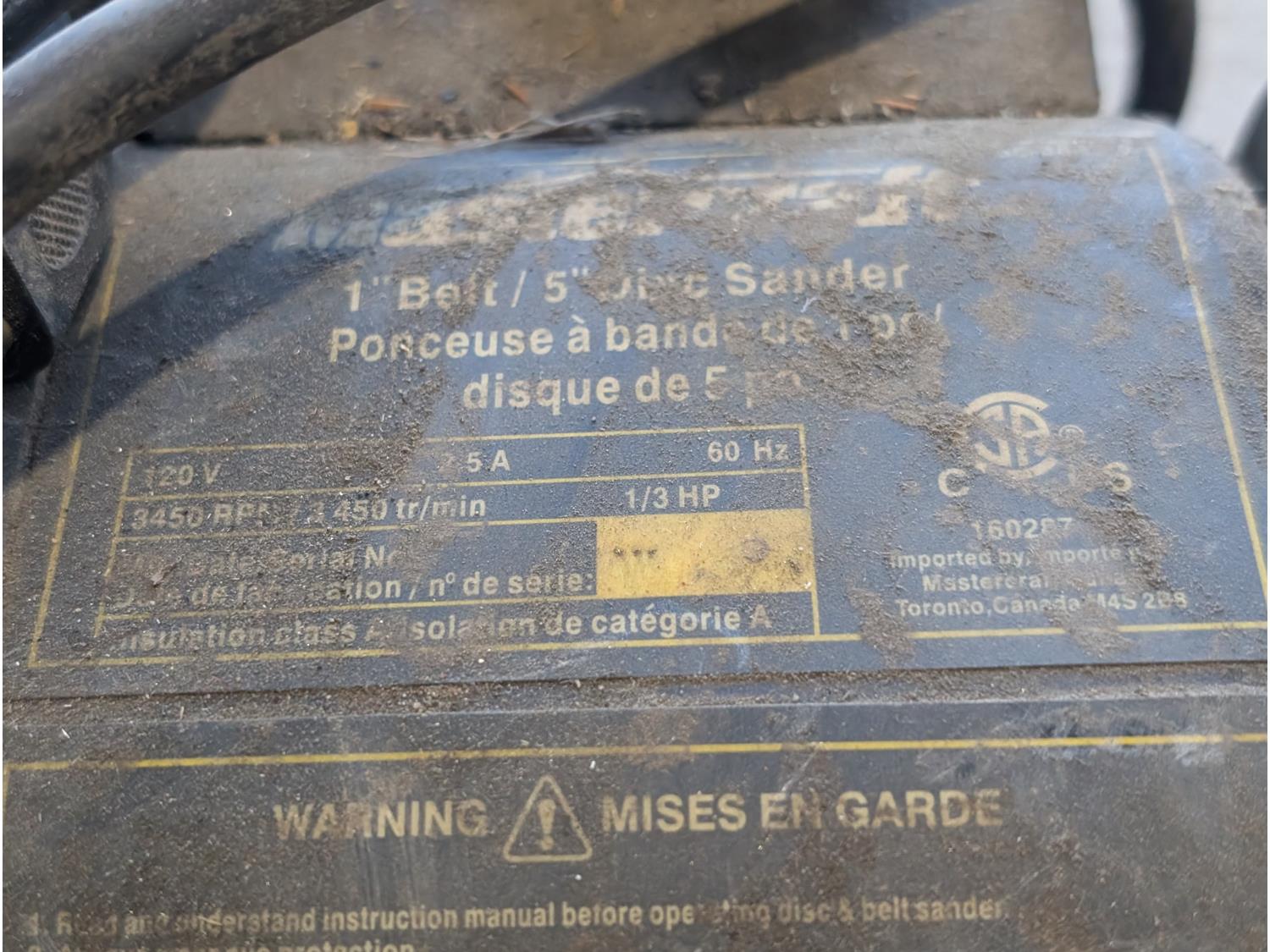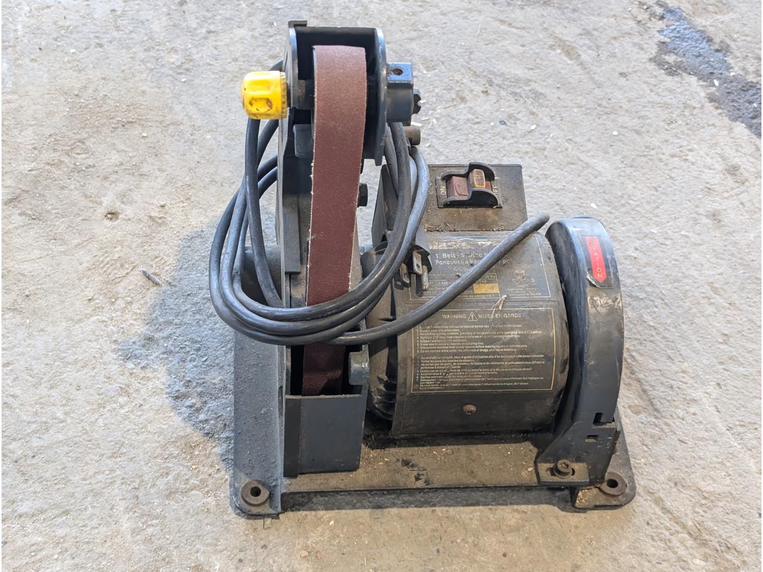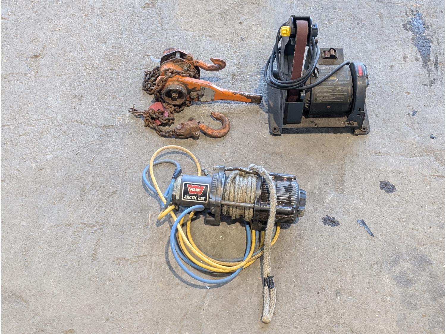 1498 Mastercraft 1 Inch Belt/5 Inch Disc Sander, Warn 12V Winch and Chain Hoist