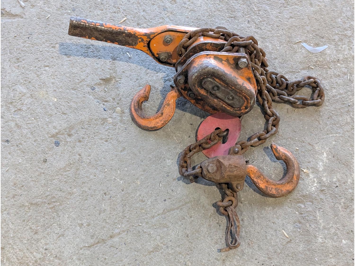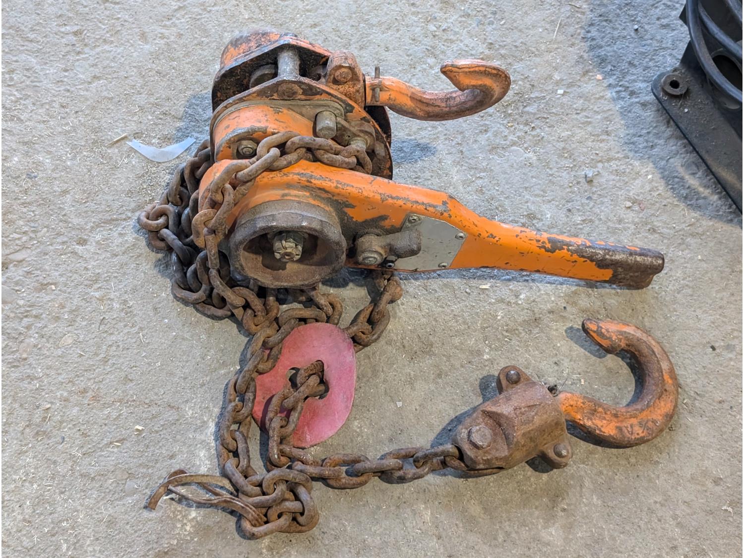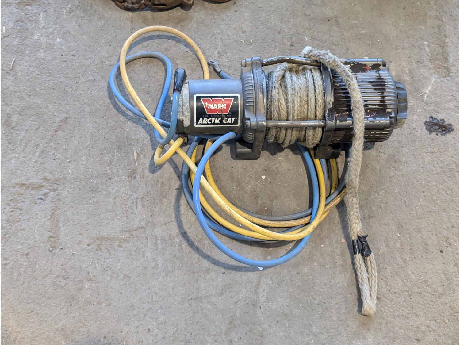 1498 Mastercraft 1 Inch Belt/5 Inch Disc Sander, Warn 12V Winch and Chain Hoist