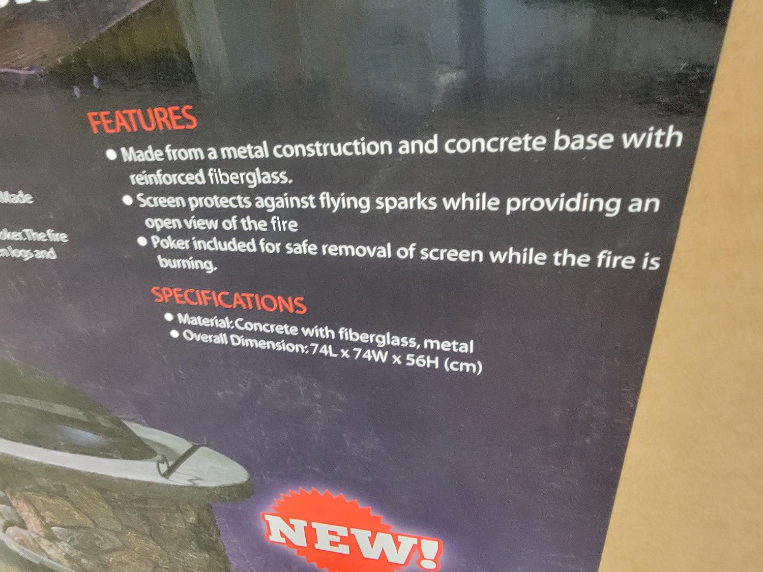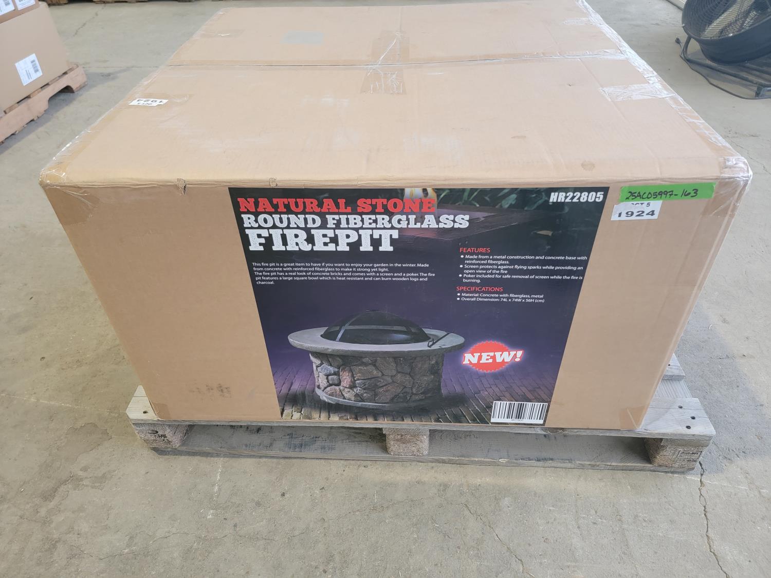 1244 Natural Stone Round Fiberglass Outdoor Firepit (Unused)