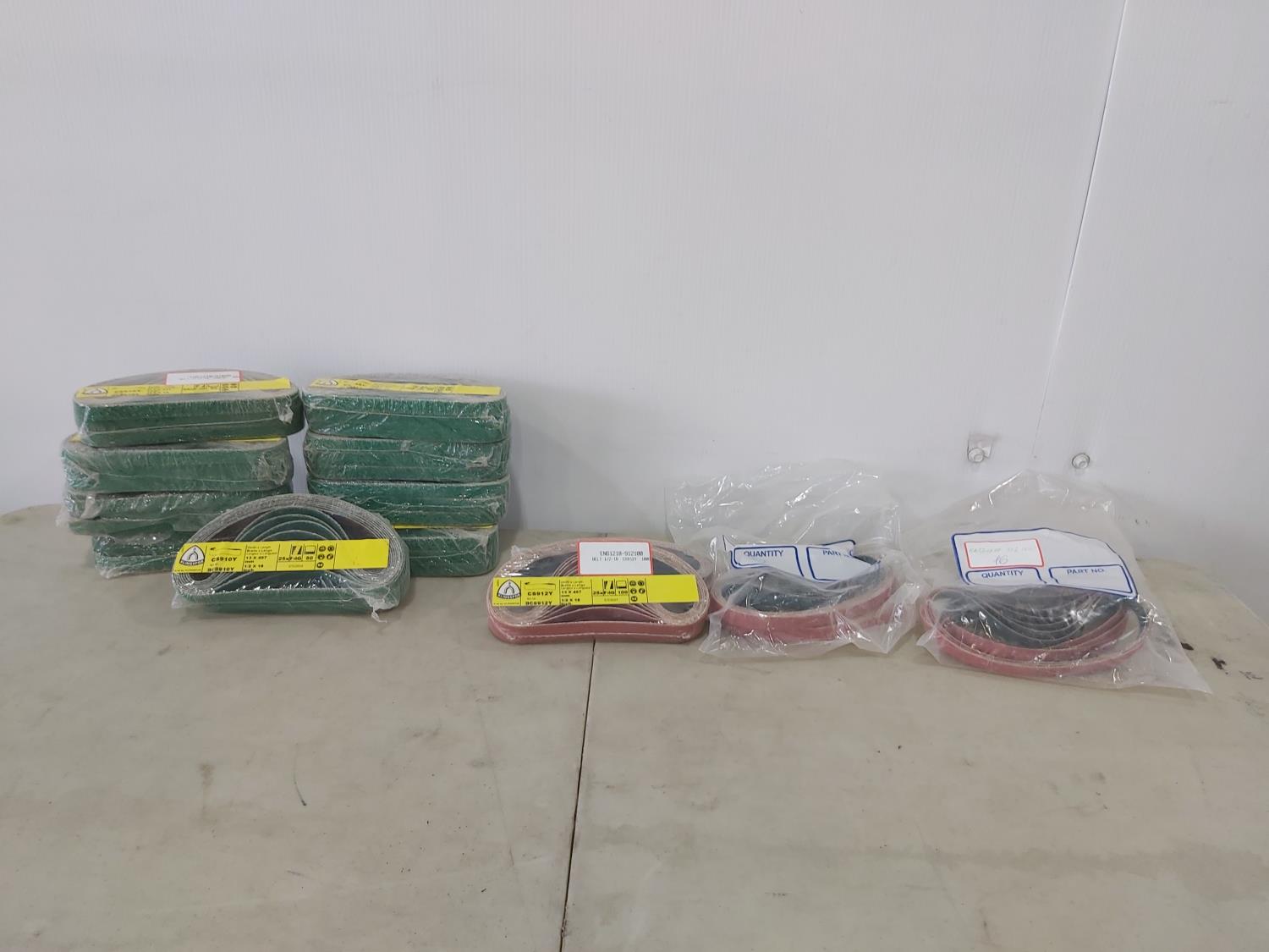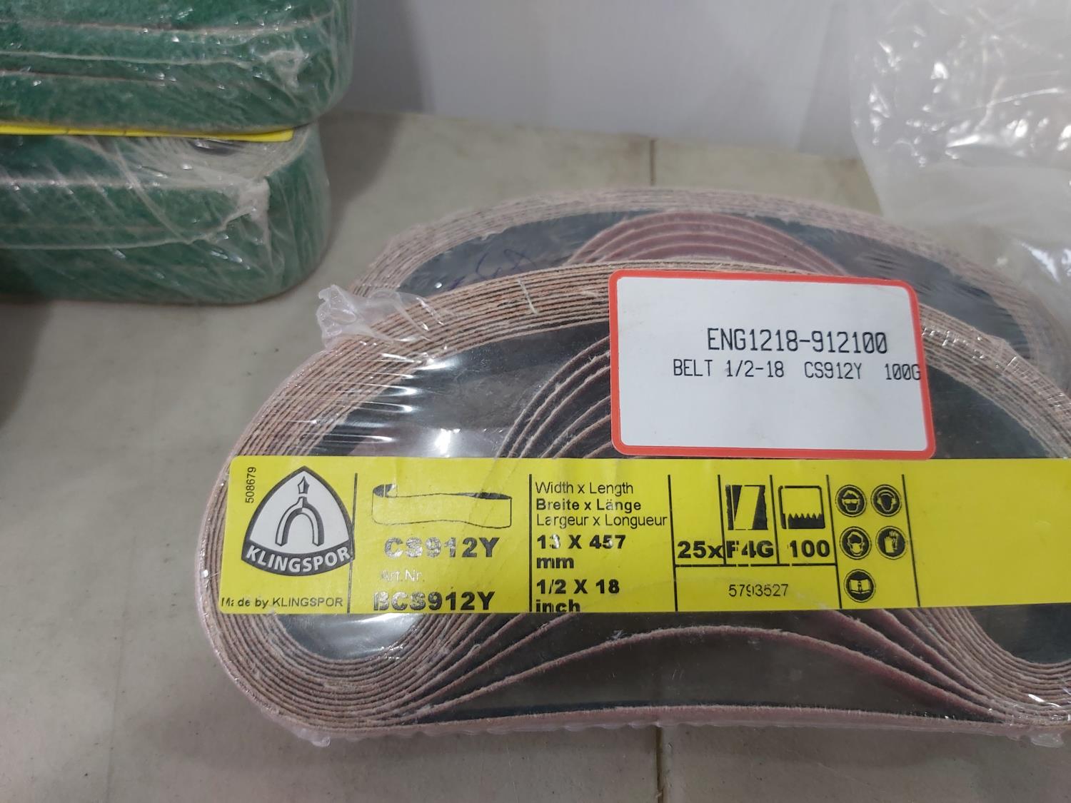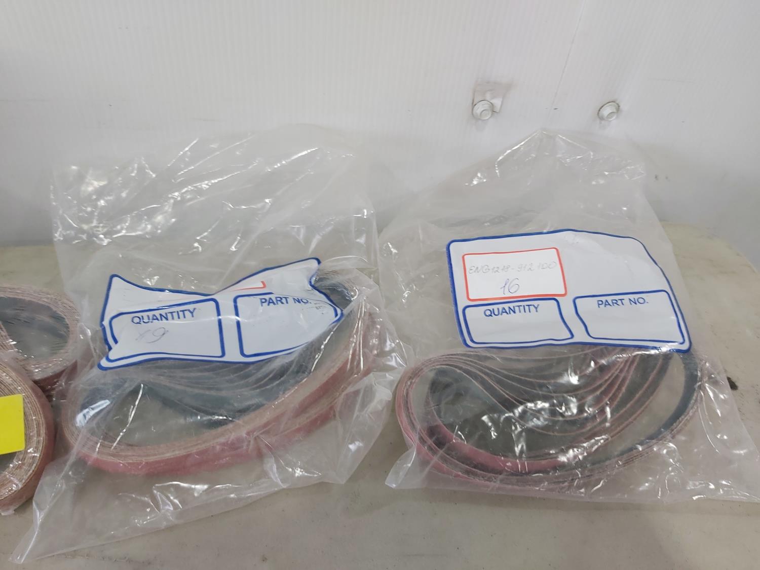 (225) 1/2 inch X 18 inch grade 50 sanding belts, (85) 1/2 inch x 18 inch grade 100 sanding belts