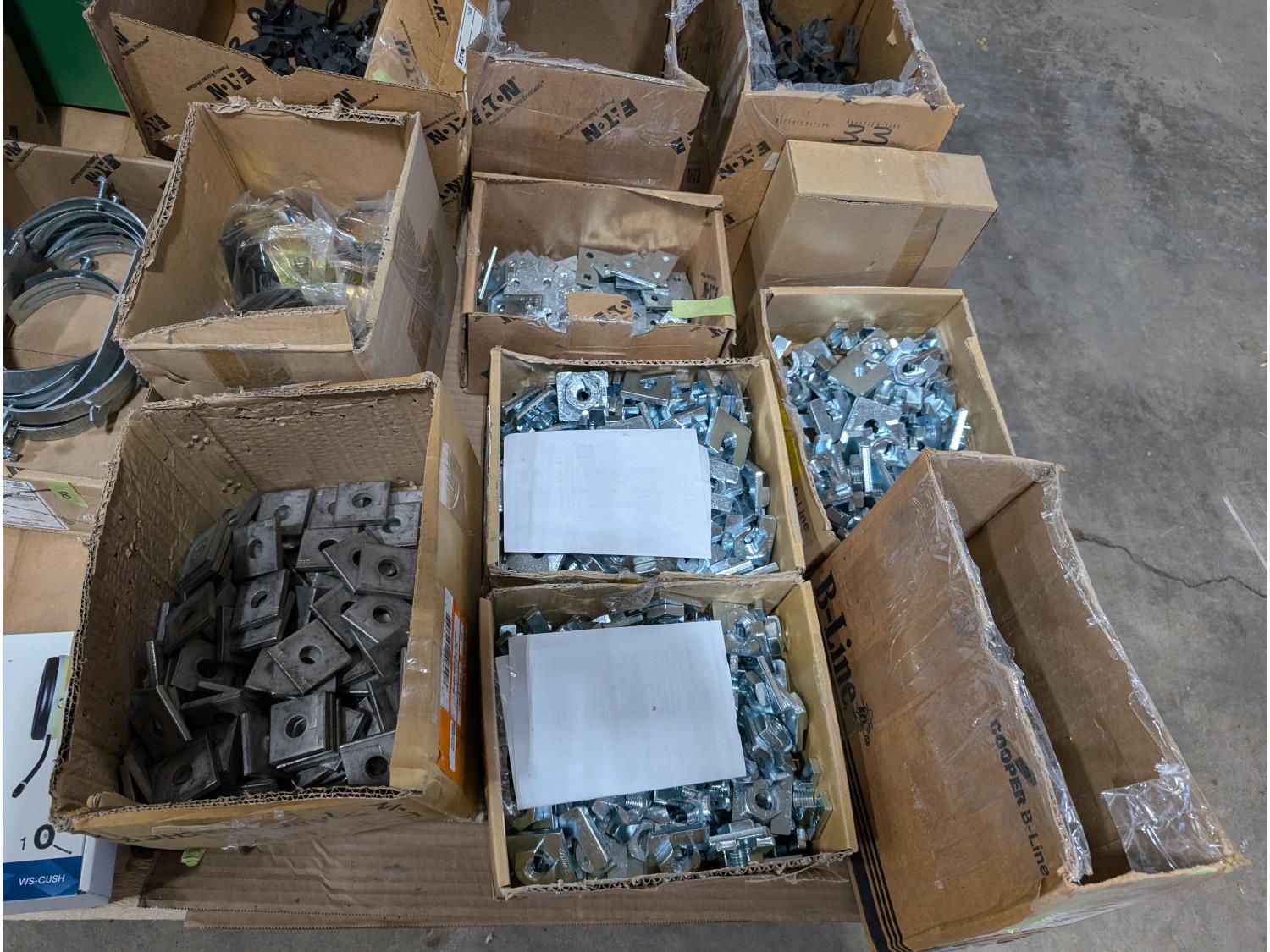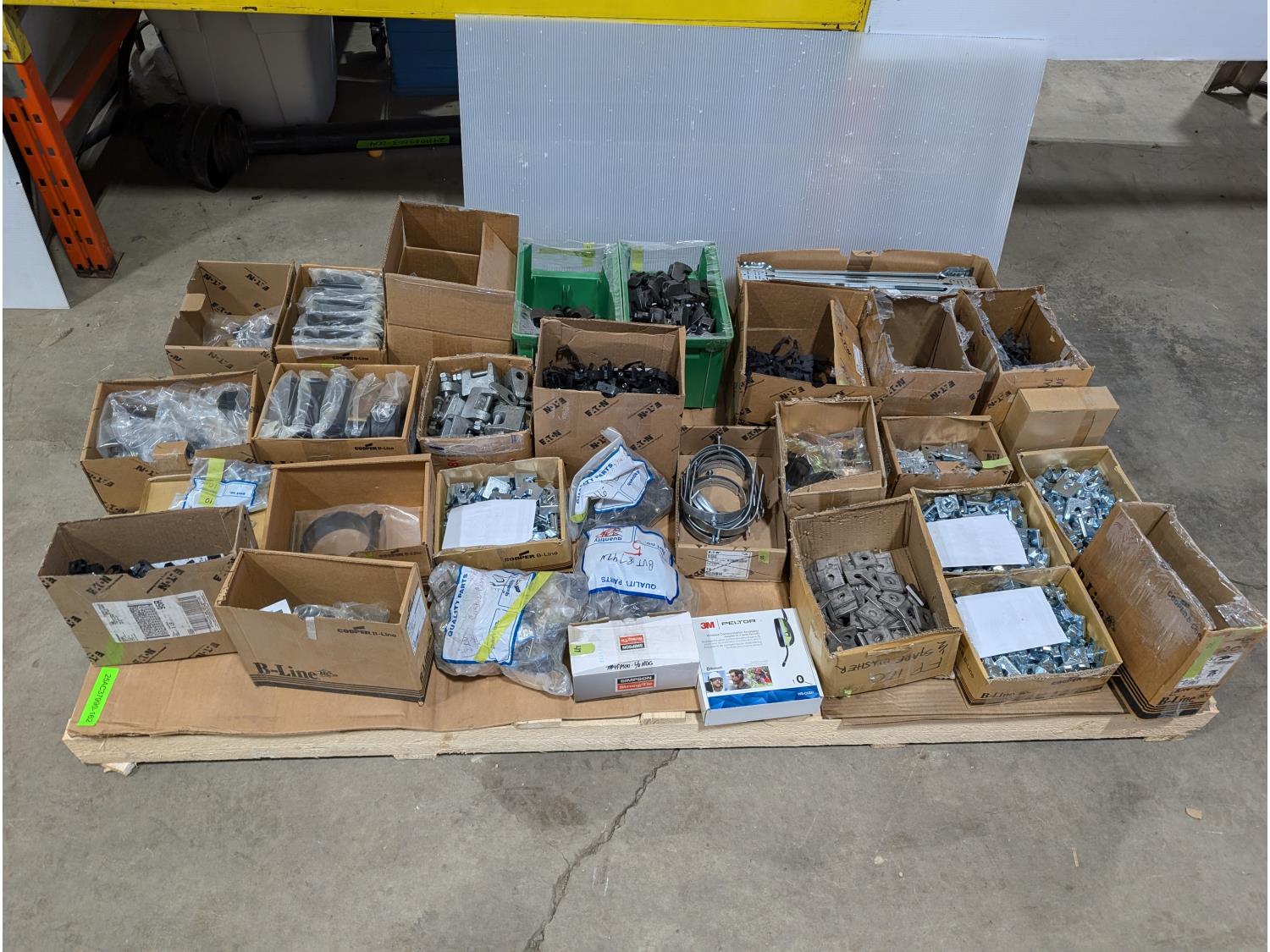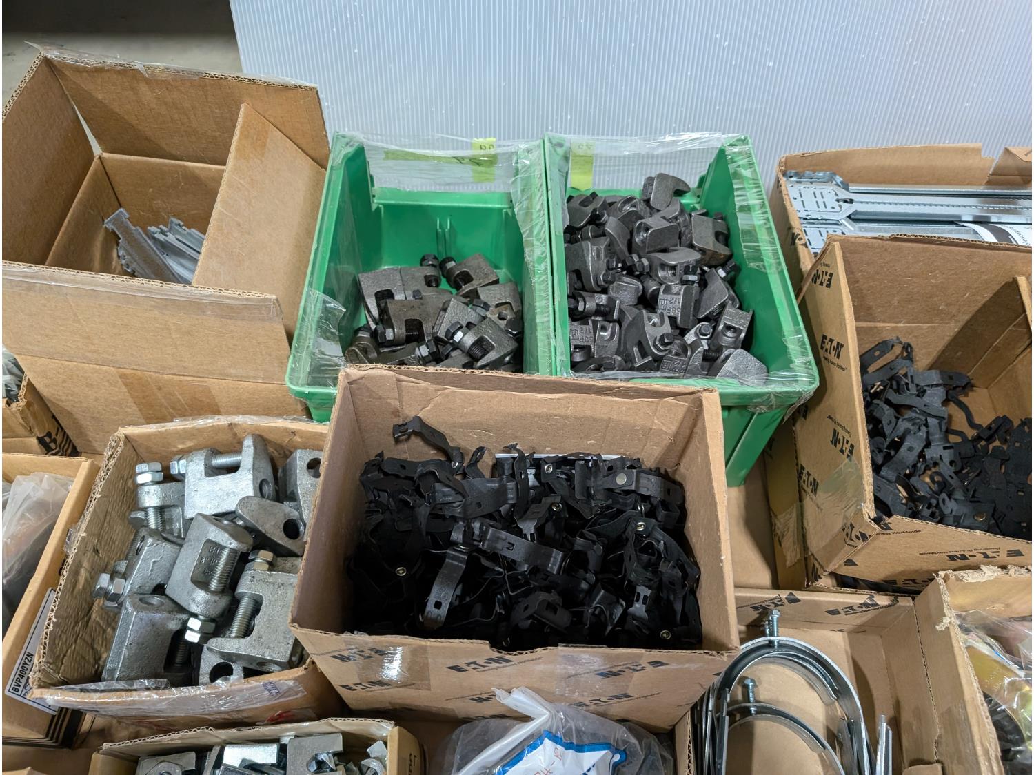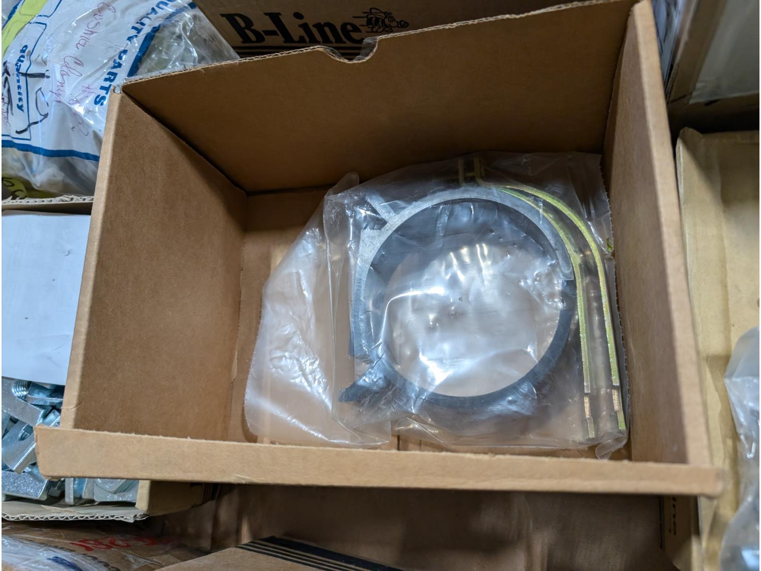 Vibra-clamps, threaded rod to bean hangers, top mount fluorescent light fixture hangers, cushion clamps, Peltor wireless communication accessory, telescoping brackets