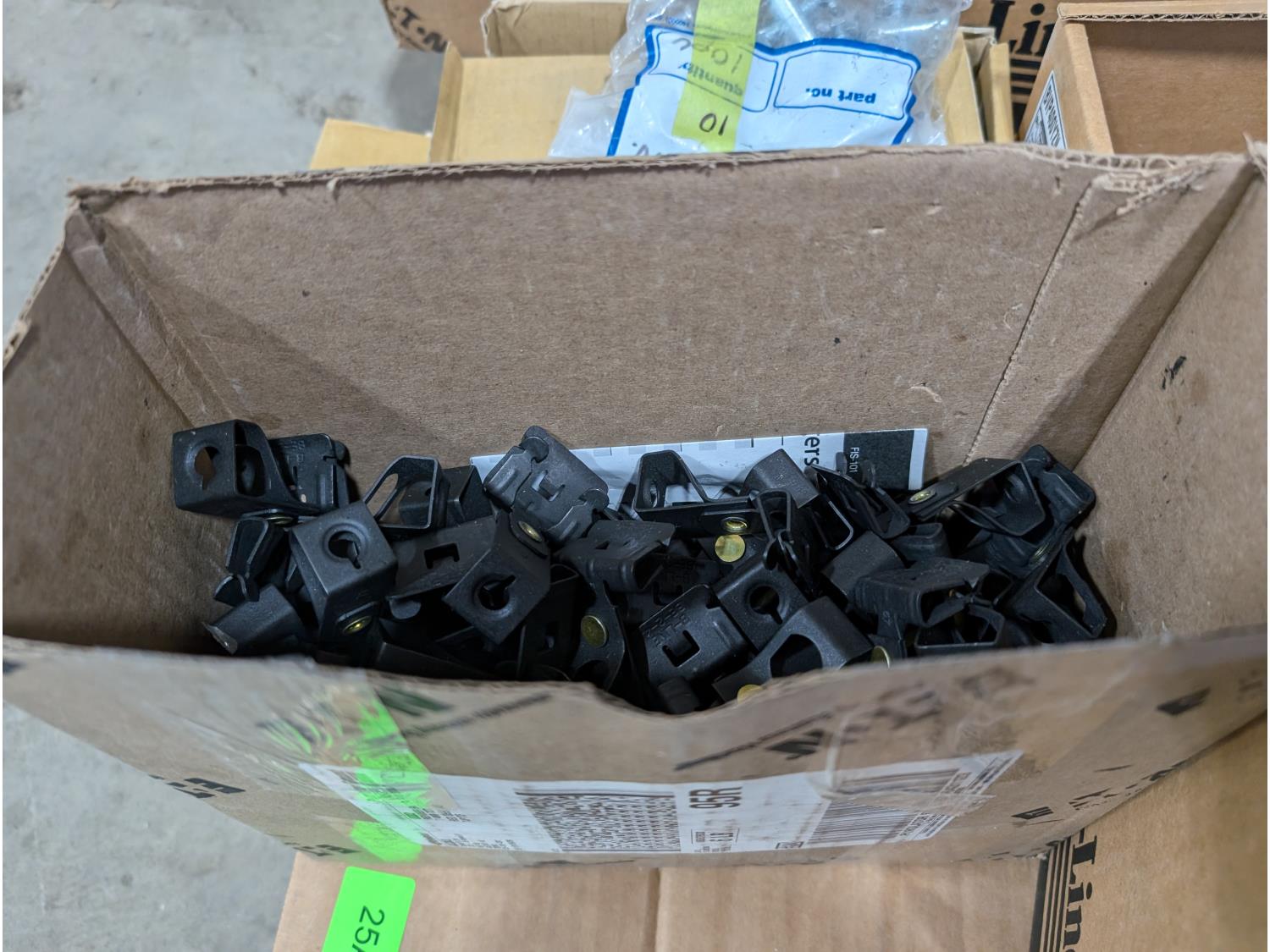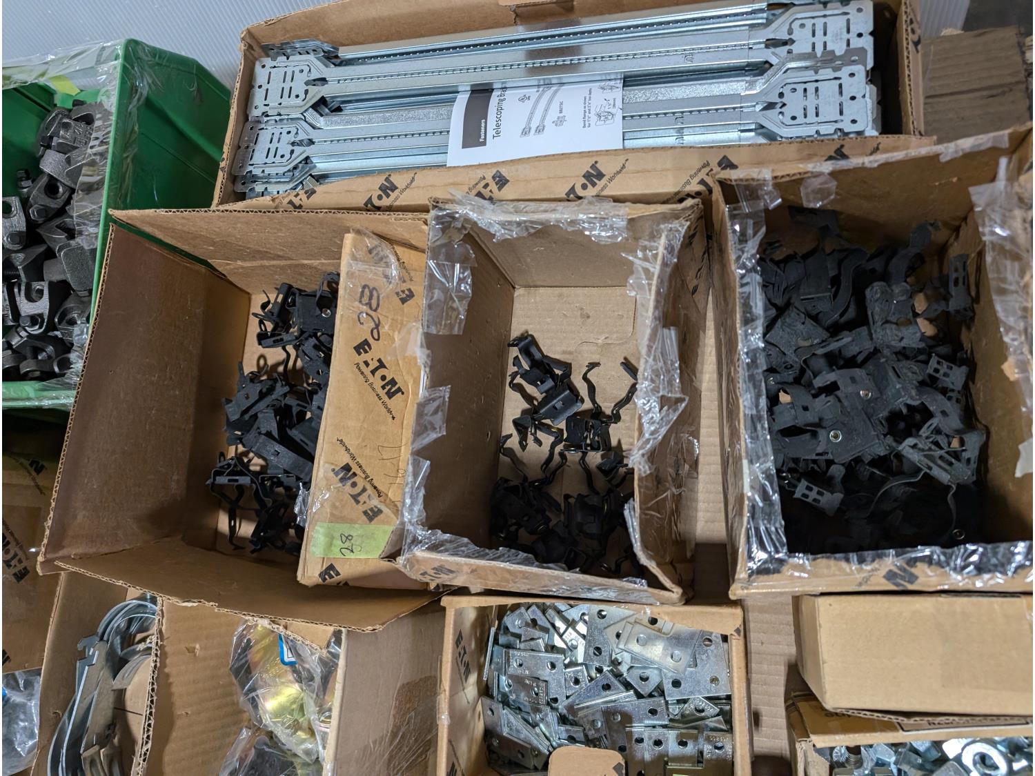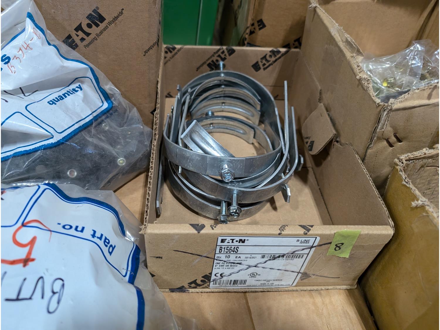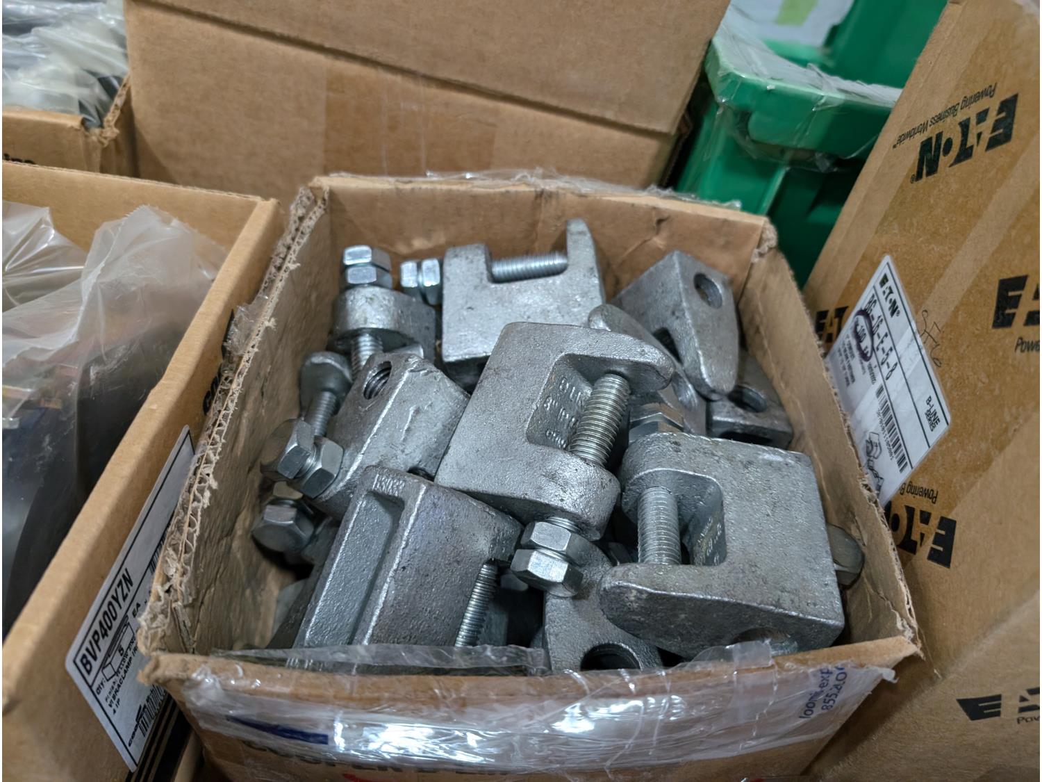 Vibra-clamps, threaded rod to bean hangers, top mount fluorescent light fixture hangers, cushion clamps, Peltor wireless communication accessory, telescoping brackets