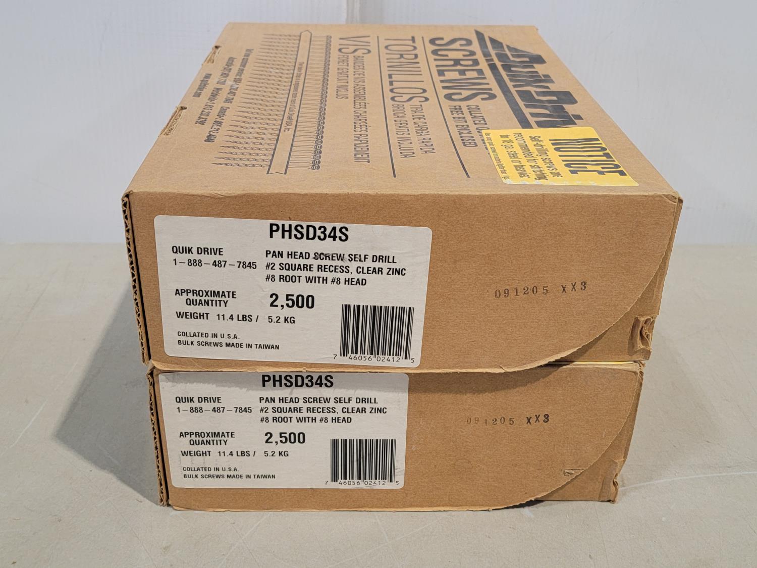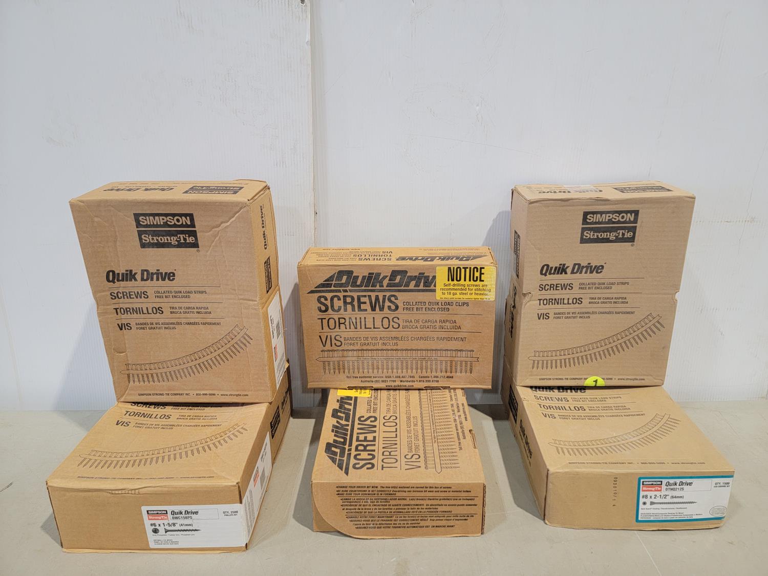 (2) Boxes of #6 x 1-5/8 inch, (2) boxes of self-drill pan head screws, (2) boxes of #8 x 2-1/2 inch