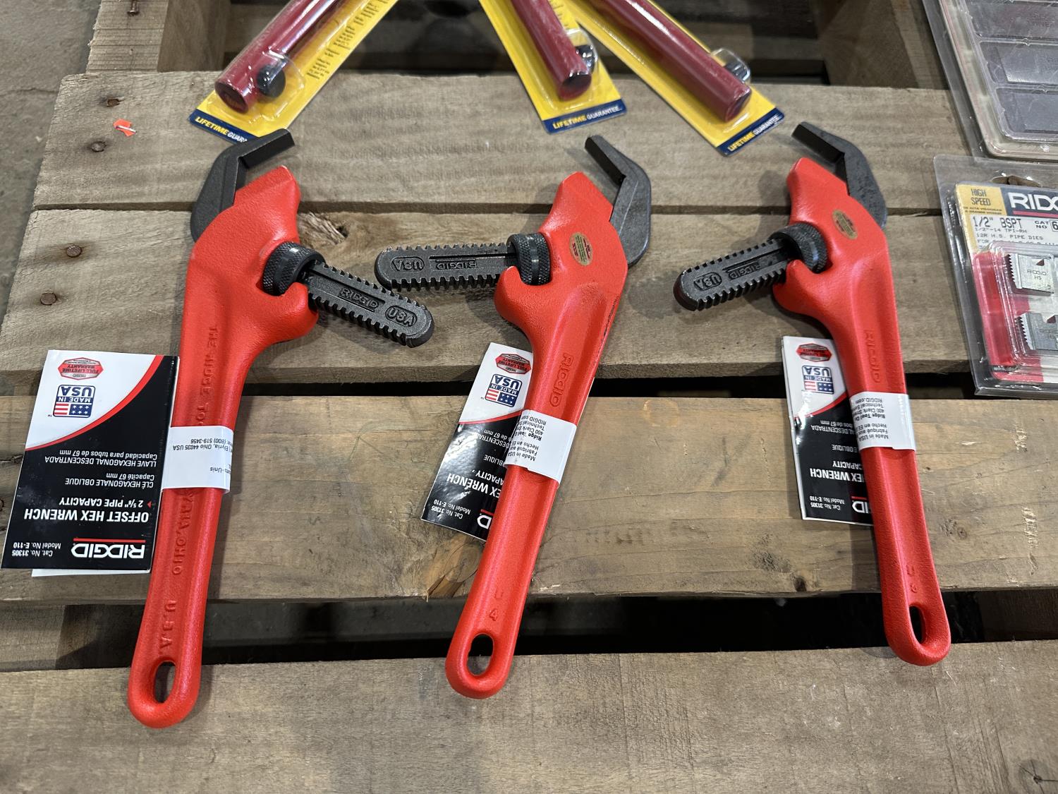 Offset hex wrenches, Strait-line crayon holders, pipe threader dies, pipe threader, inspection camera replacement imager, universal cam plate