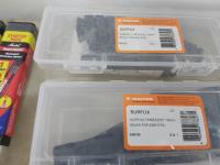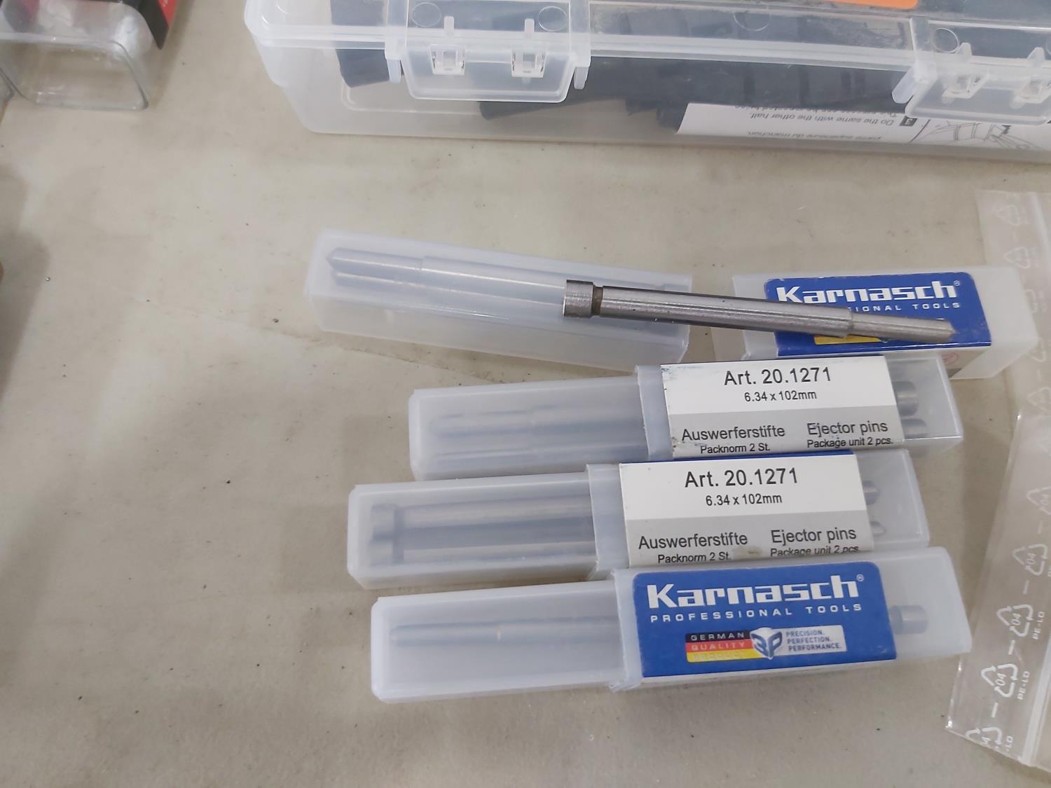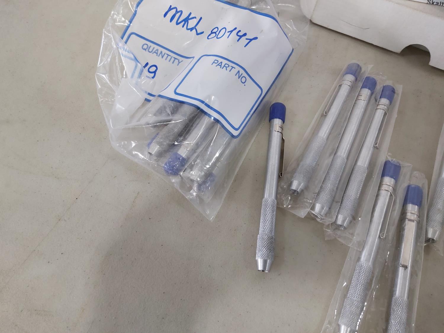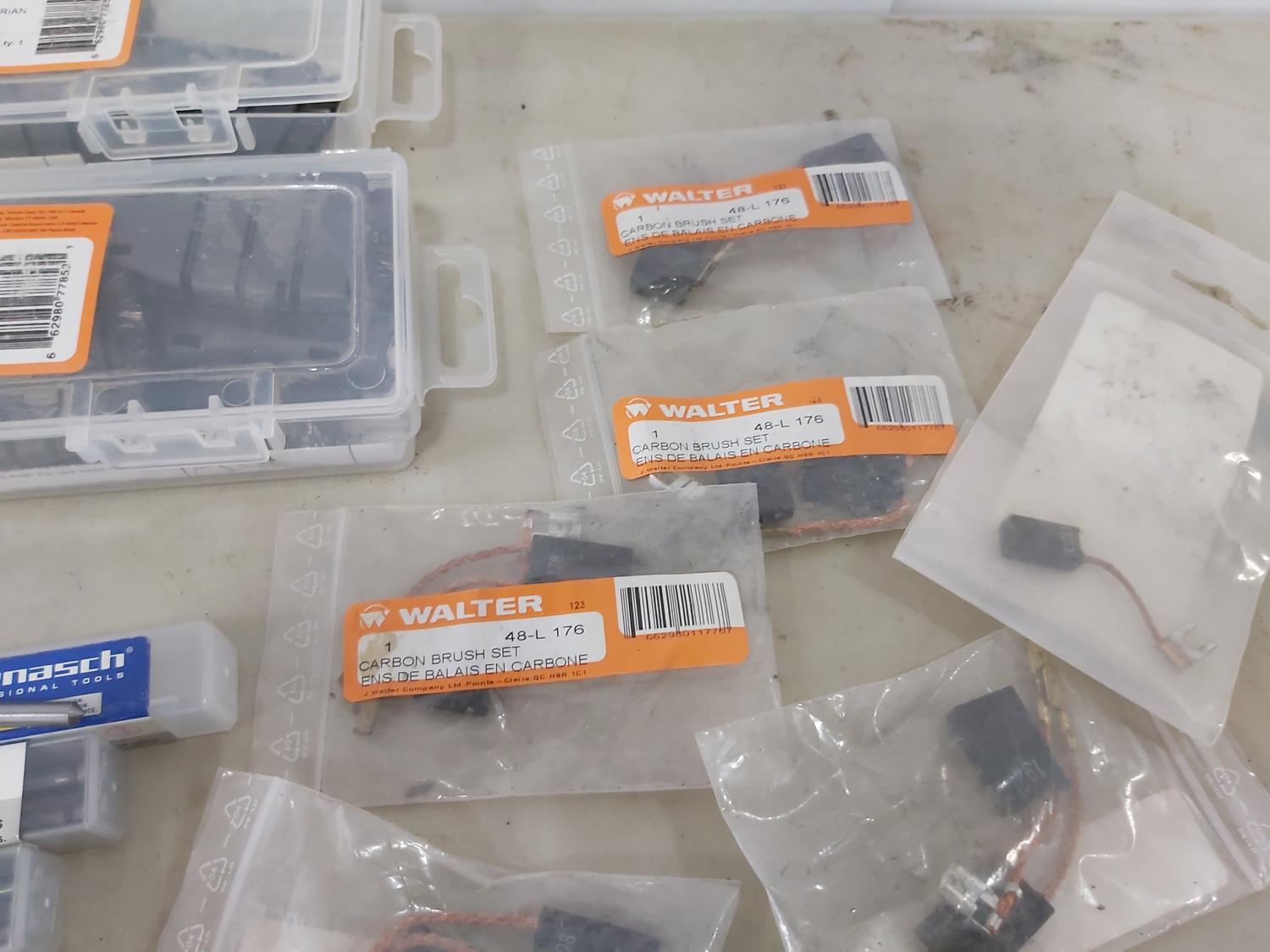 (19) chalk/soapstone holders, (4) Trademarker starter kits, (5) boring cutters, (4) ejector pins, (10) Surfox threaded train brushes, Ideal Stripmaster wire strippers, (6) carbon brush sets