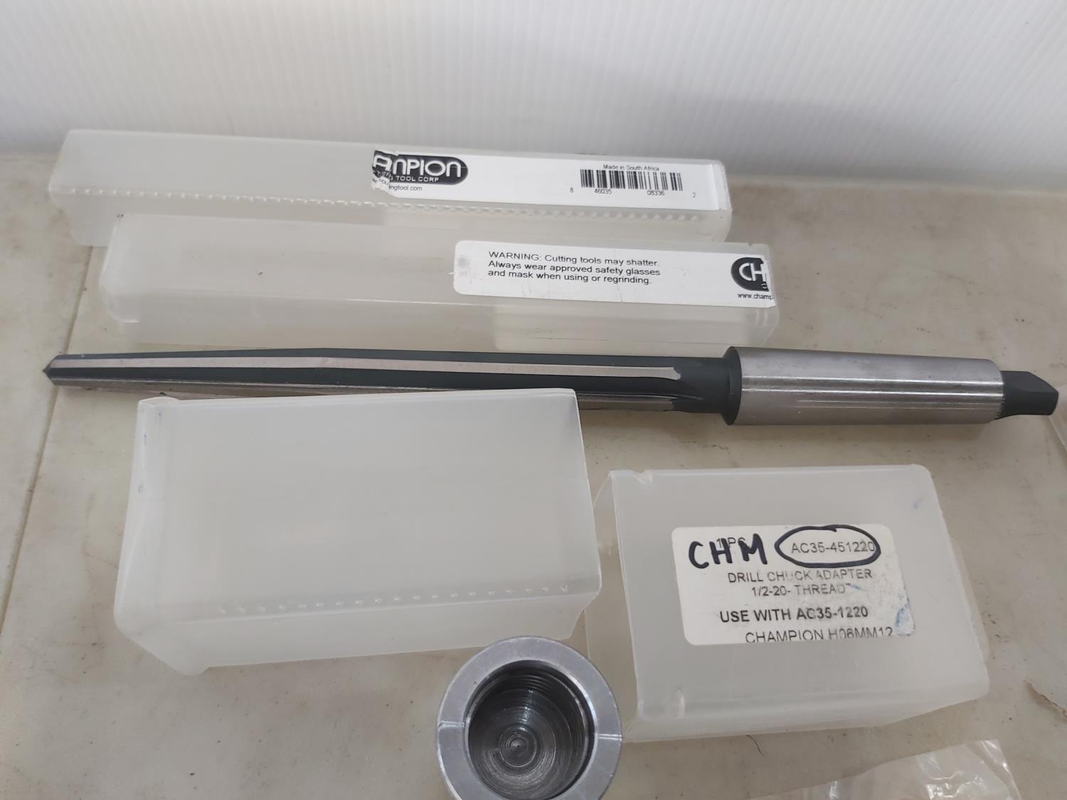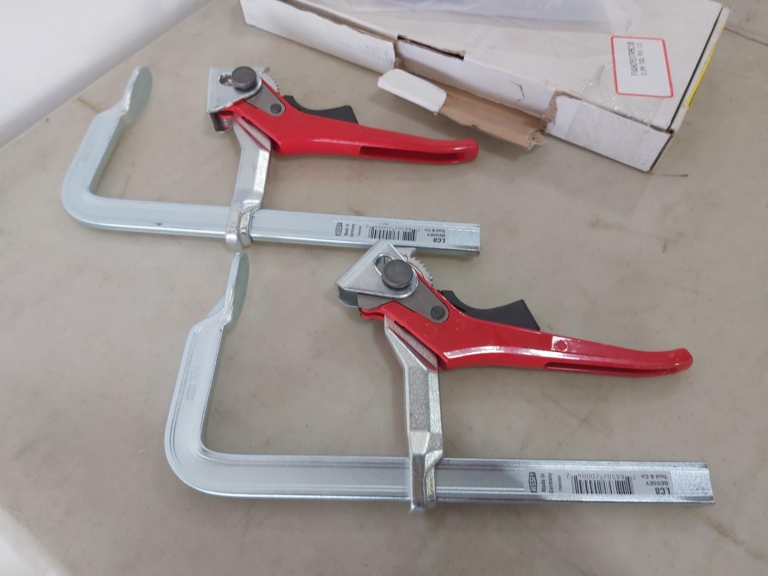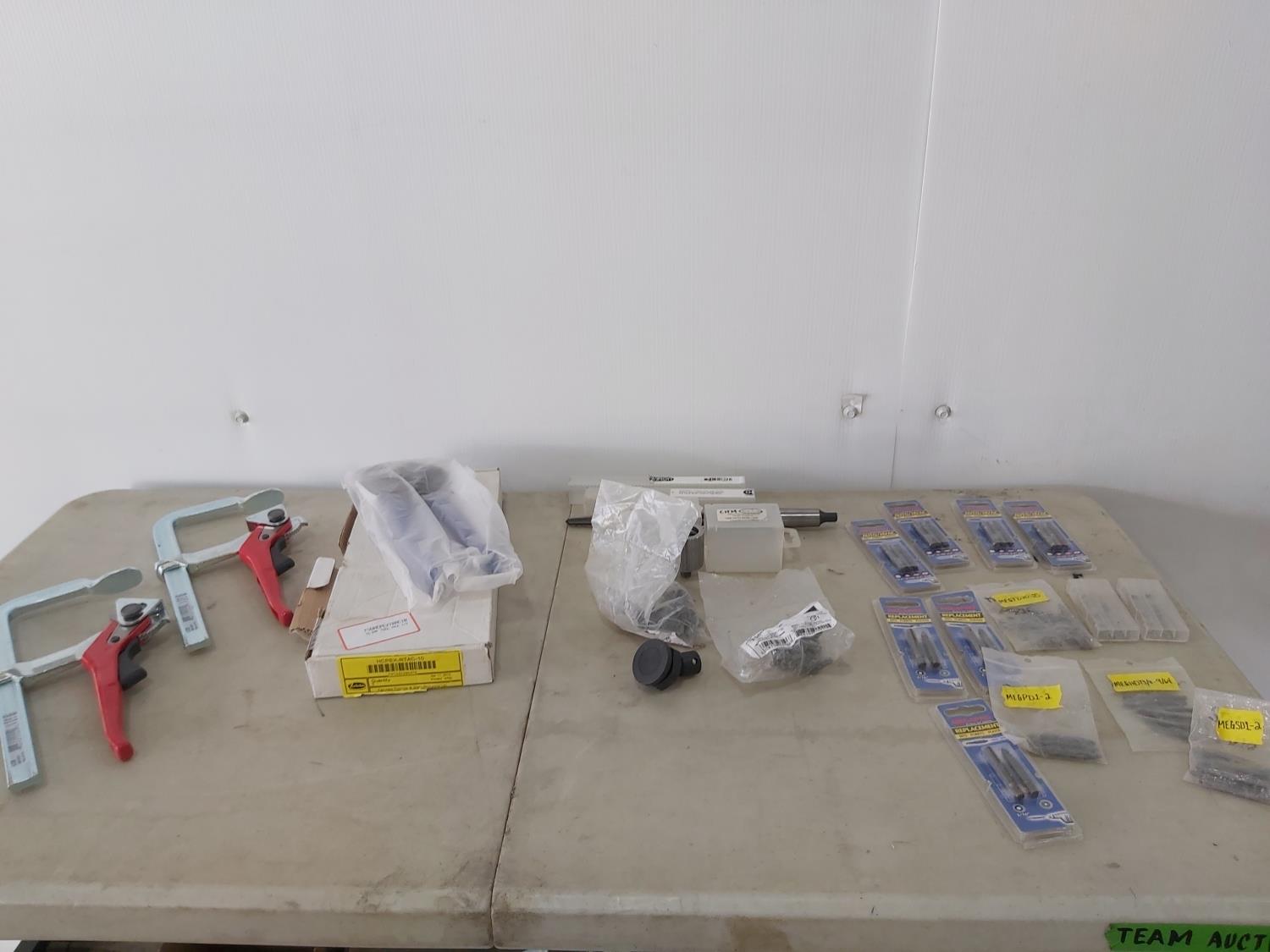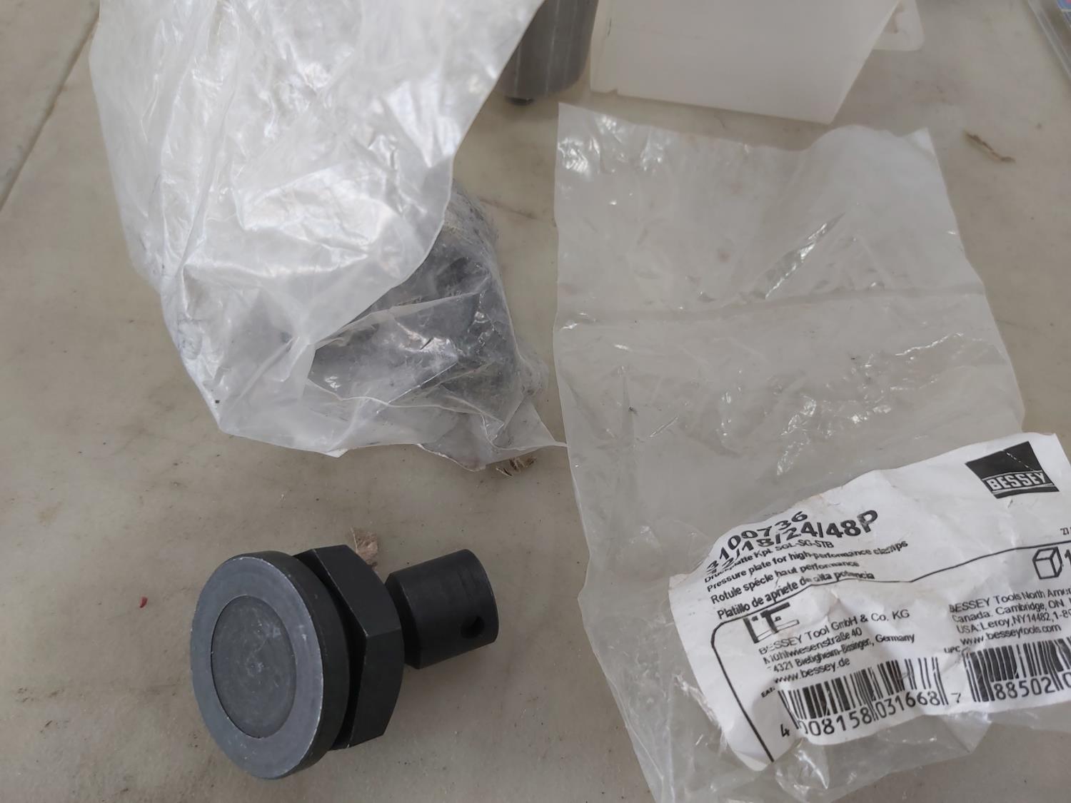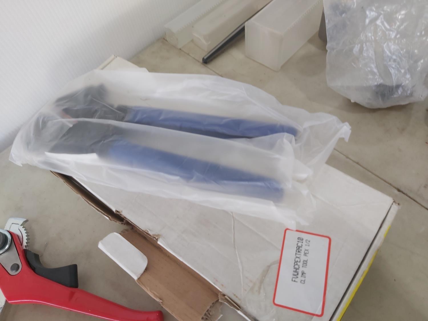 1/2 inch pex crimping tool, qty of drill bits, (3) pressure plates, (2) 6 inch Bessey ratcheting clamps