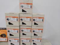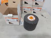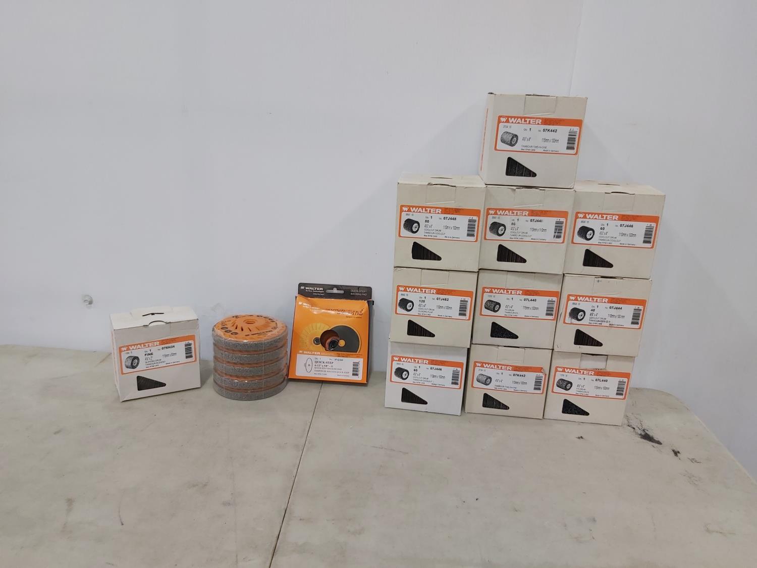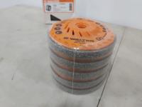 (10) 4-1/2 inch x 4 inch coolcut drum discs, 4-1/2 inch quickstep backing pads, 4-1/2 inch x 2 inch blendex drum discs, (5) 4-1/2 inch x 5-/" stainless steel polishing discs