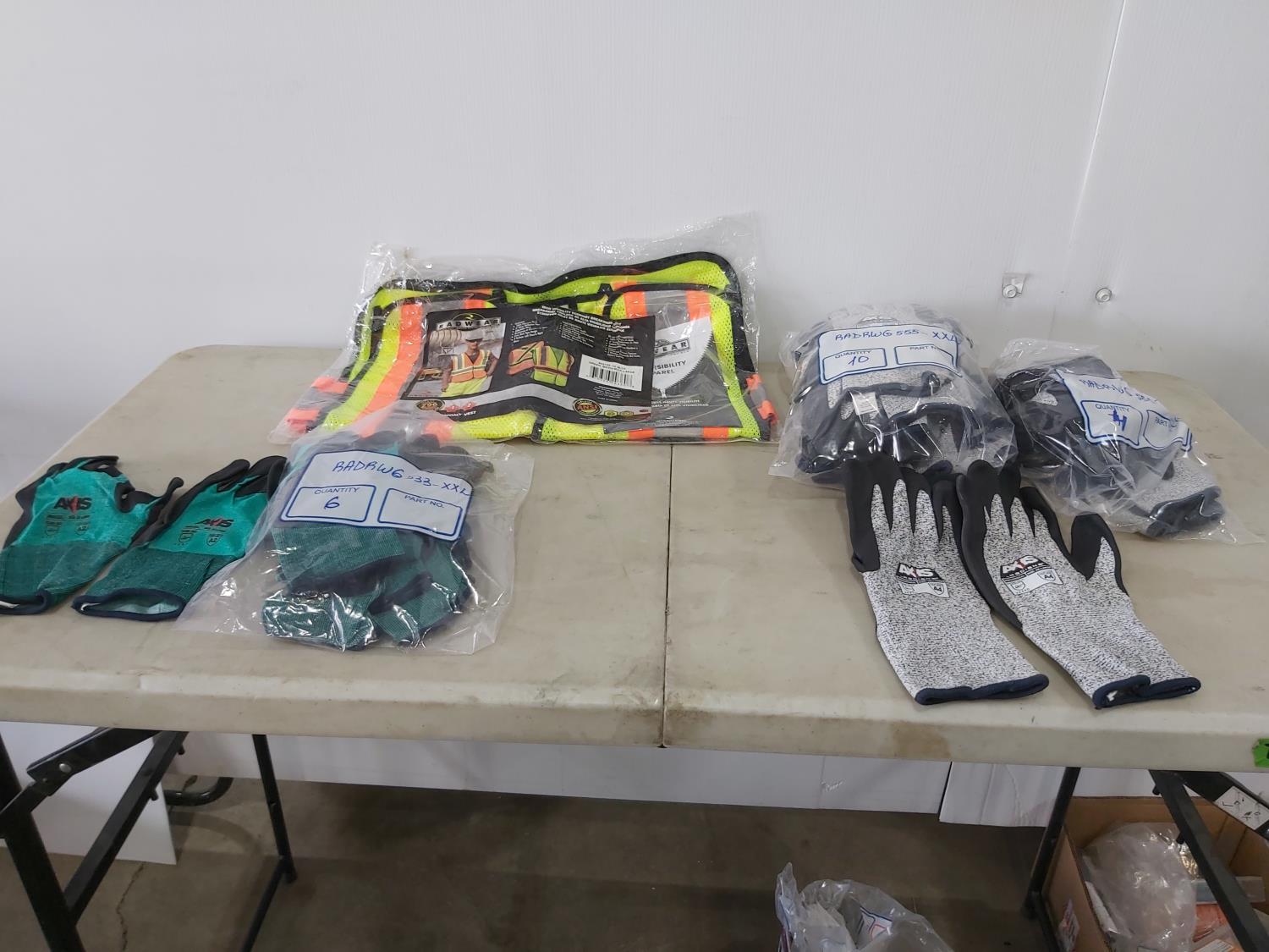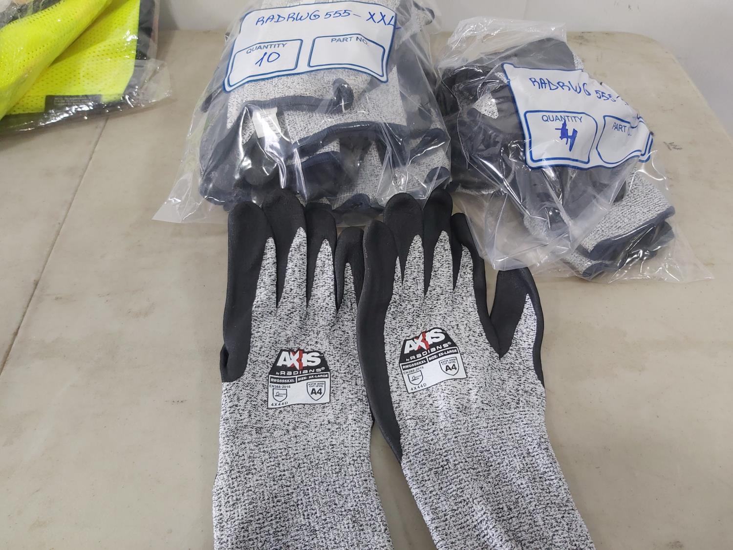 Radwear M/2XL safety vest, (20) pairs of Axis gloves