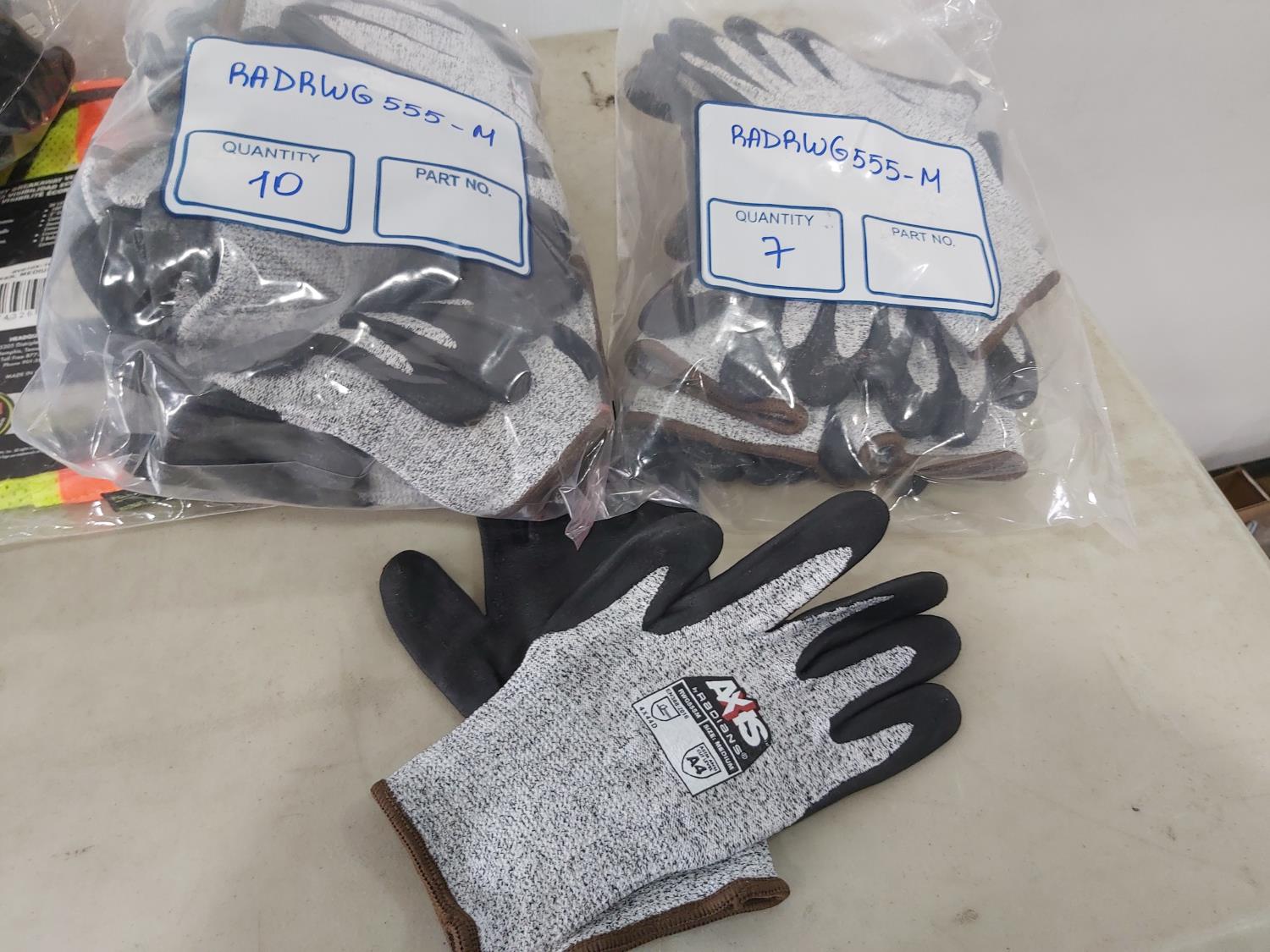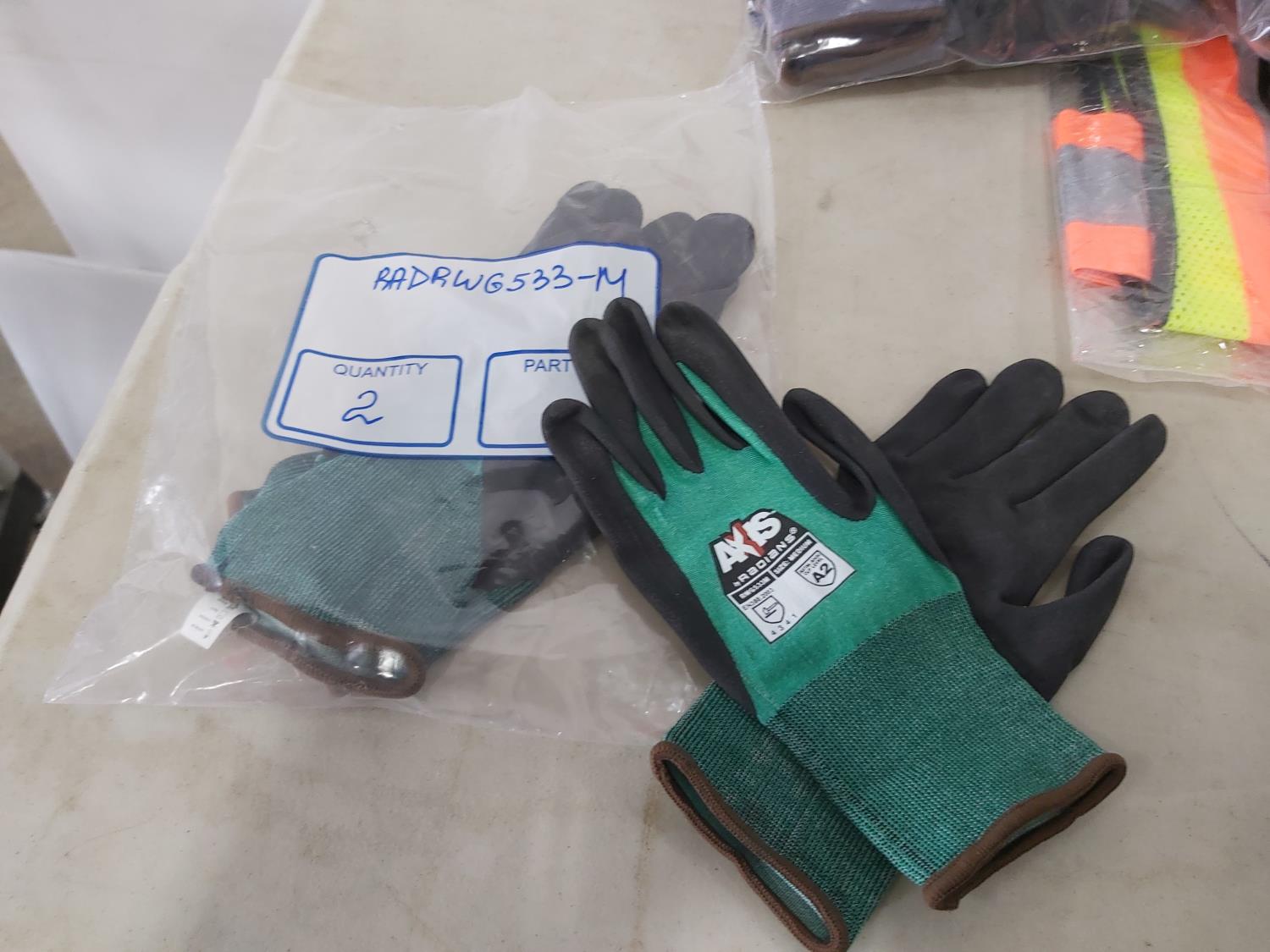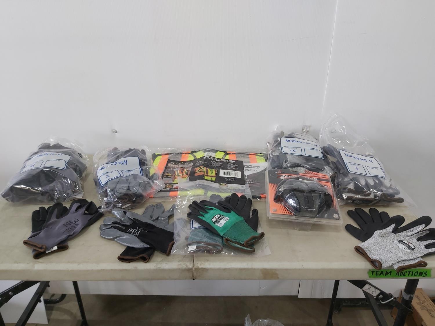 Radwear M/2XL safety vest, (37) pairs of work gloves - size medium, Terminator earmuffs