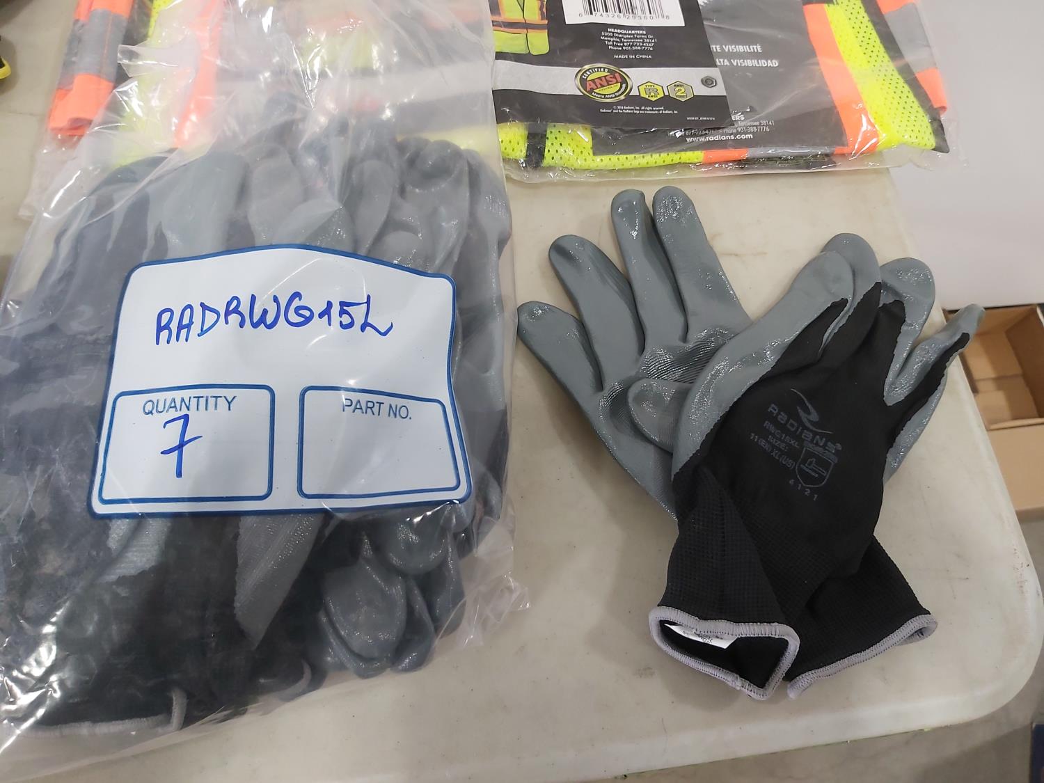 Radwear M/2XL safety vest, (34) pairs of work gloves