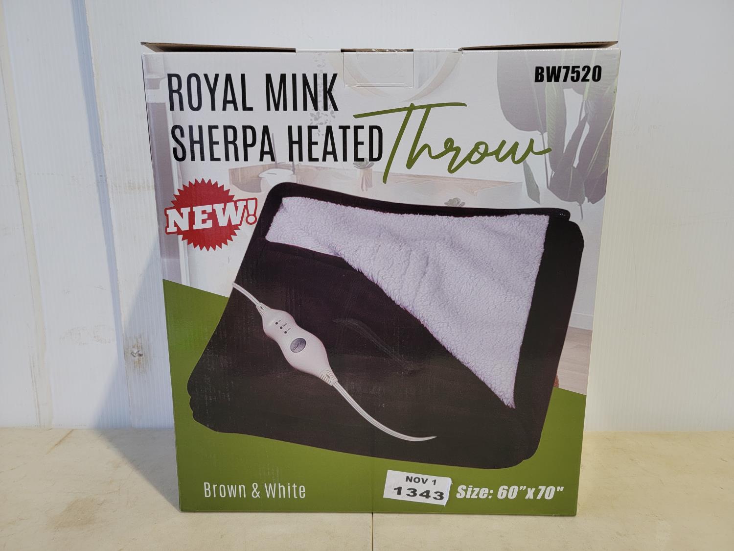 1747 Royal Mink Sherpa Heated Throw Blanket (Unused)
