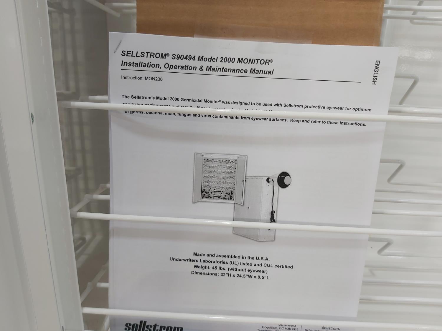 1007 Sellstrom Monitor 2000 Germicidal Cabinet