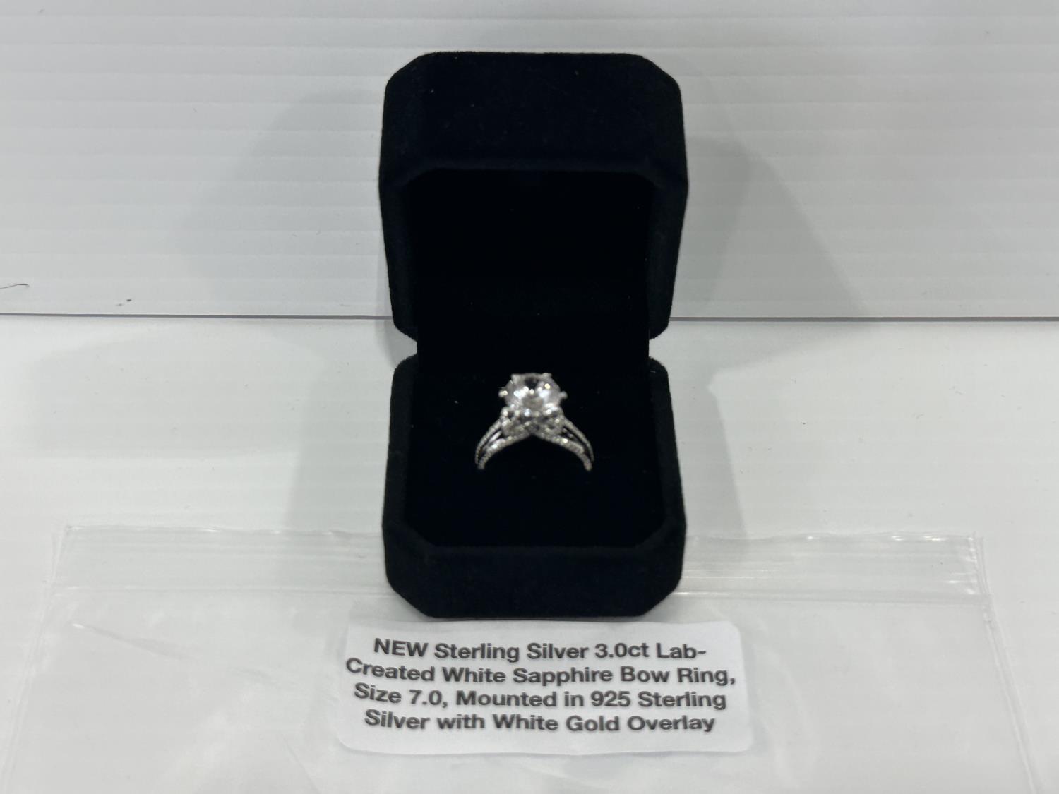 1960 Smartlife Sterling Silver 3.0 Ct Lab-Created White Sapphire Bow Ring (Unused)