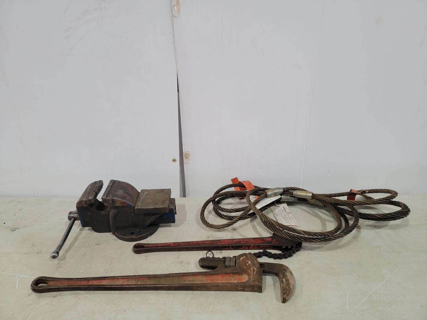 1363 Vise, 3 Inch Pipe Fitting Tool, 36 Inch Pipe Wrench, (3) Wire Rope Slings