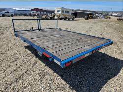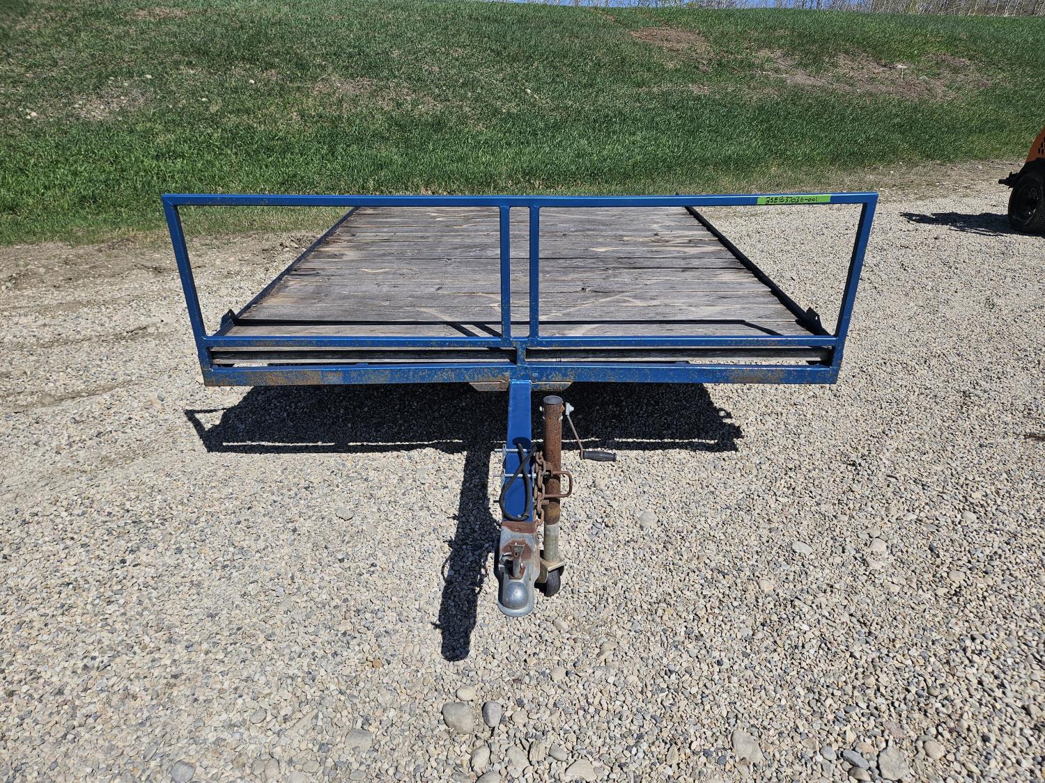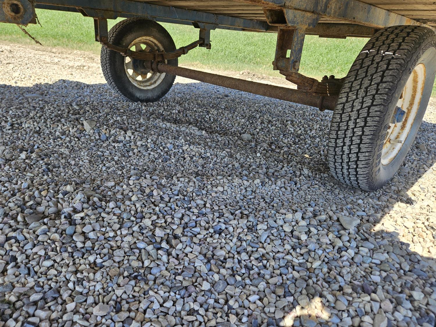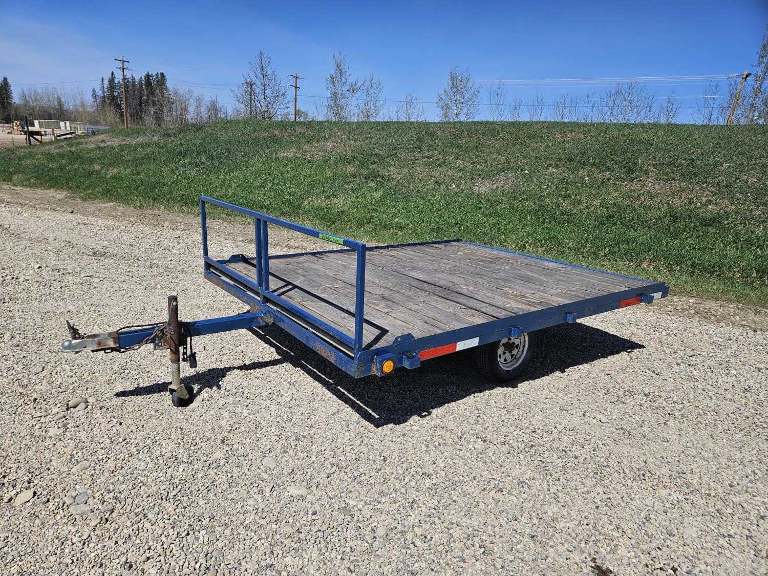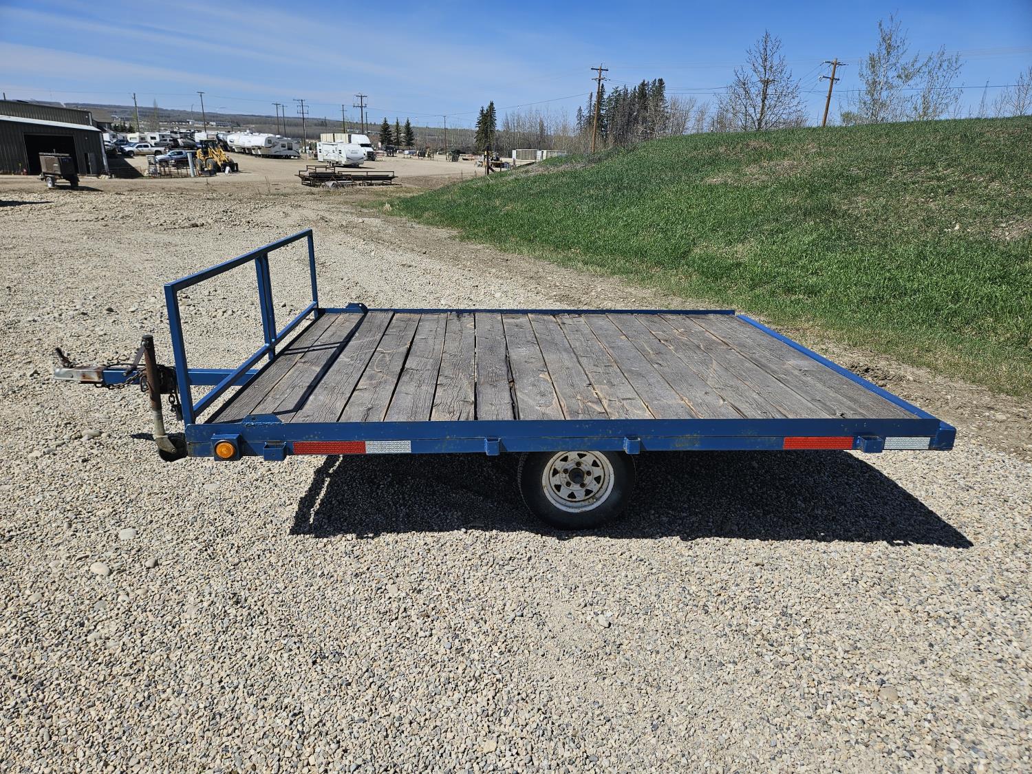 90 inch wide deck, wood deck, spring suspension, ball hitch, stake pockets, 155R12 tires