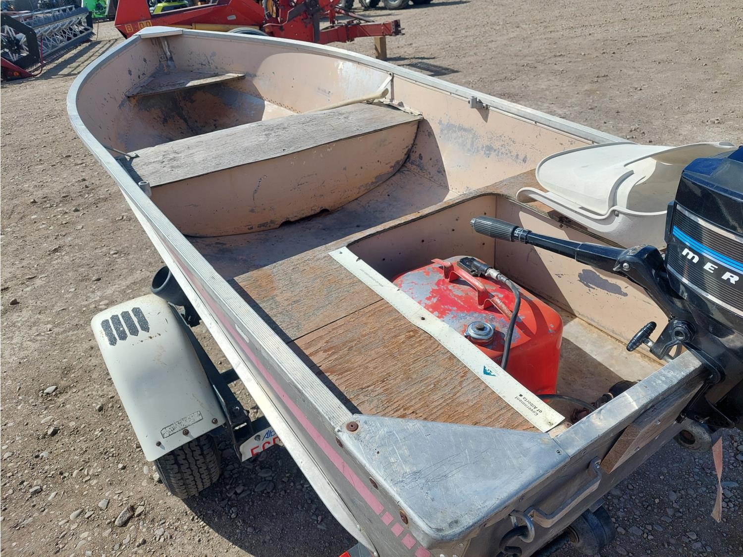 7.5 HP Mercury Mer75, 2 cylinder, 4 stroke engine, 175/80R13 tires, 2 inch ball hitch, includes extra prop