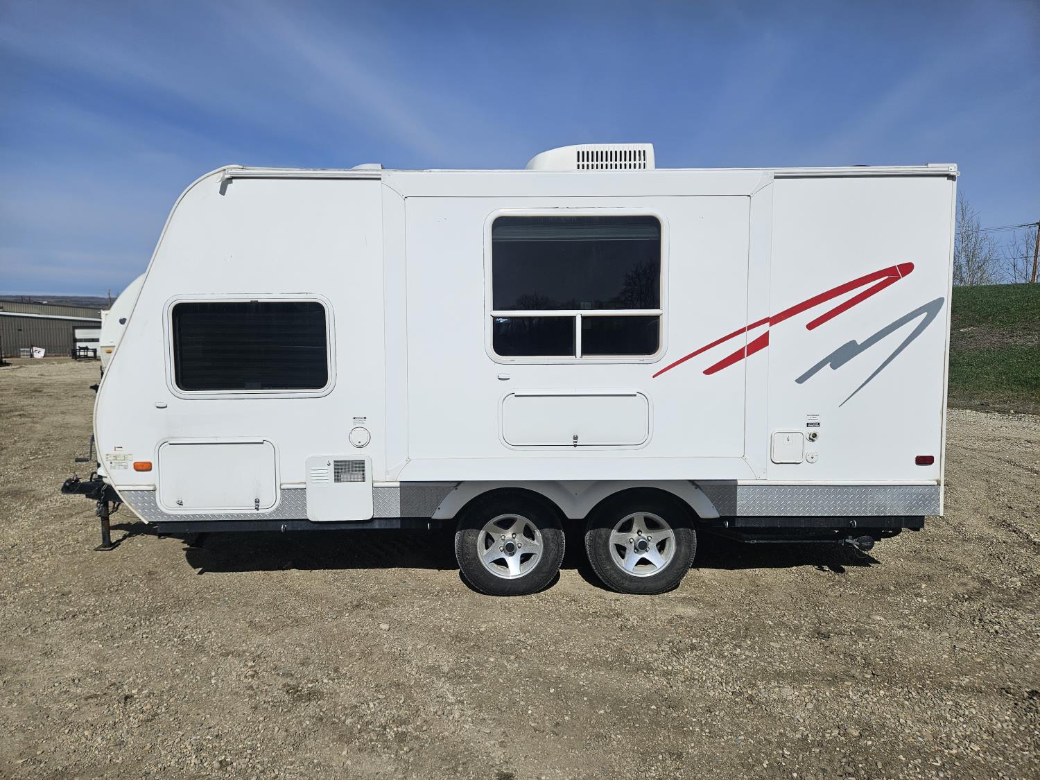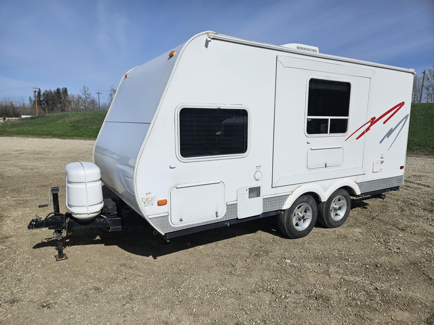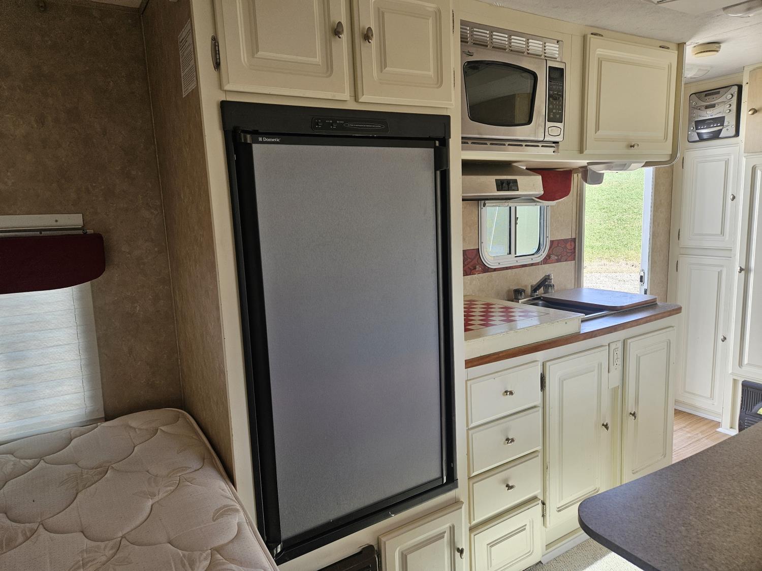 stove, fridge, microwave, full bath, A/C, 1 slide, manual awning, spring suspension, electric brakes, stereo, , 205/75R14 tires