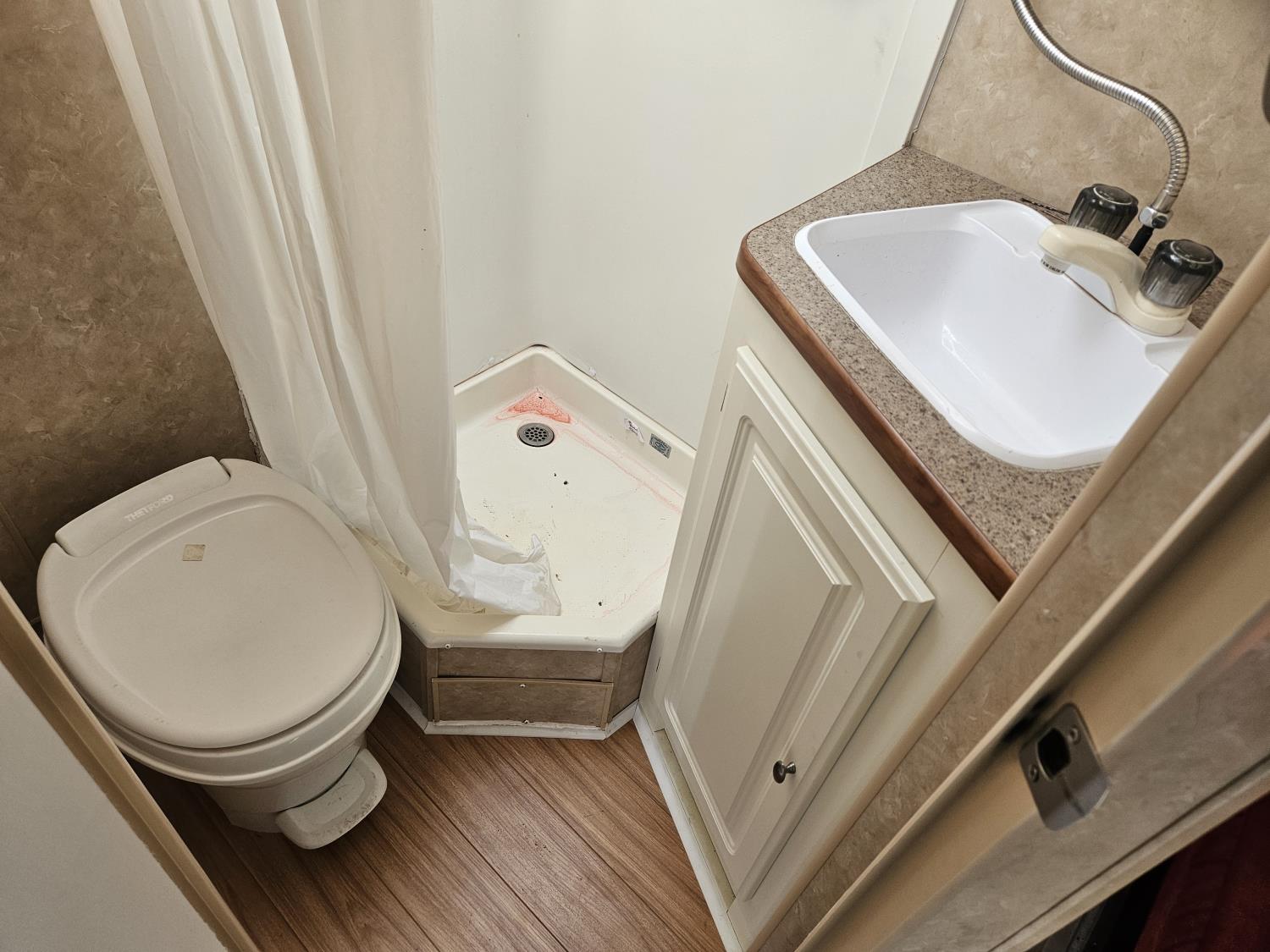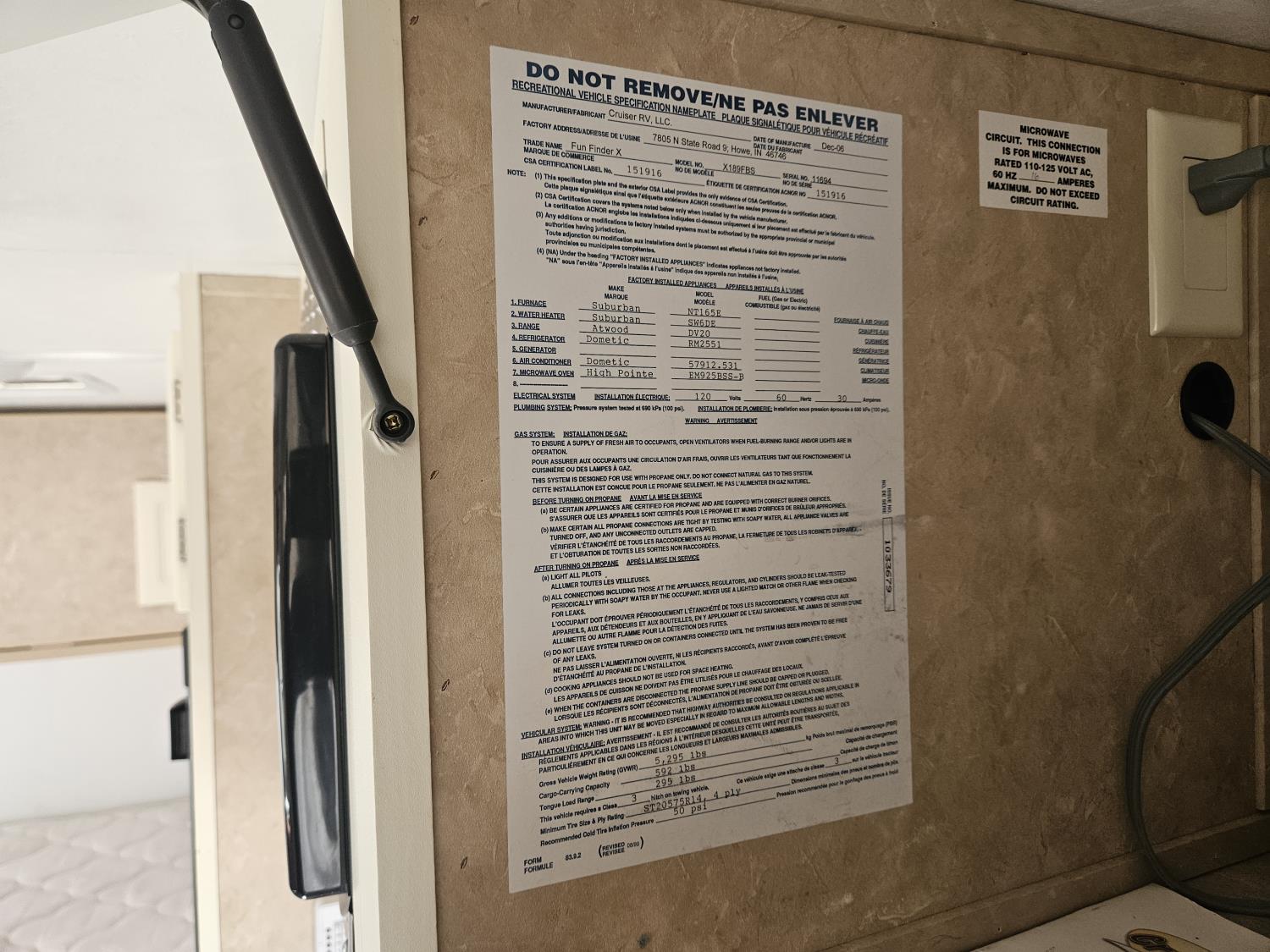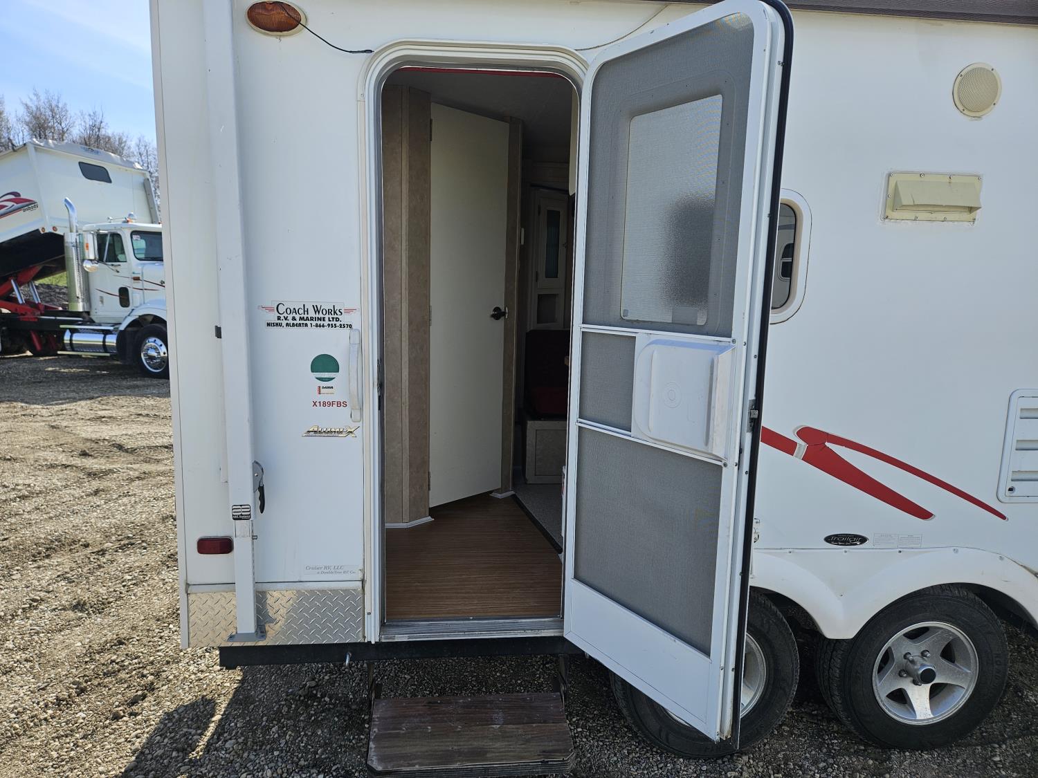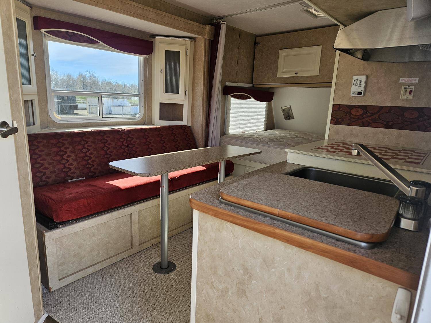 stove, fridge, microwave, full bath, A/C, 1 slide, manual awning, spring suspension, electric brakes, stereo, , 205/75R14 tires